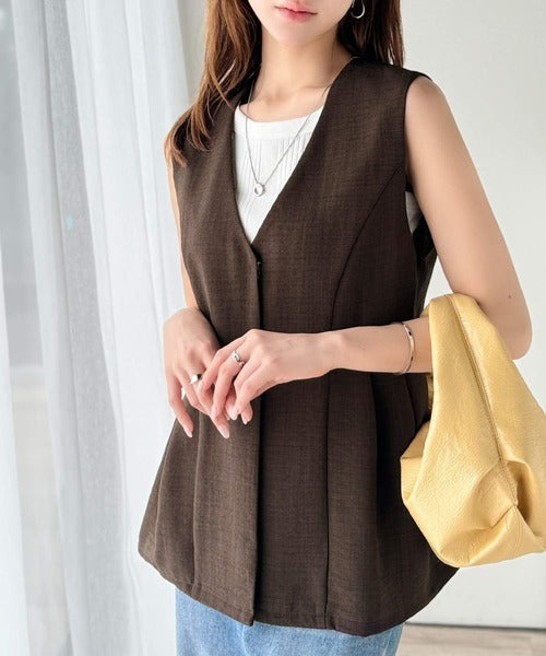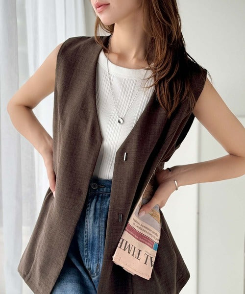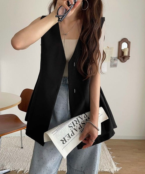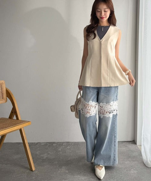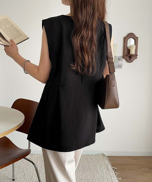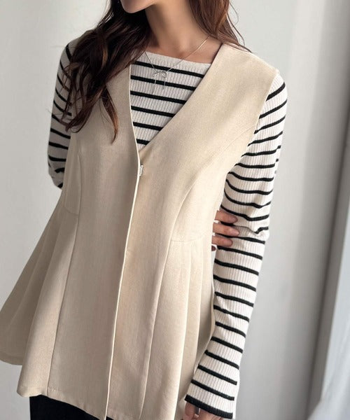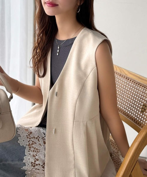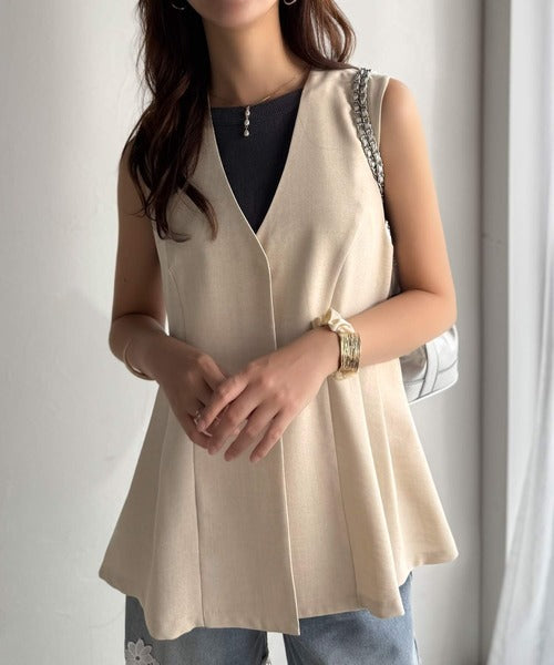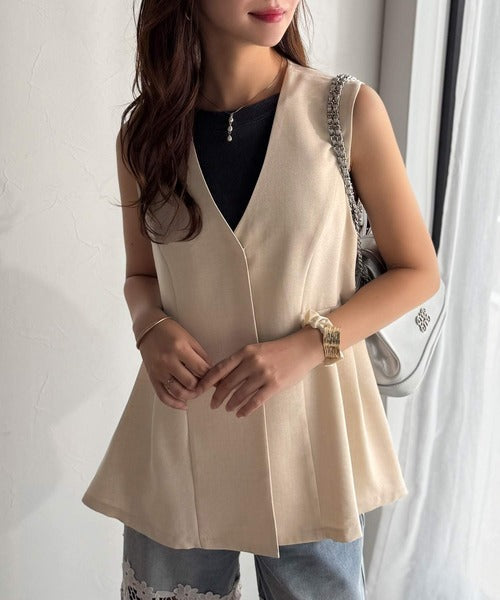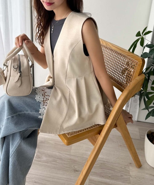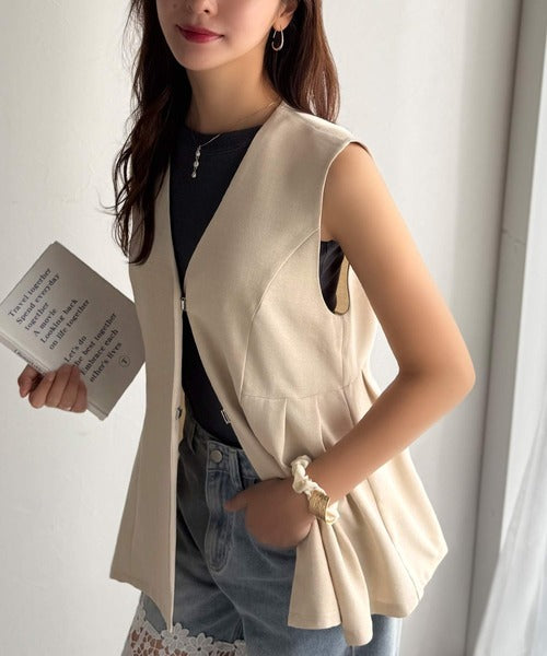 夏コーデを格上げ♪比翼デザイン麻調ペプラムジレベスト ce1110132