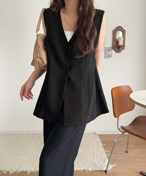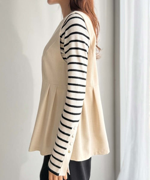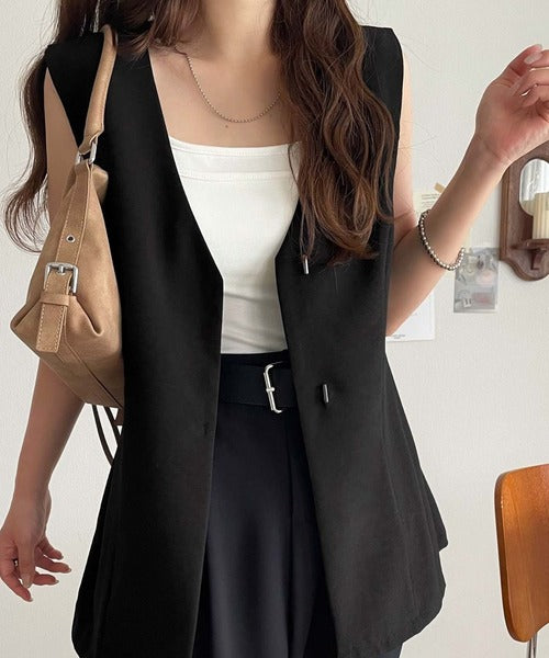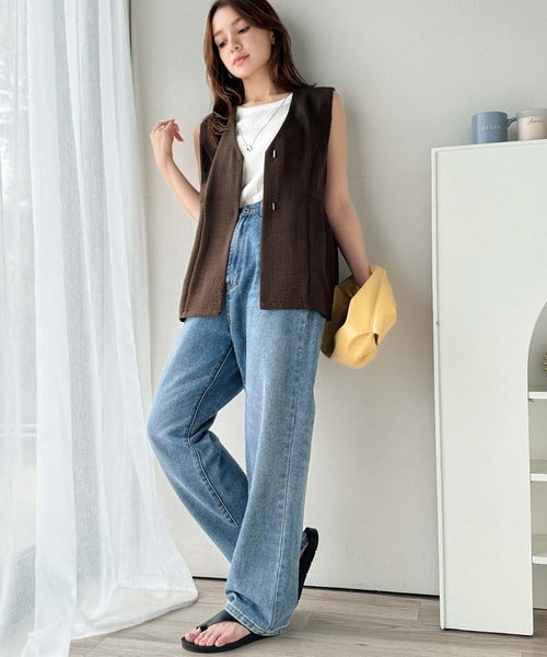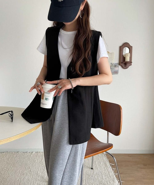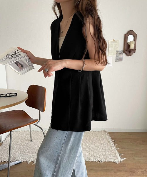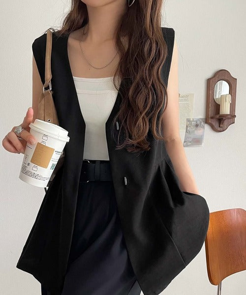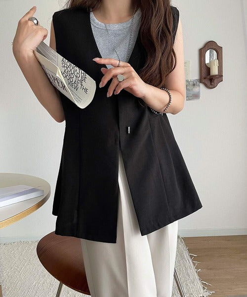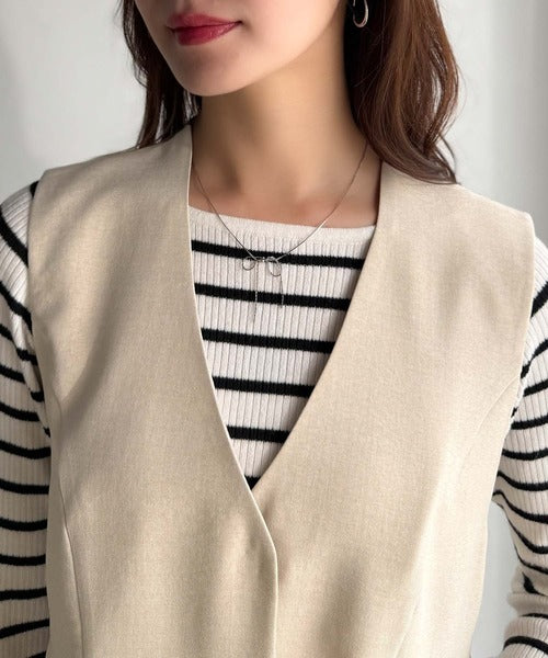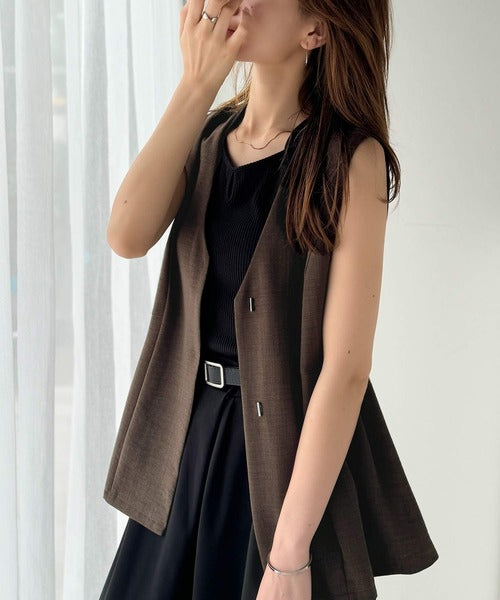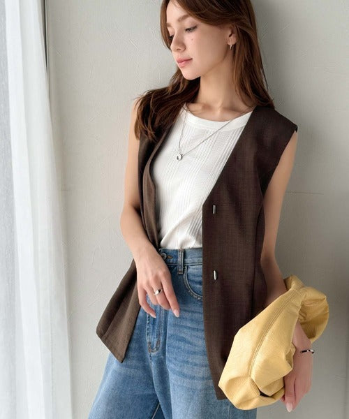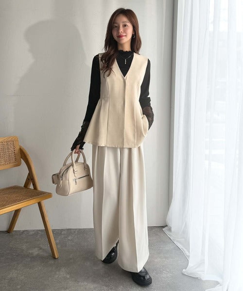 夏コーデを格上げ♪比翼デザイン麻調ペプラムジレベスト ce1110132