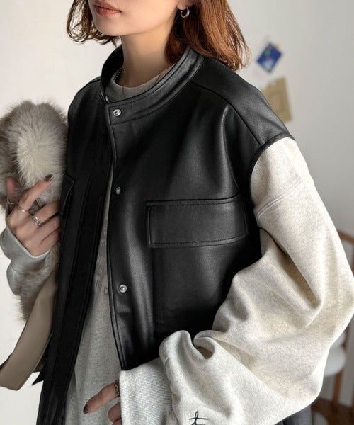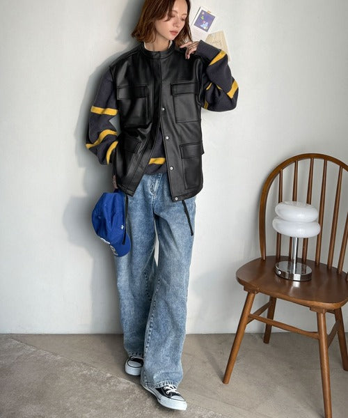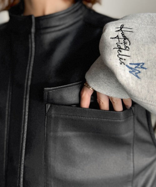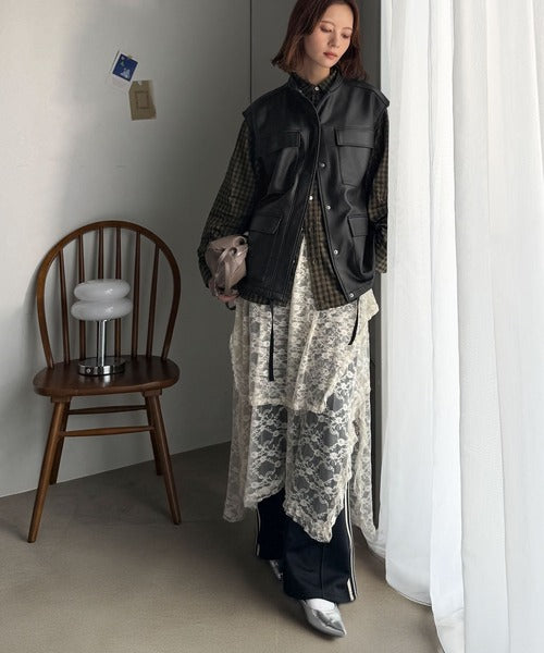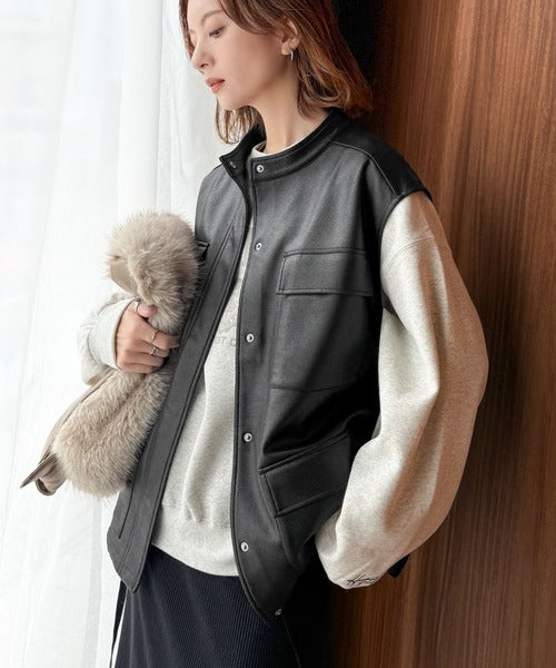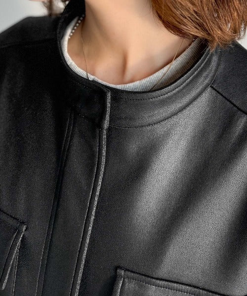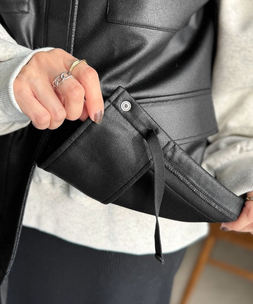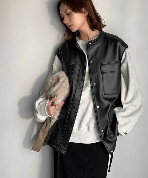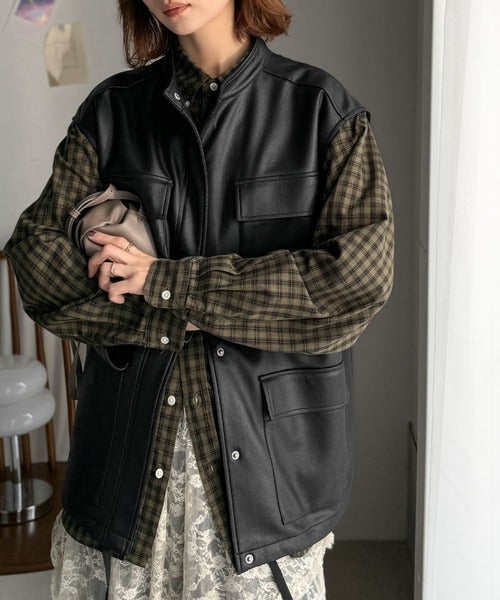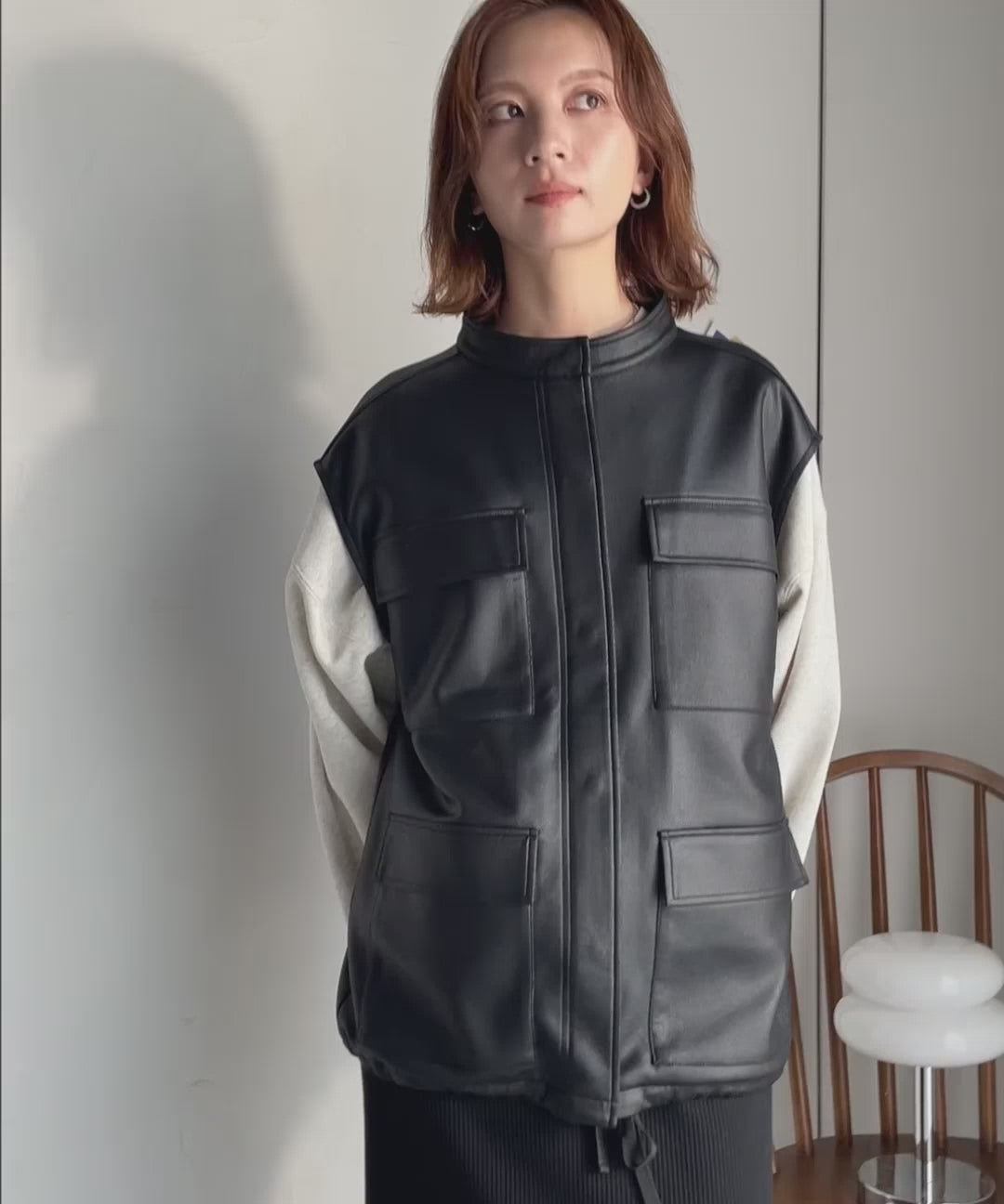 羽織るだけで今っぽさを演出できる、トレンド感たっぷりのフェイクレザーベスト。