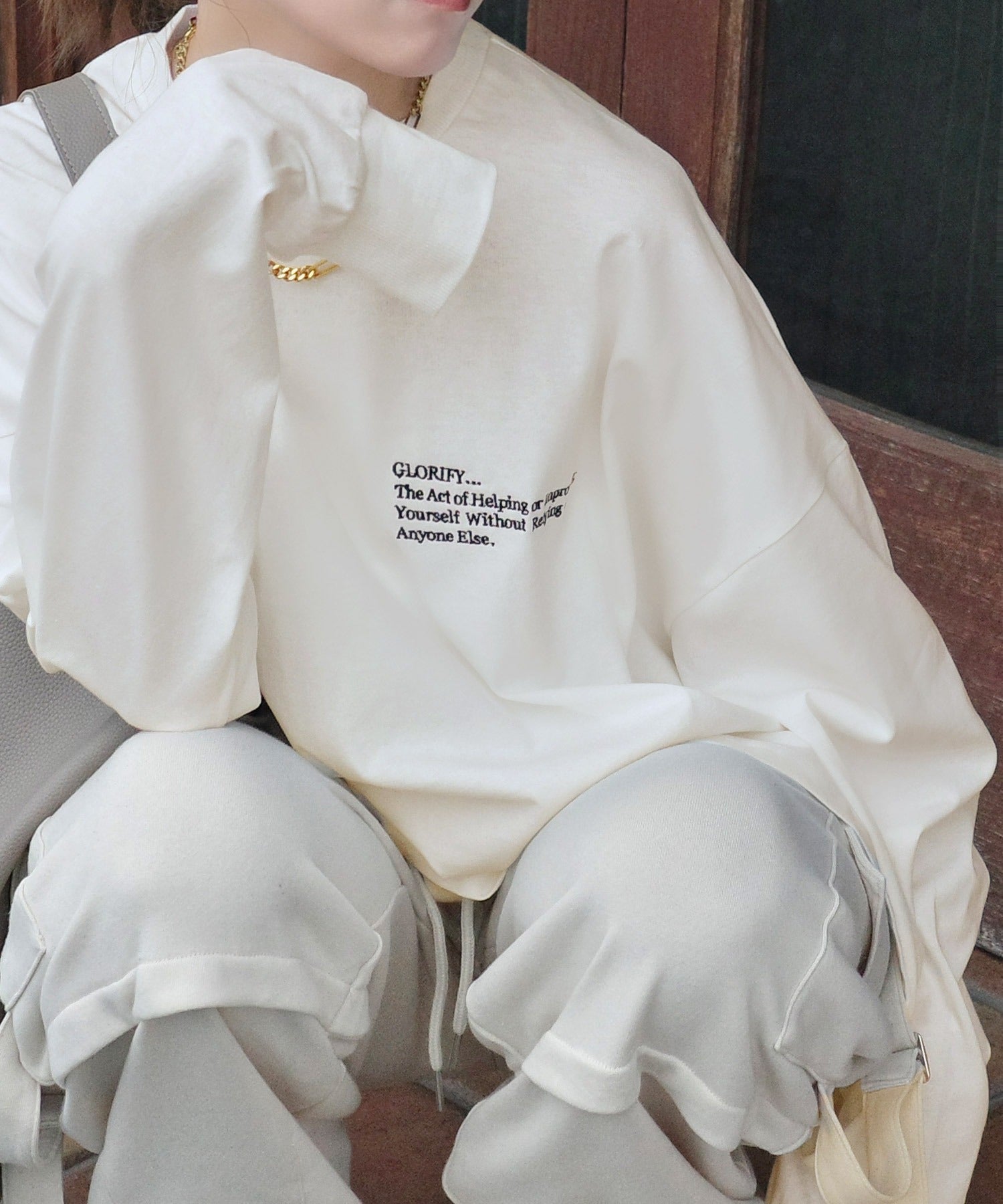 《marina×クラシカルエルフコラボ》ベーシックに今っぽバランスの“余裕”をプラス。綿100%胸刺繍入りロンT ce1010510