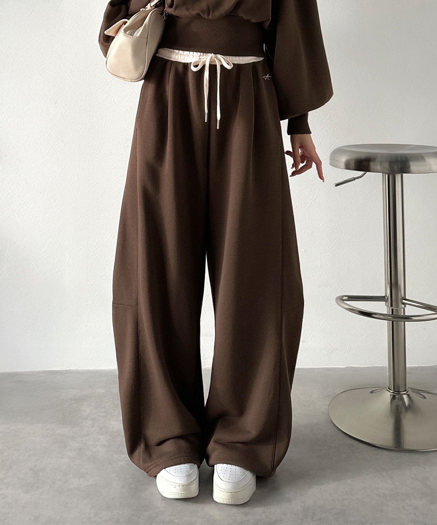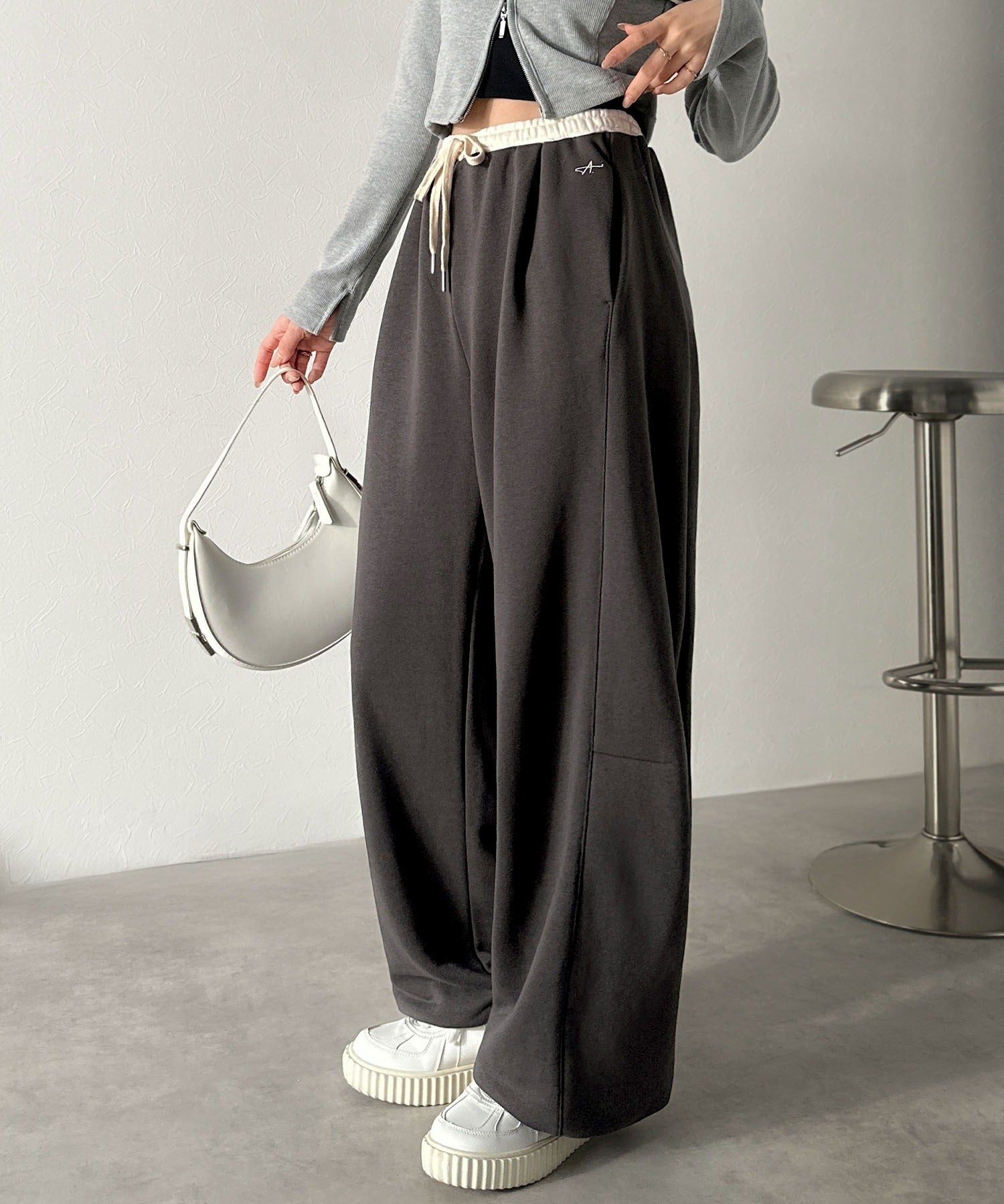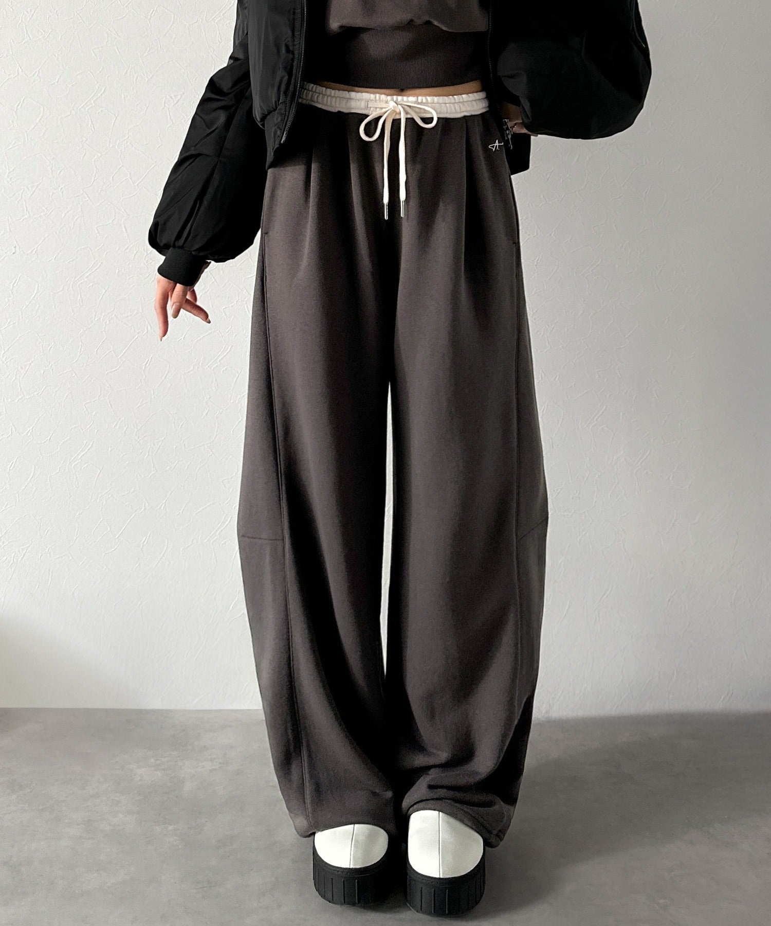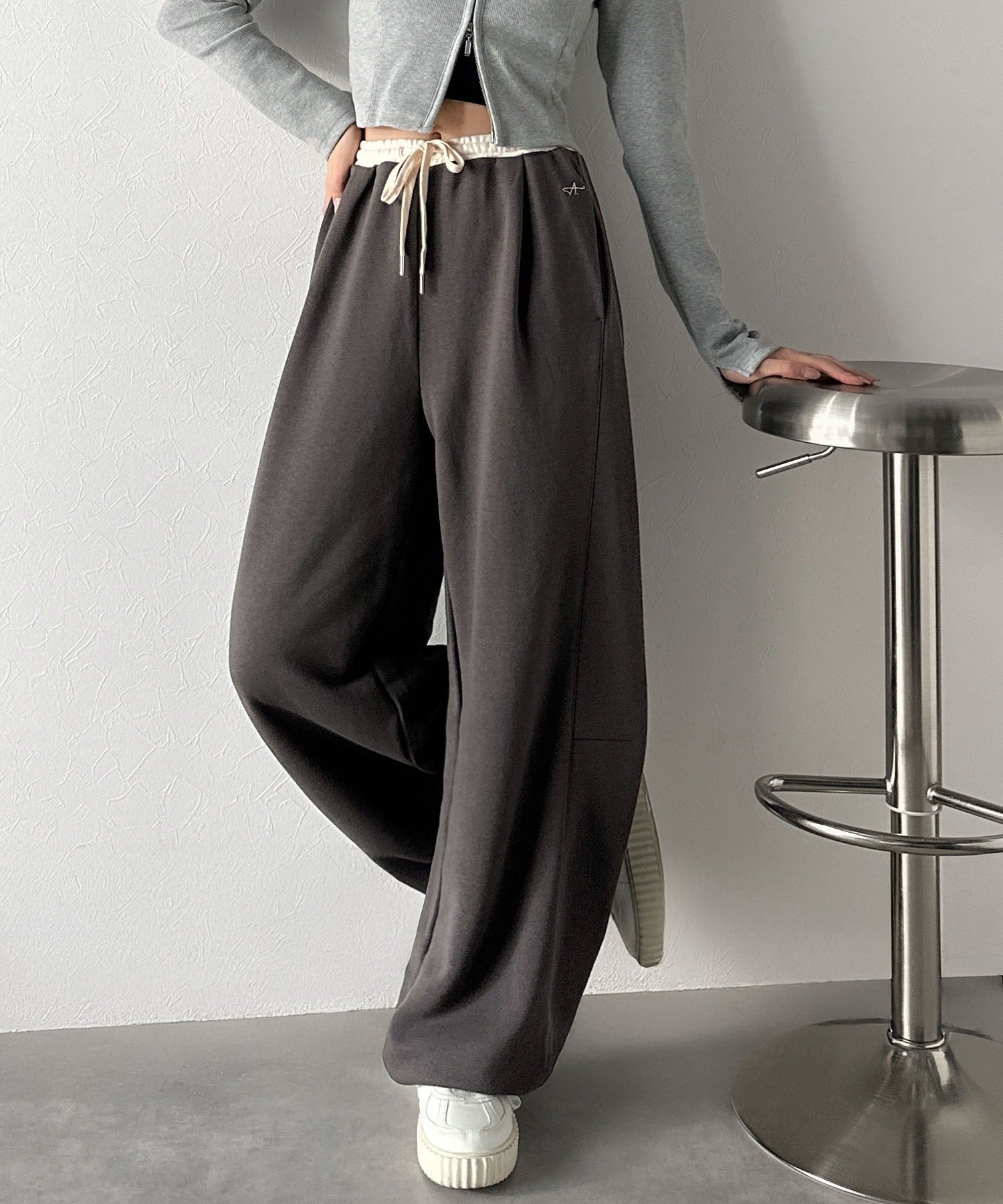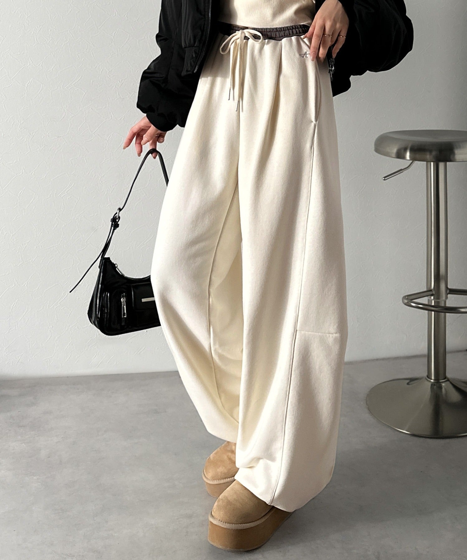 《AYA×クラシカルエルフコラボ》履くだけで“美脚バランス”完成!配色ウエストで差がつく、裏毛スウェットカーブパンツ(セットアップ可) ce1010545
