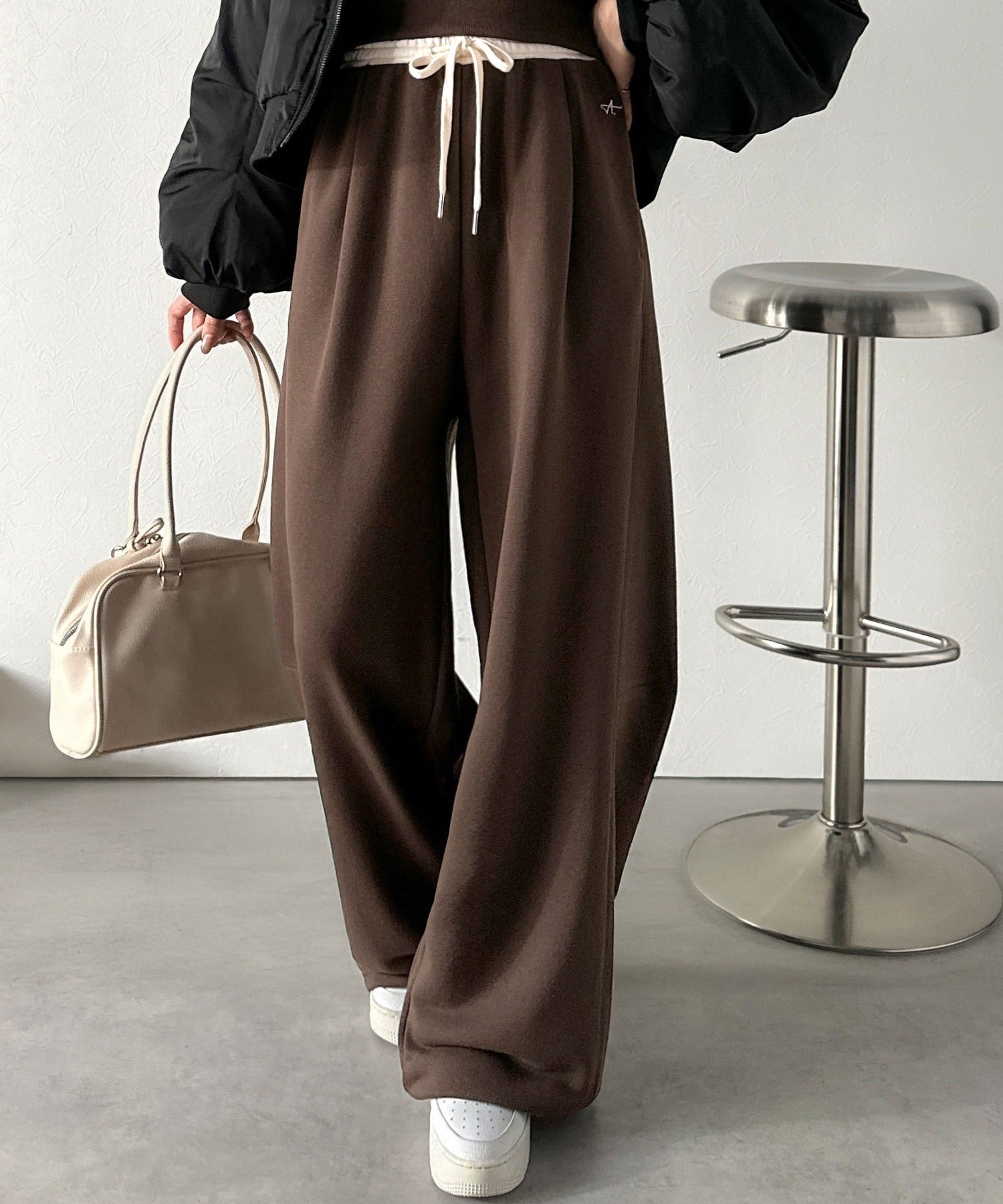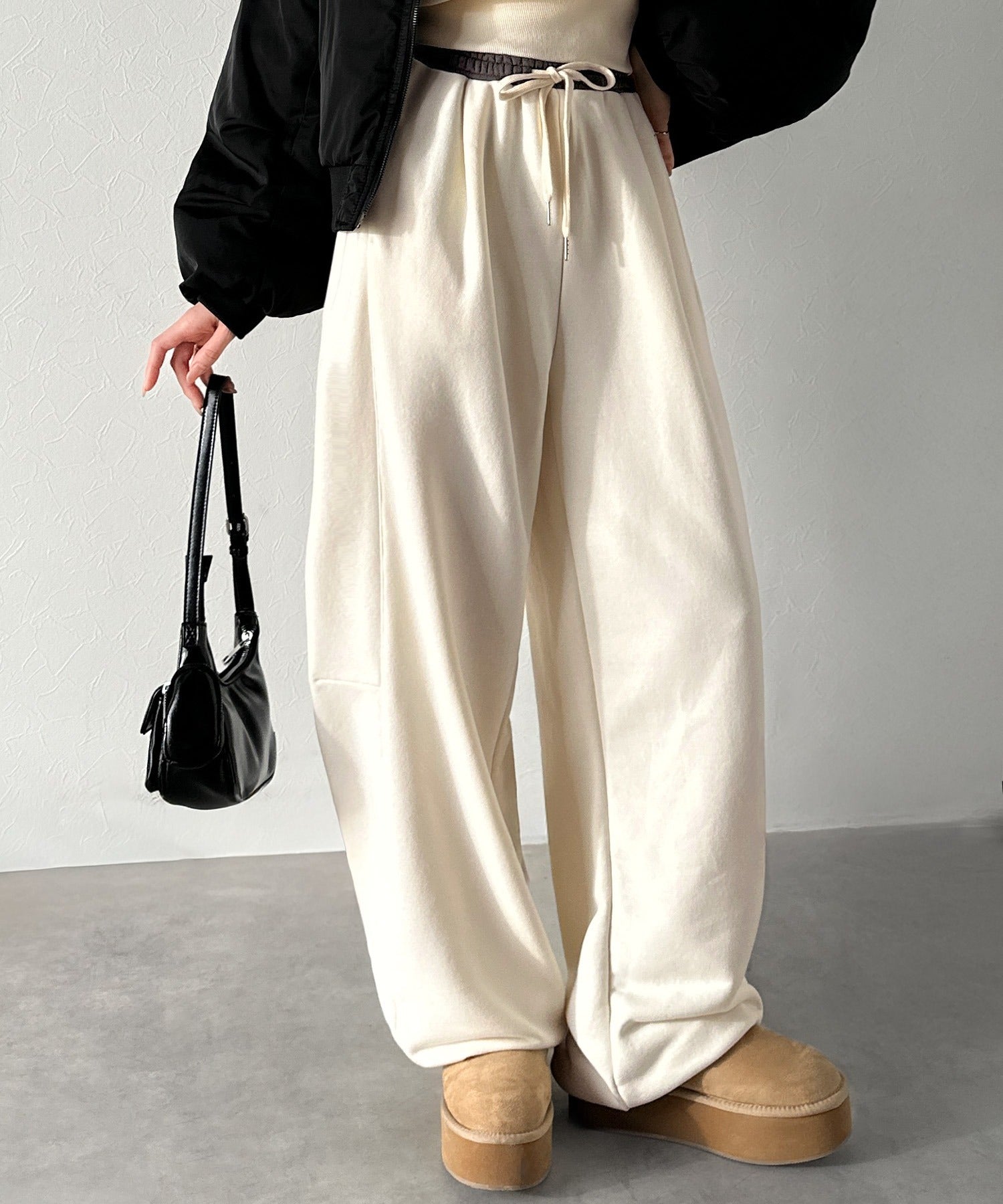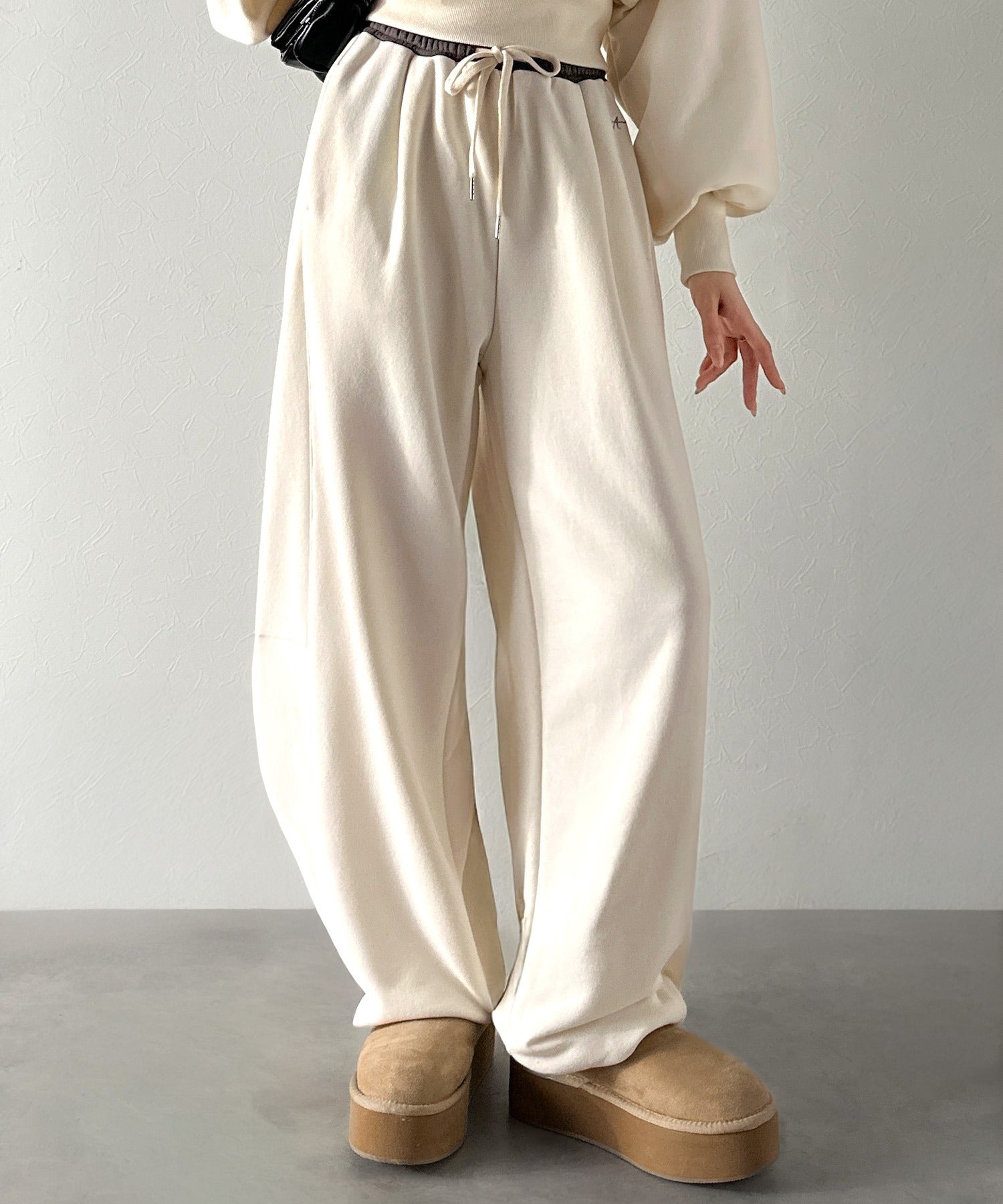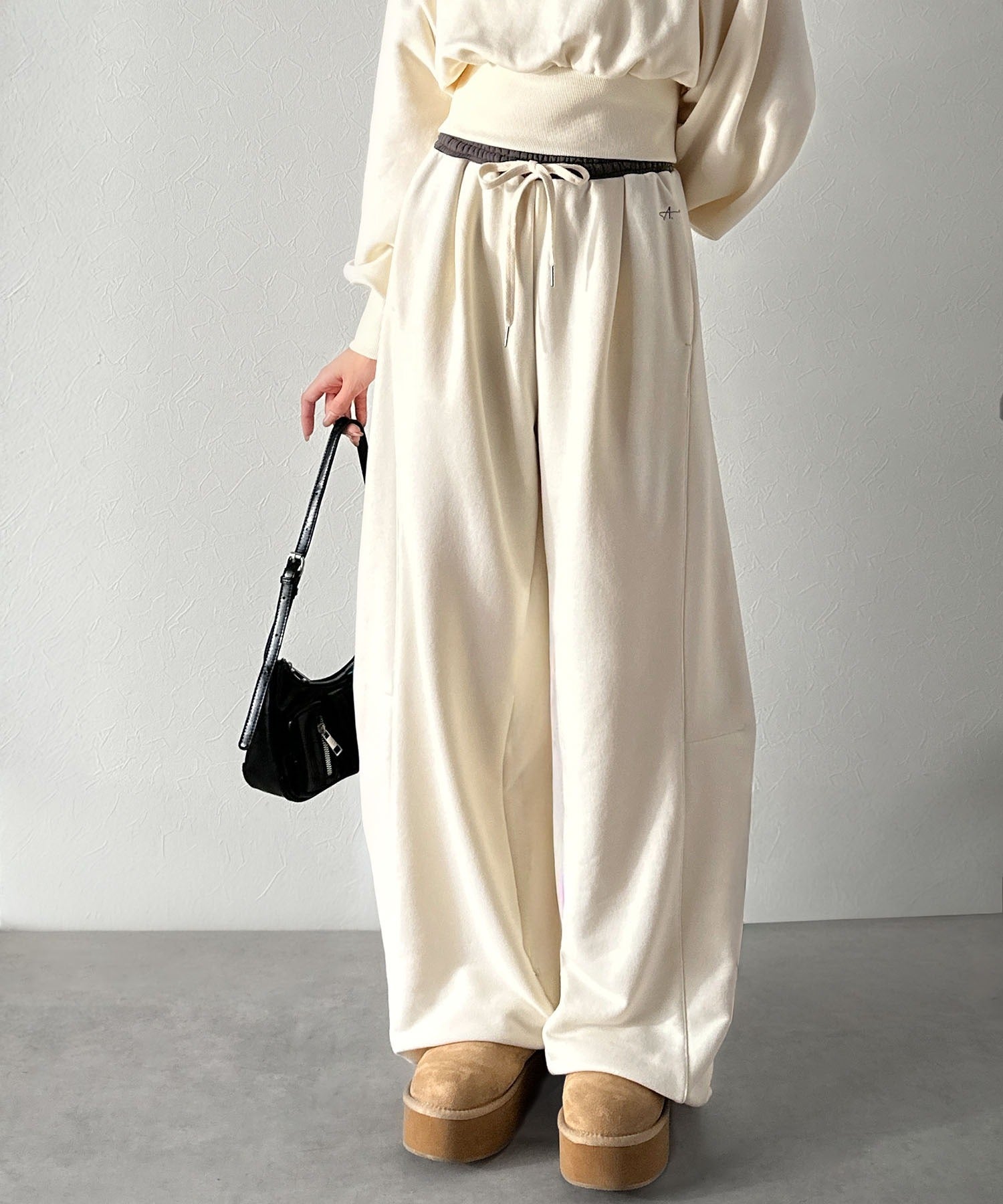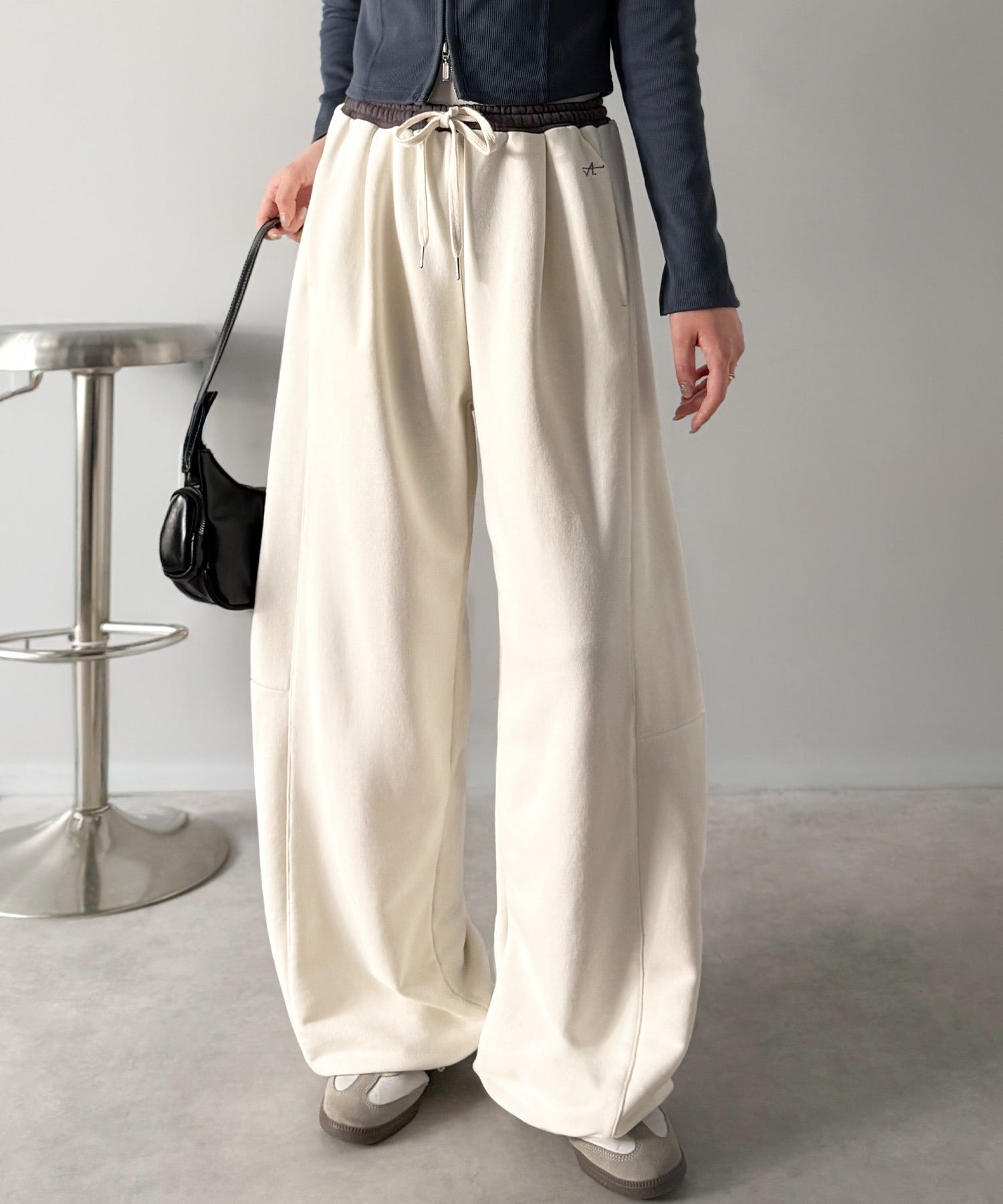 《AYA×クラシカルエルフコラボ》履くだけで“美脚バランス”完成!配色ウエストで差がつく、裏毛スウェットカーブパンツ(セットアップ可) ce1010545