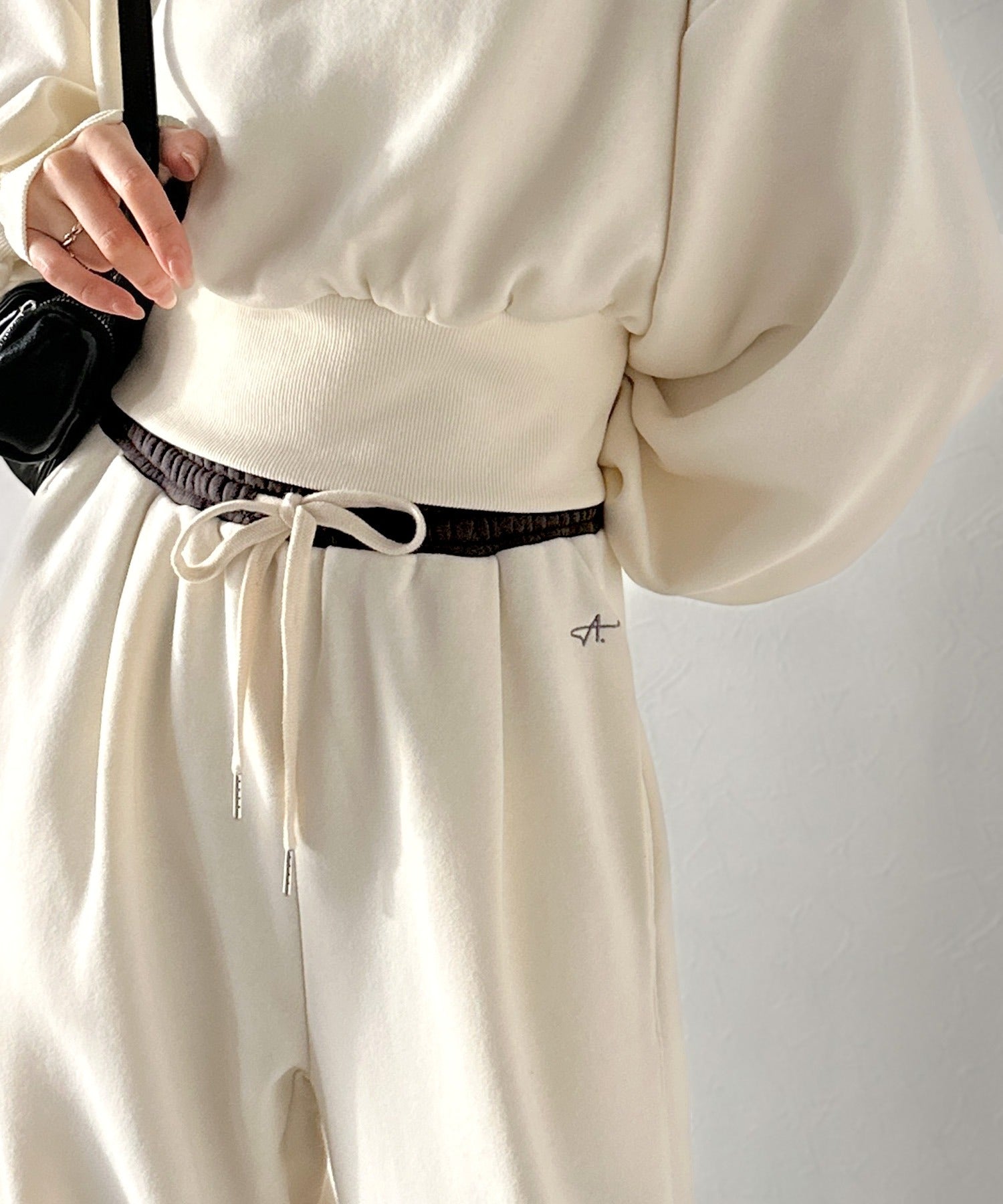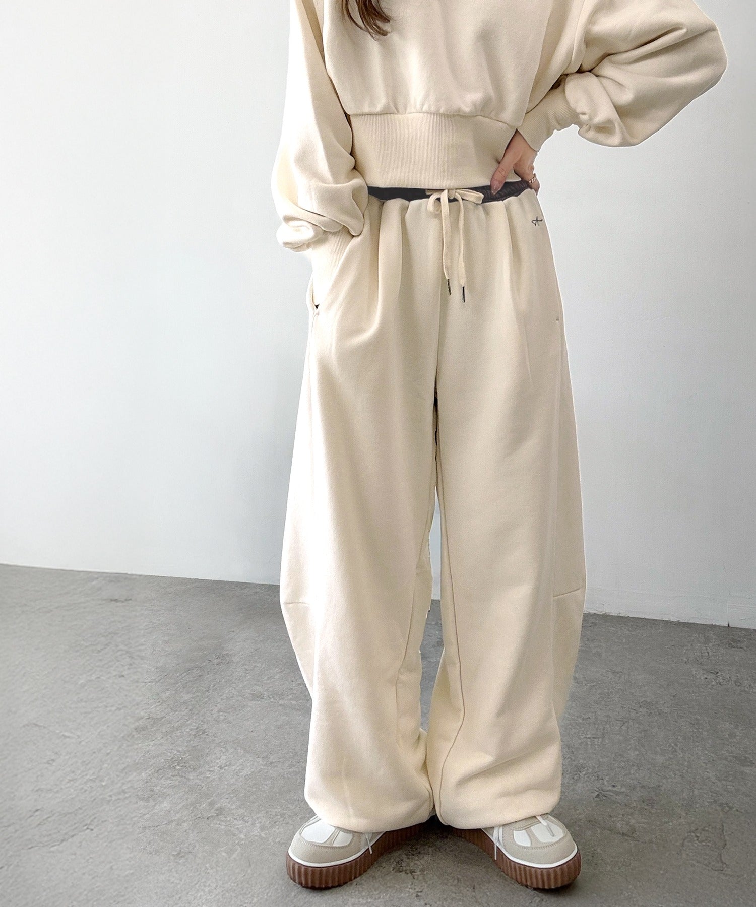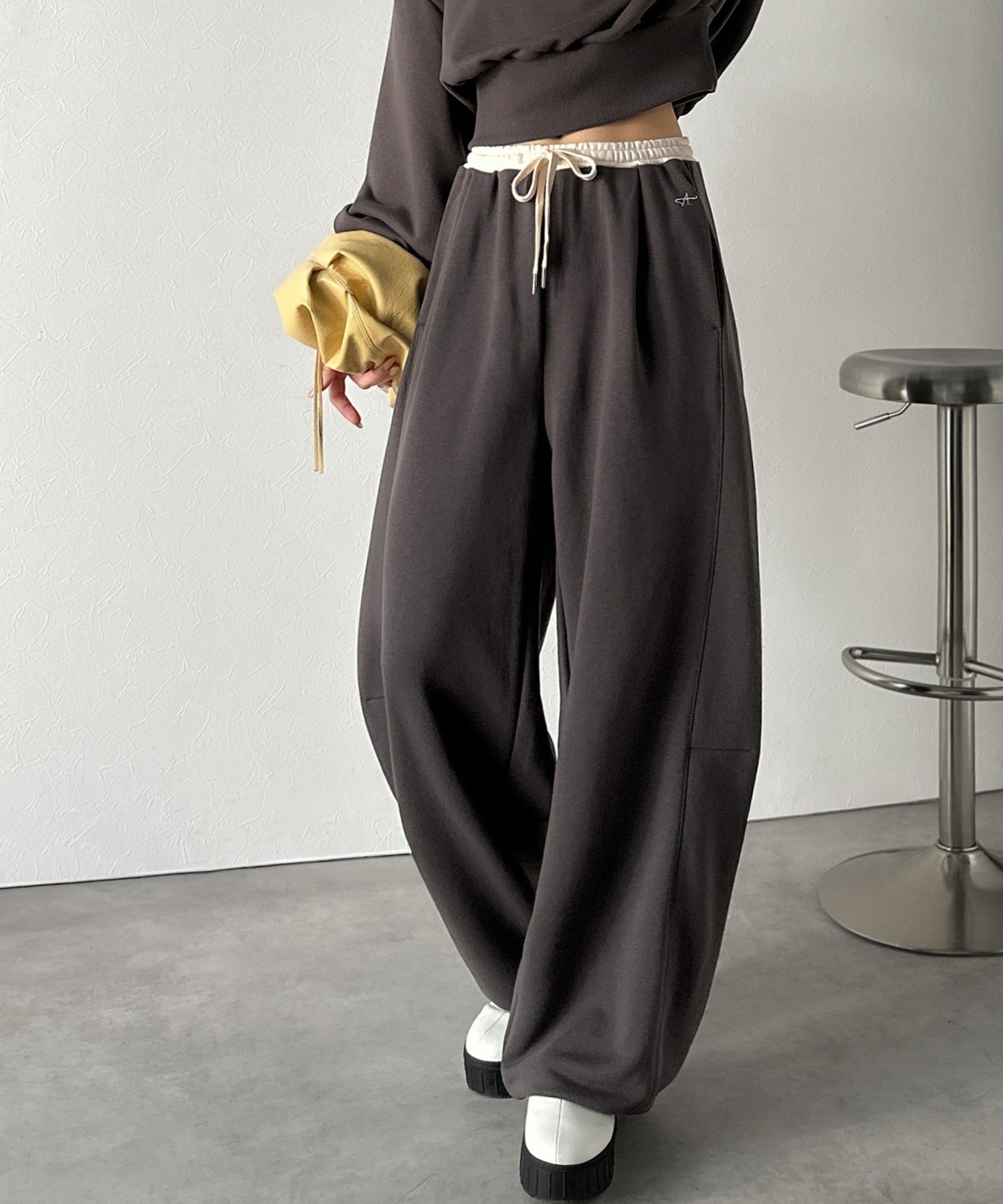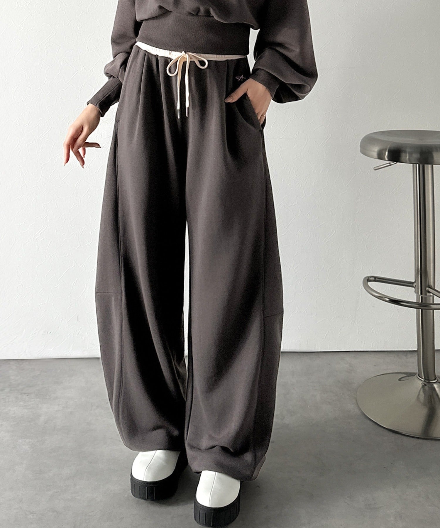 《AYA×クラシカルエルフコラボ》履くだけで“美脚バランス”完成!配色ウエストで差がつく、裏毛スウェットカーブパンツ(セットアップ可) ce1010545