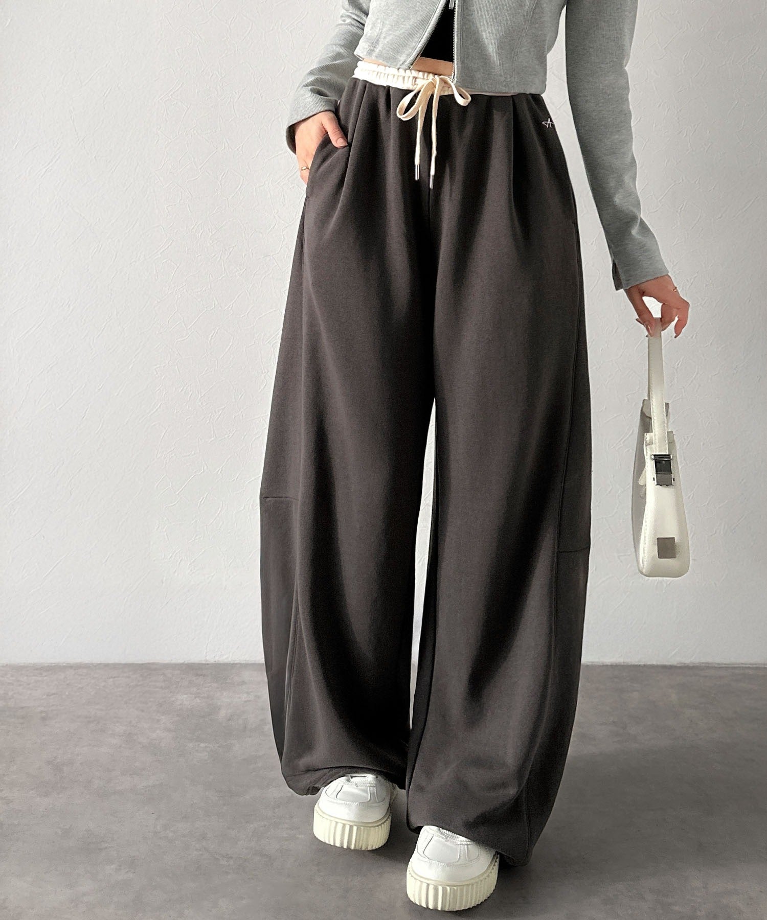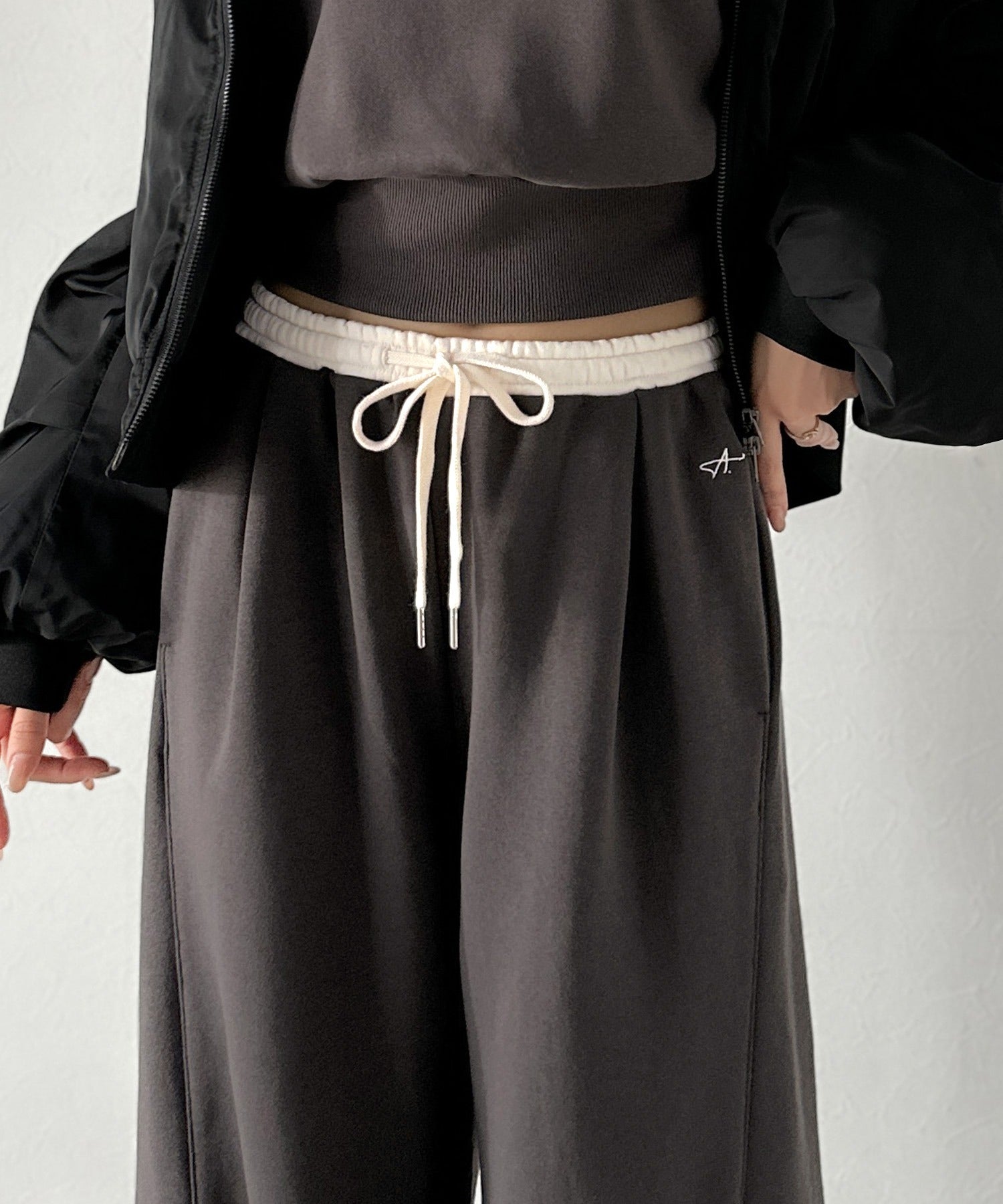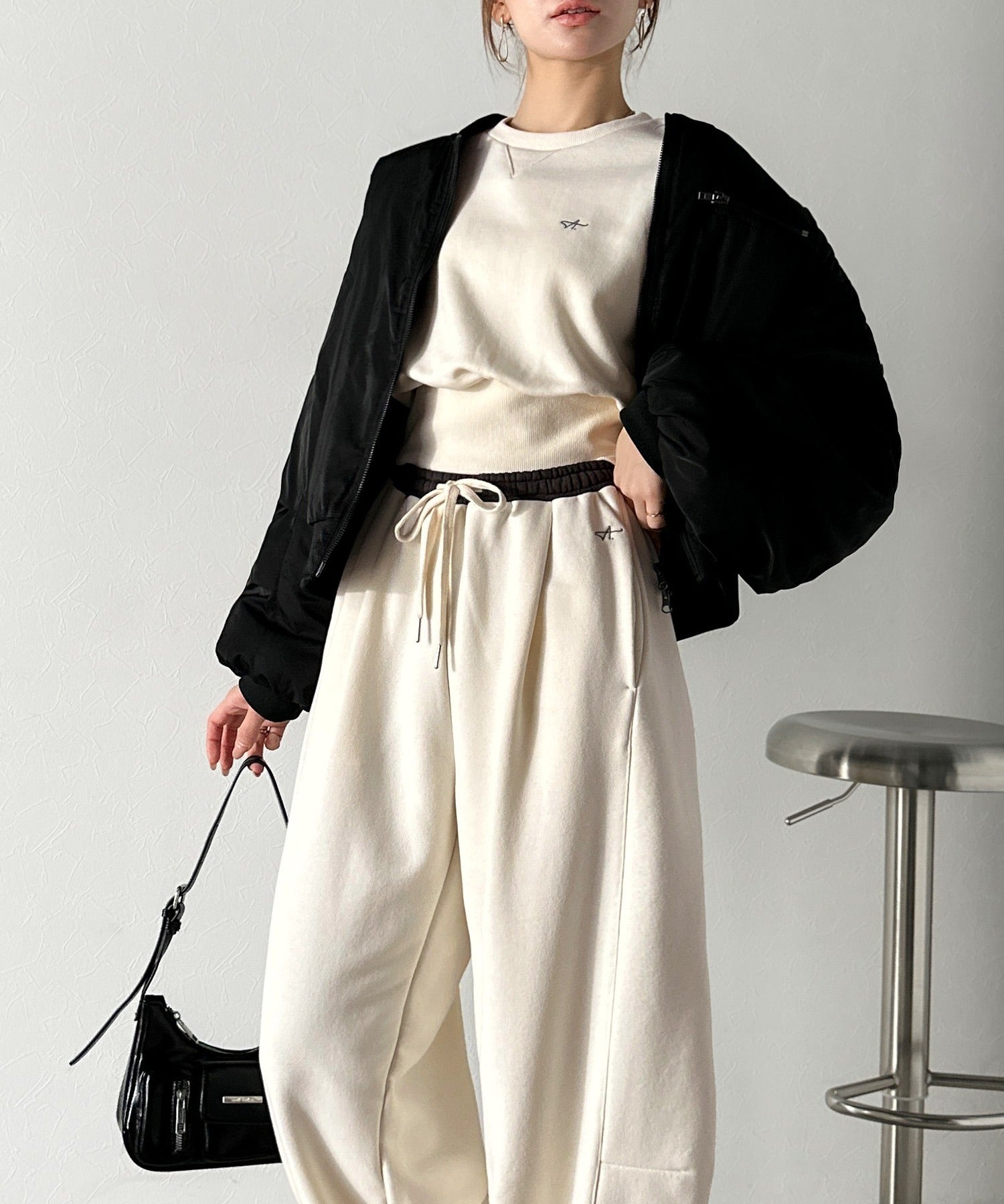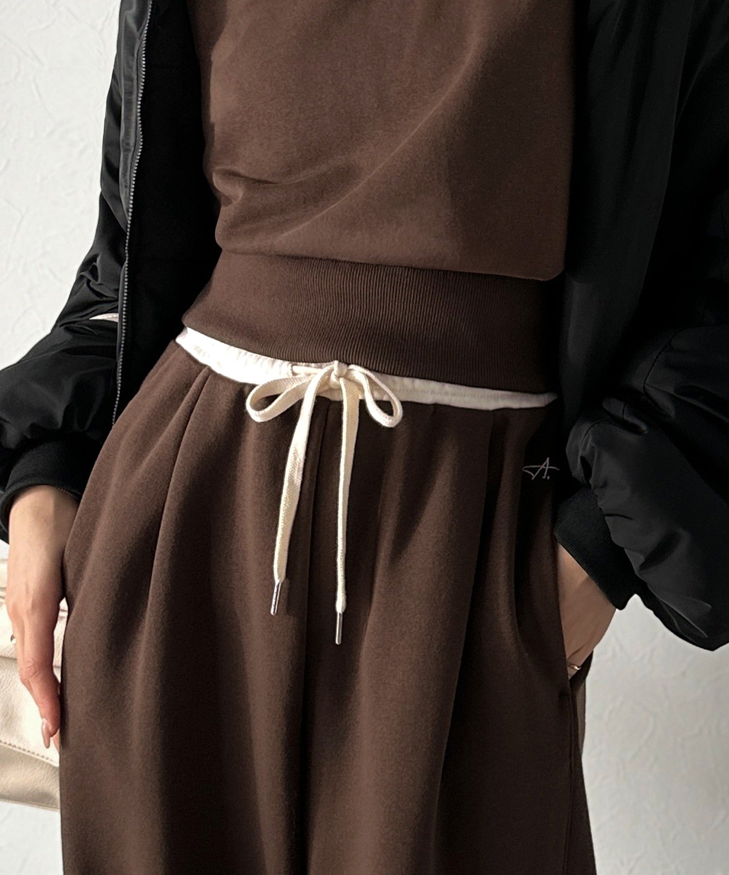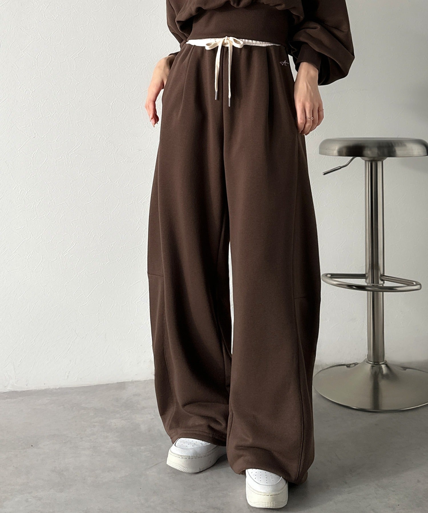 《AYA×クラシカルエルフコラボ》履くだけで“美脚バランス”完成!配色ウエストで差がつく、裏毛スウェットカーブパンツ(セットアップ可) ce1010545