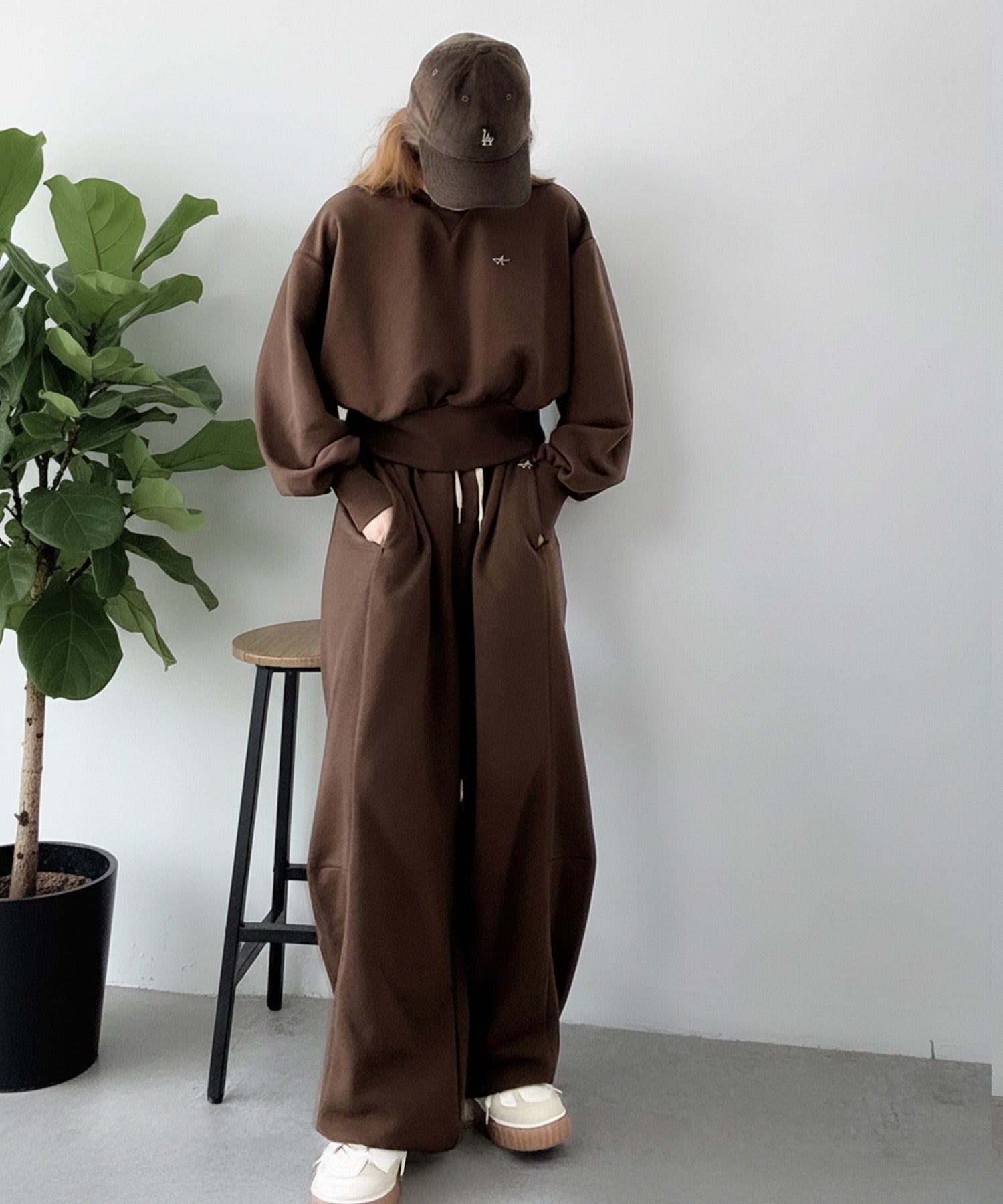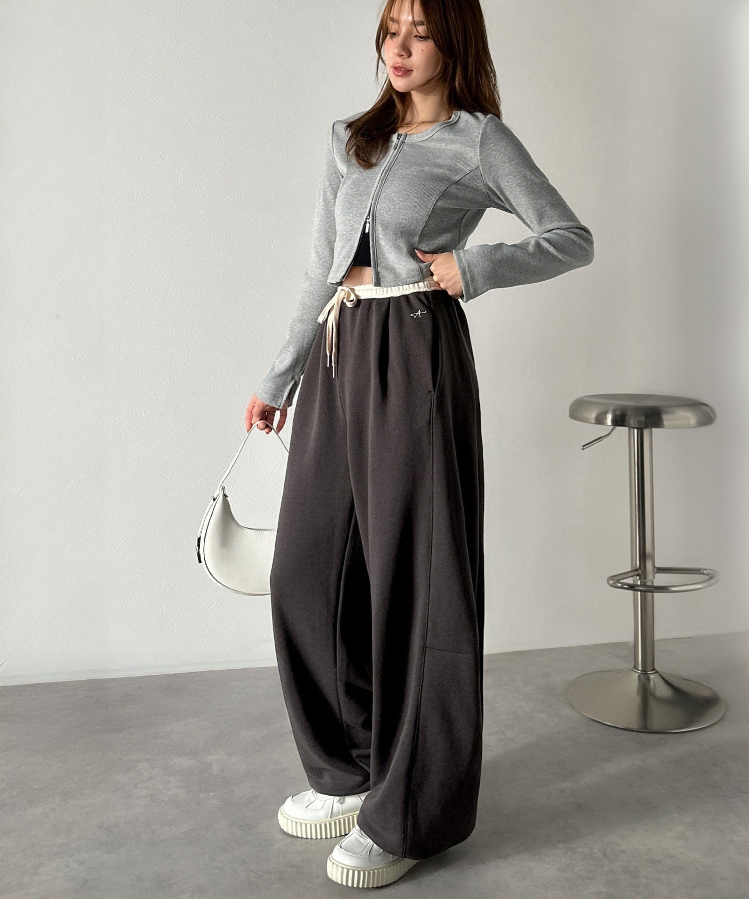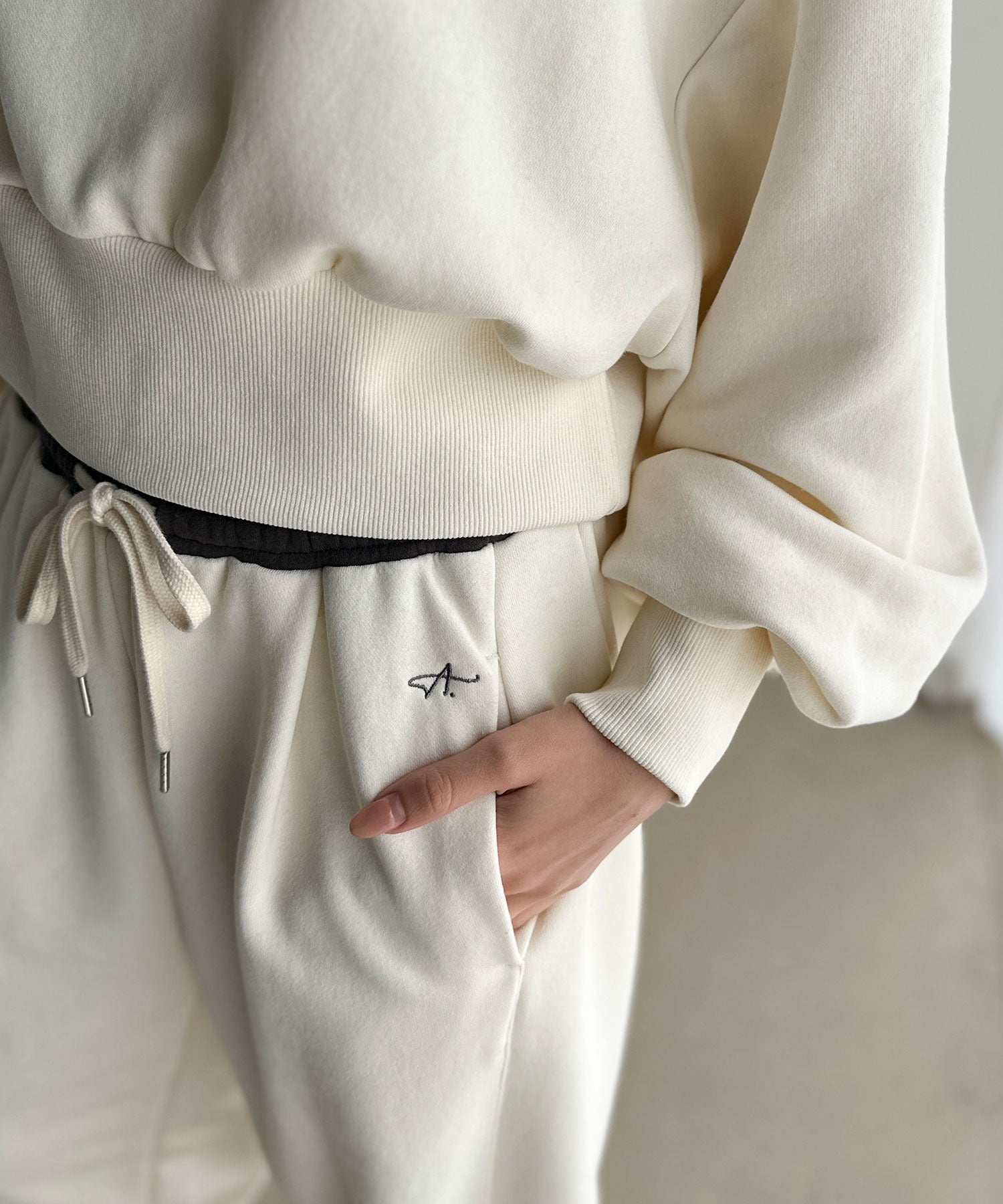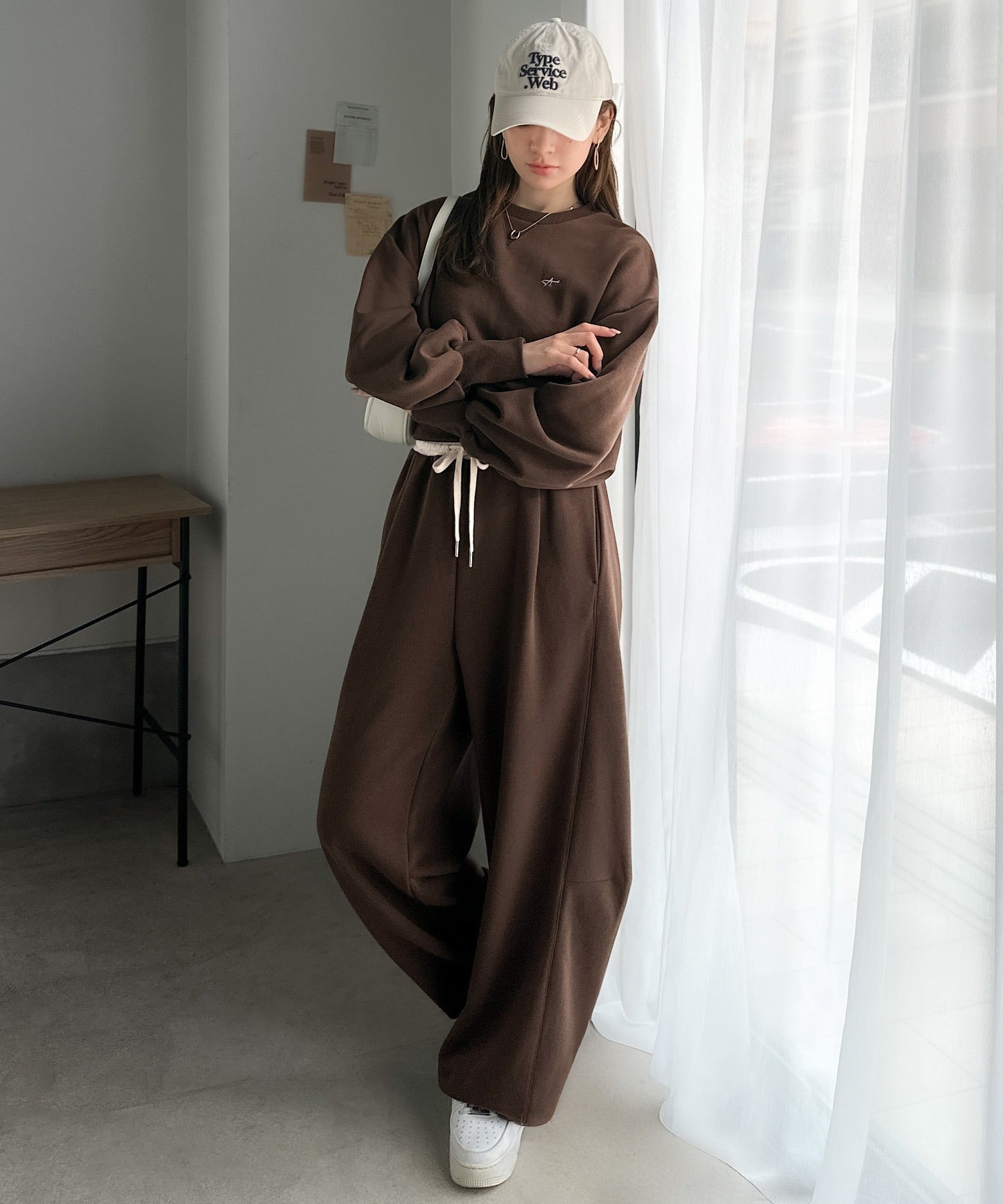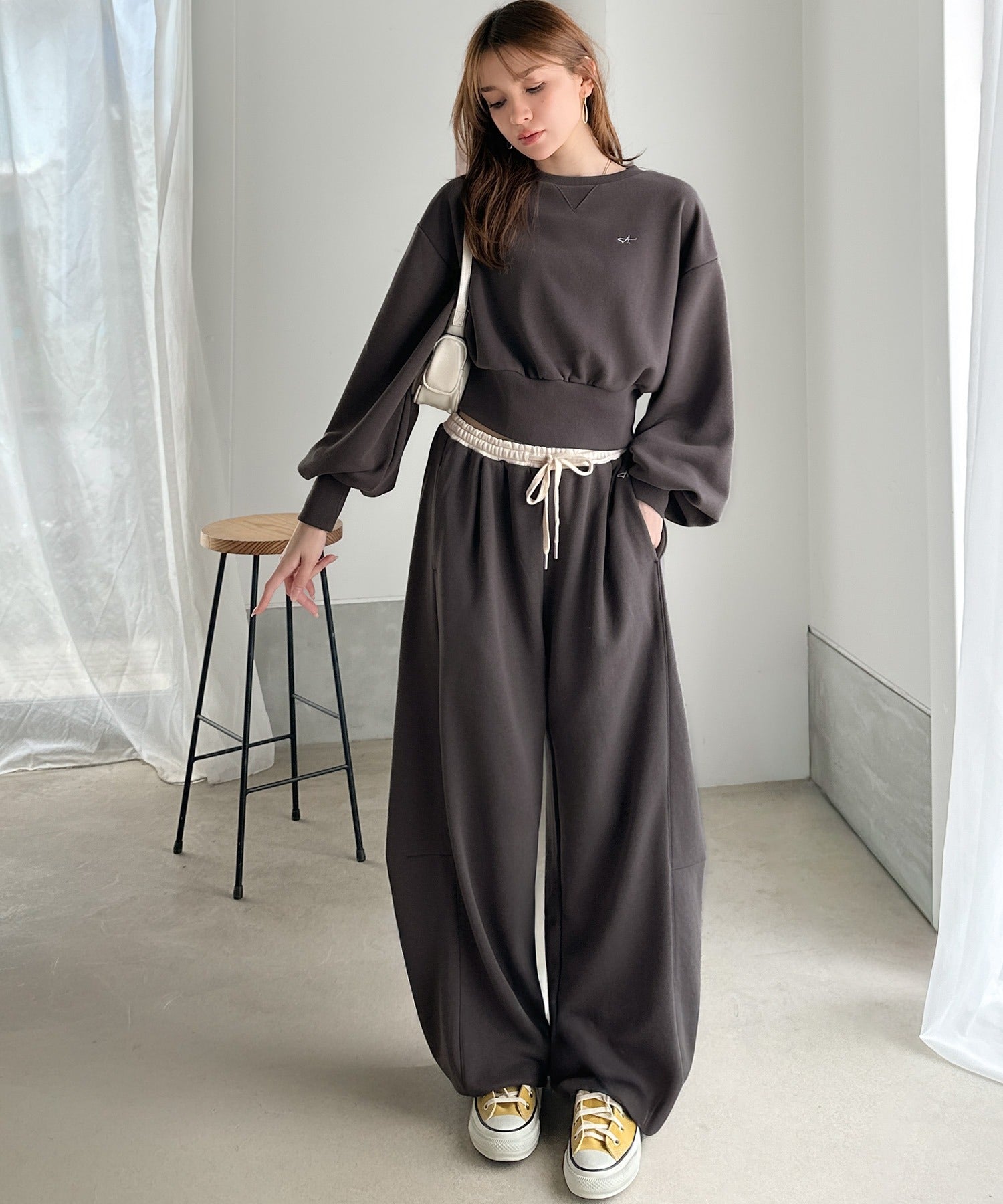 《AYA×クラシカルエルフコラボ》履くだけで“美脚バランス”完成!配色ウエストで差がつく、裏毛スウェットカーブパンツ(セットアップ可) ce1010545