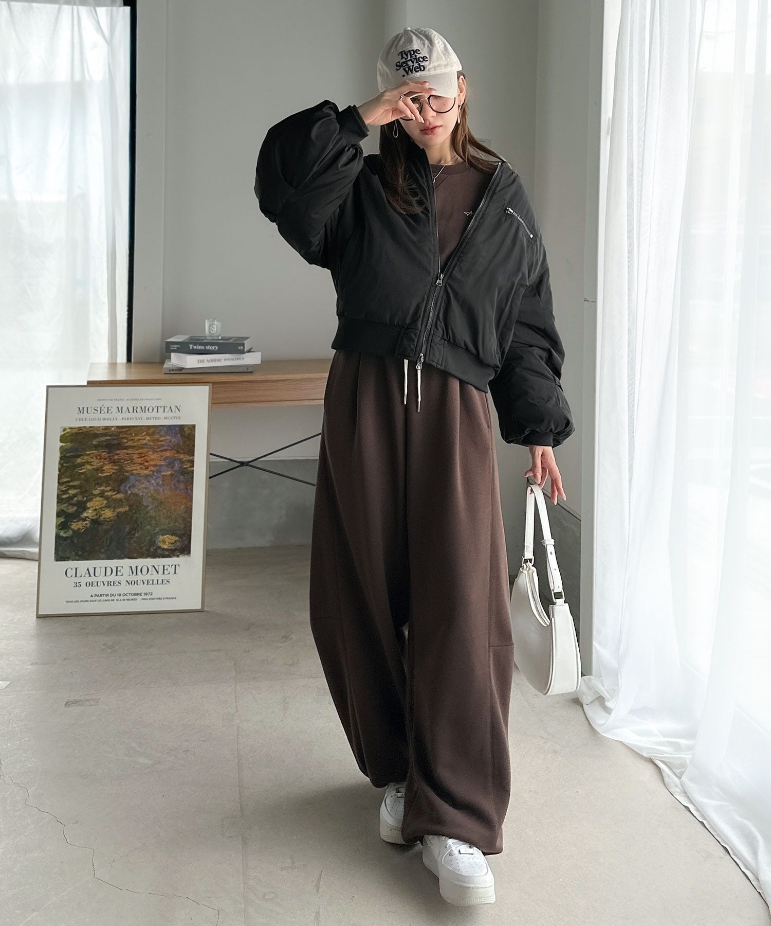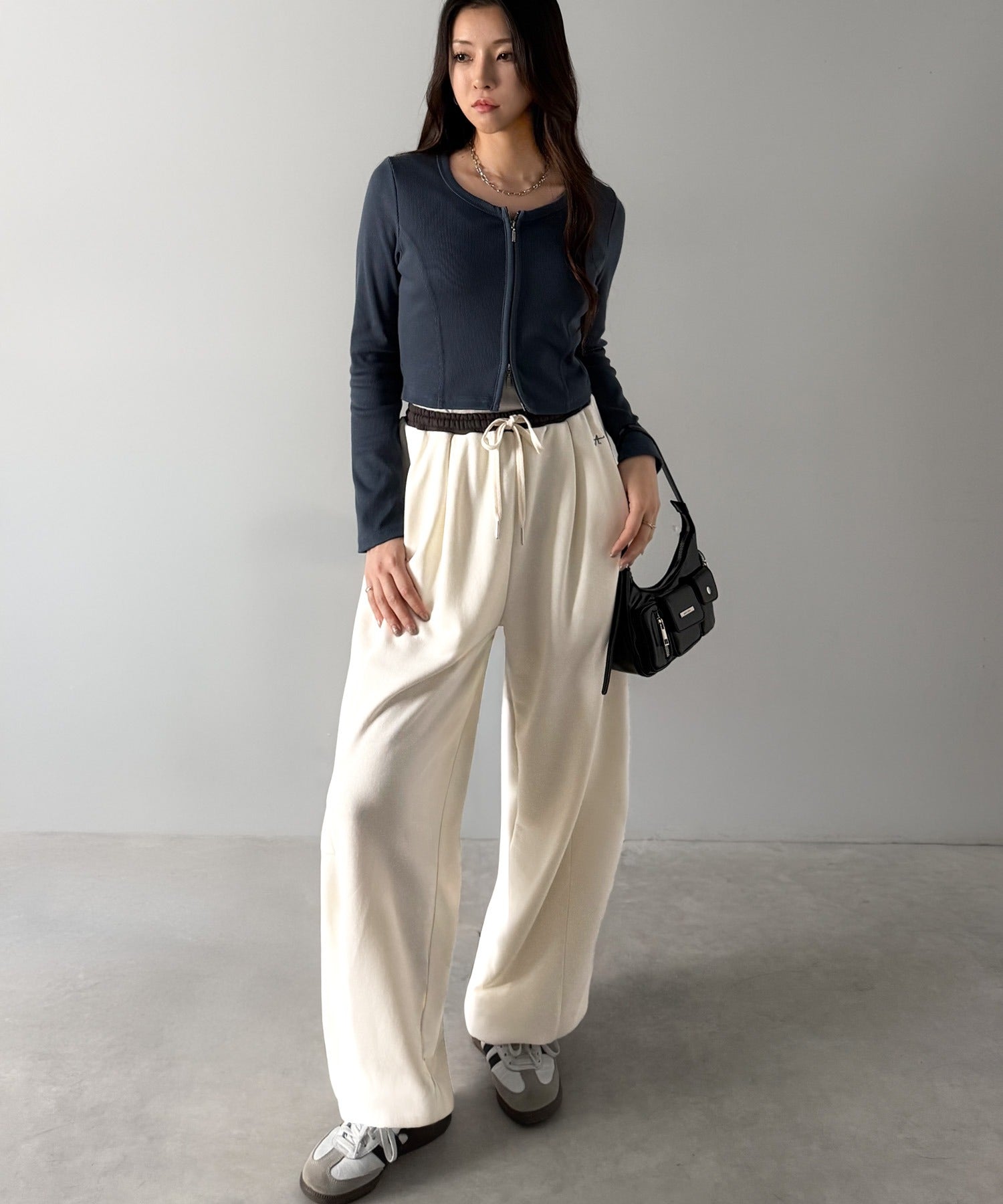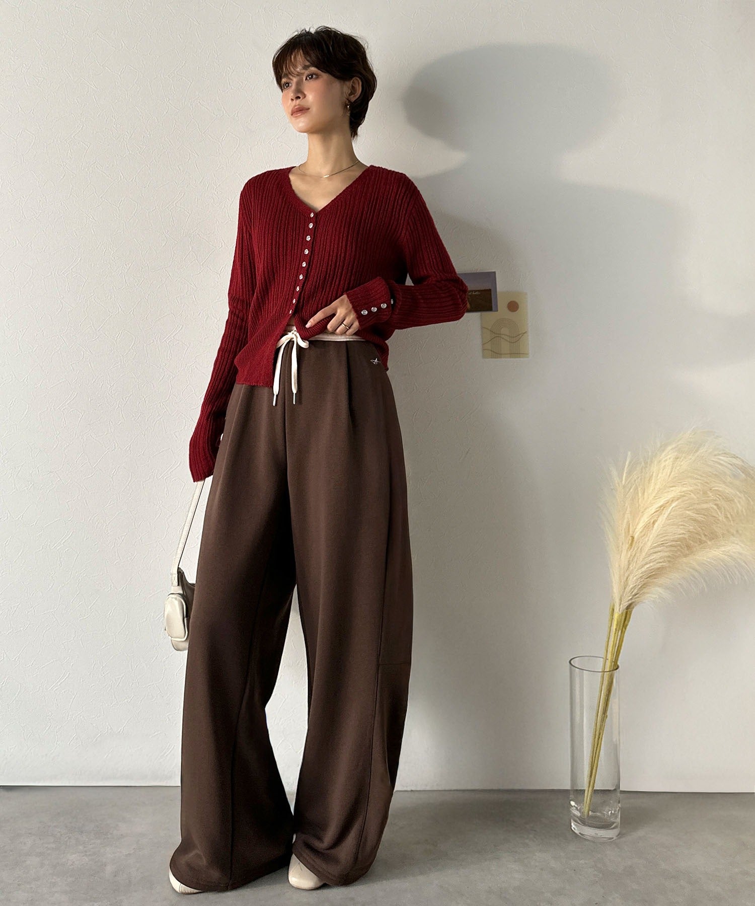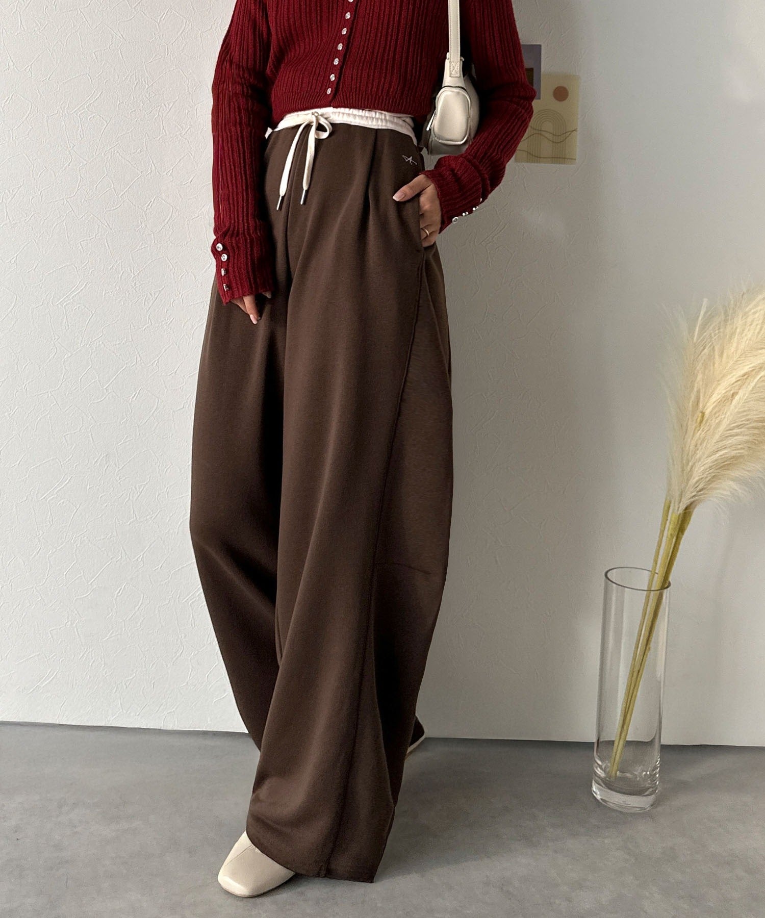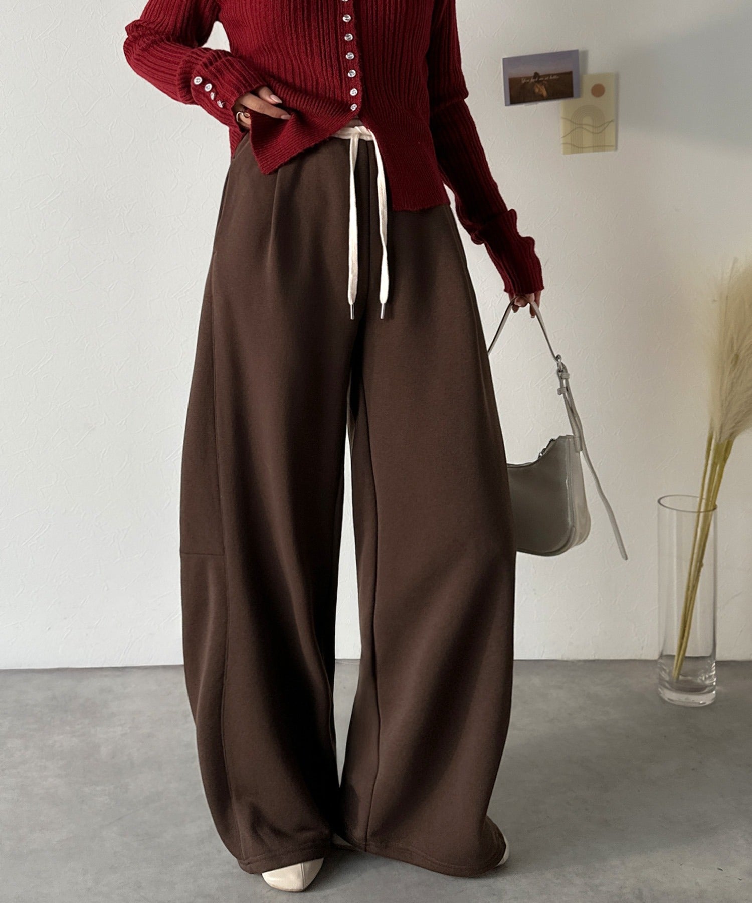 《AYA×クラシカルエルフコラボ》履くだけで“美脚バランス”完成!配色ウエストで差がつく、裏毛スウェットカーブパンツ(セットアップ可) ce1010545