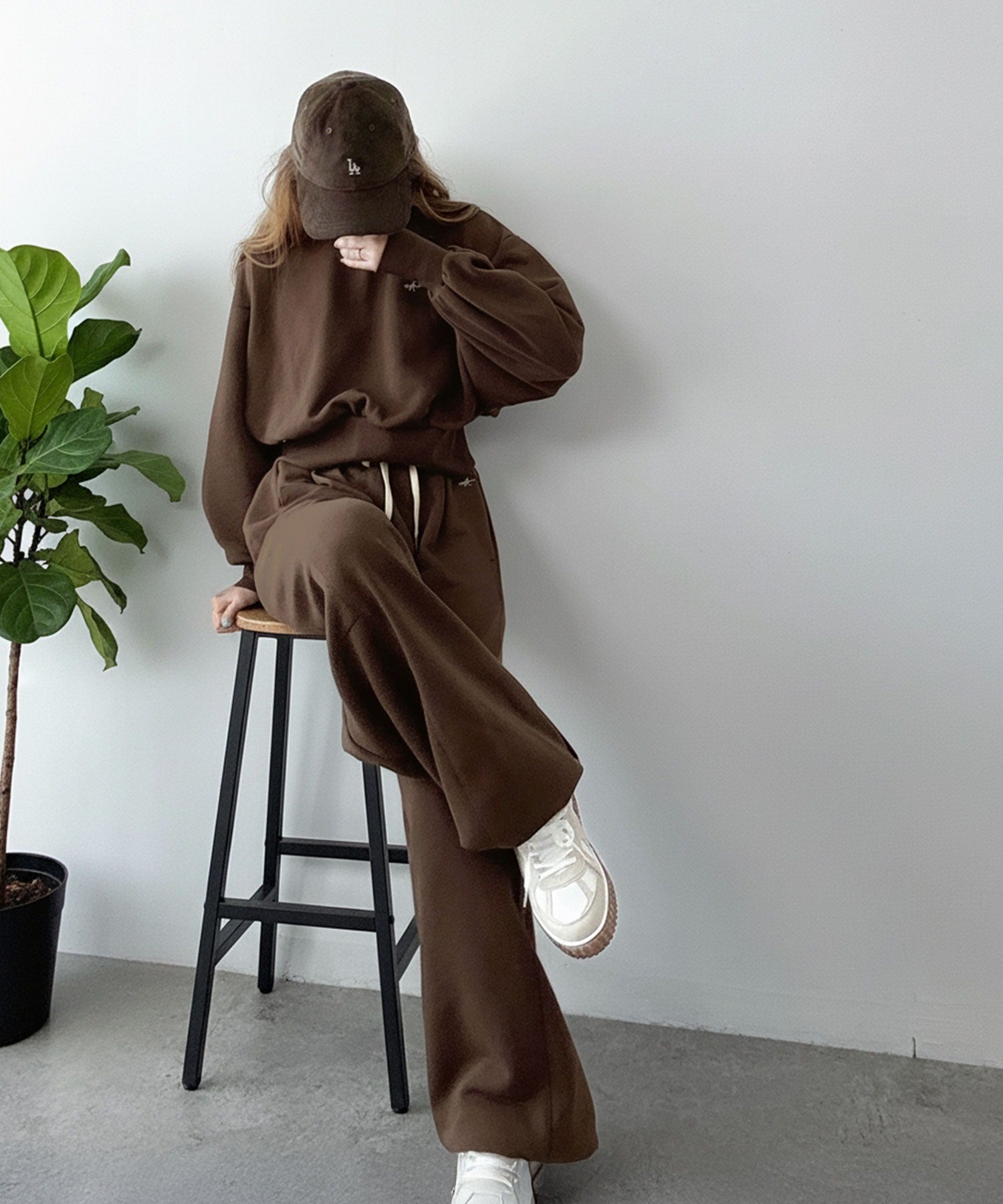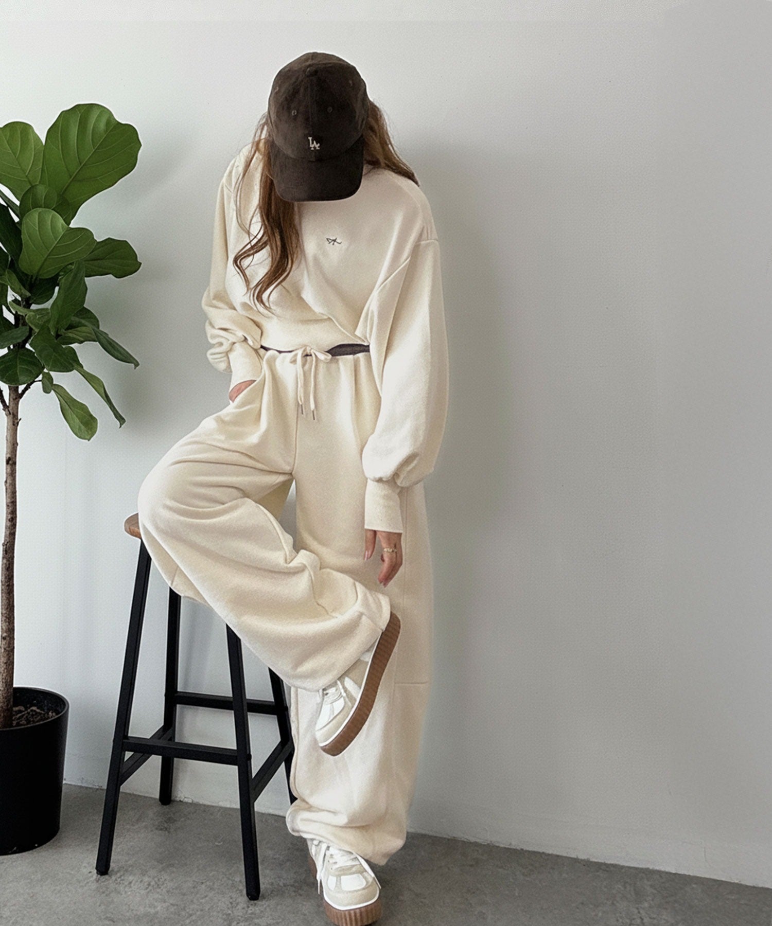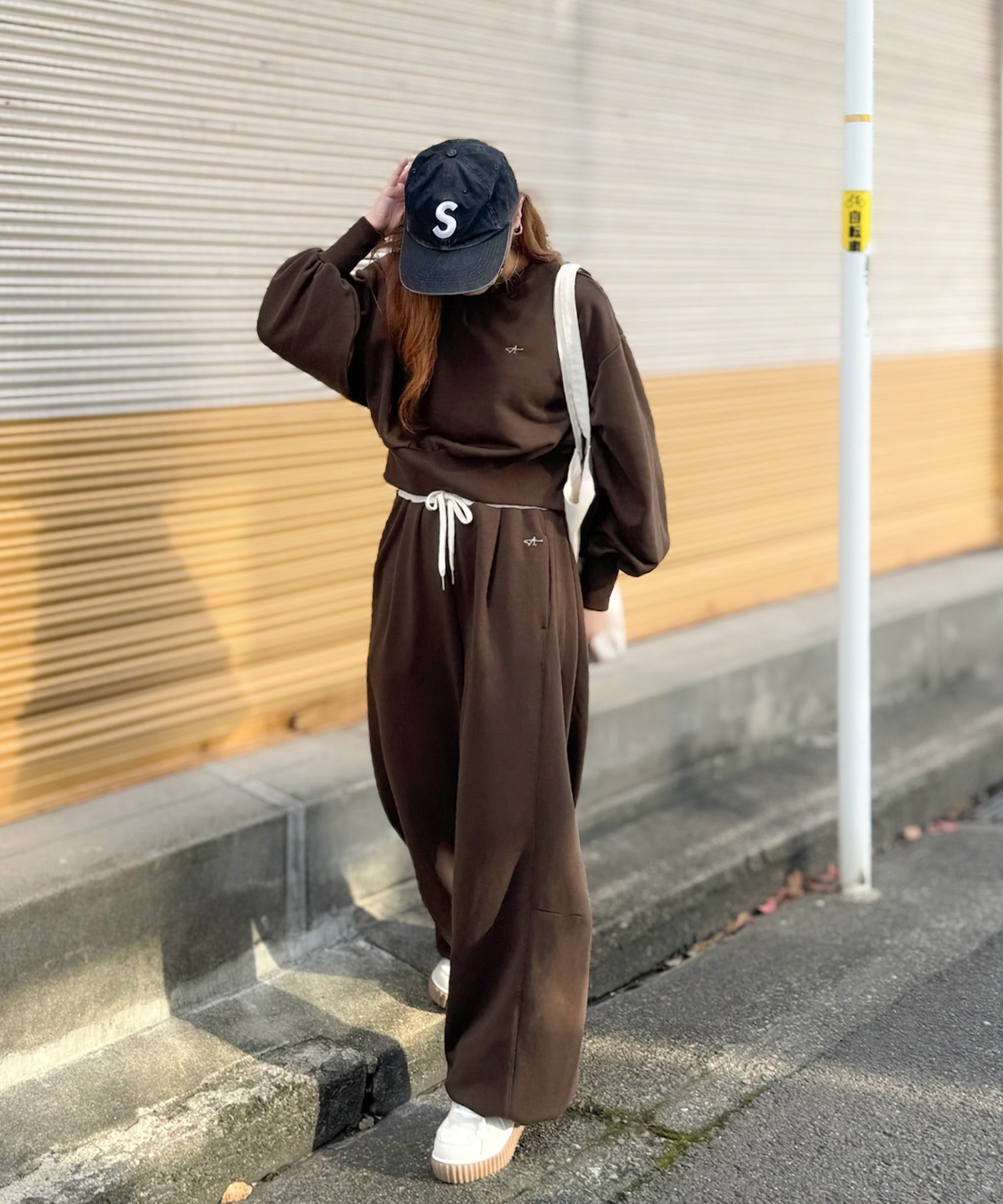 同色のスウェットと合わせてセットアップコーデも可能で、