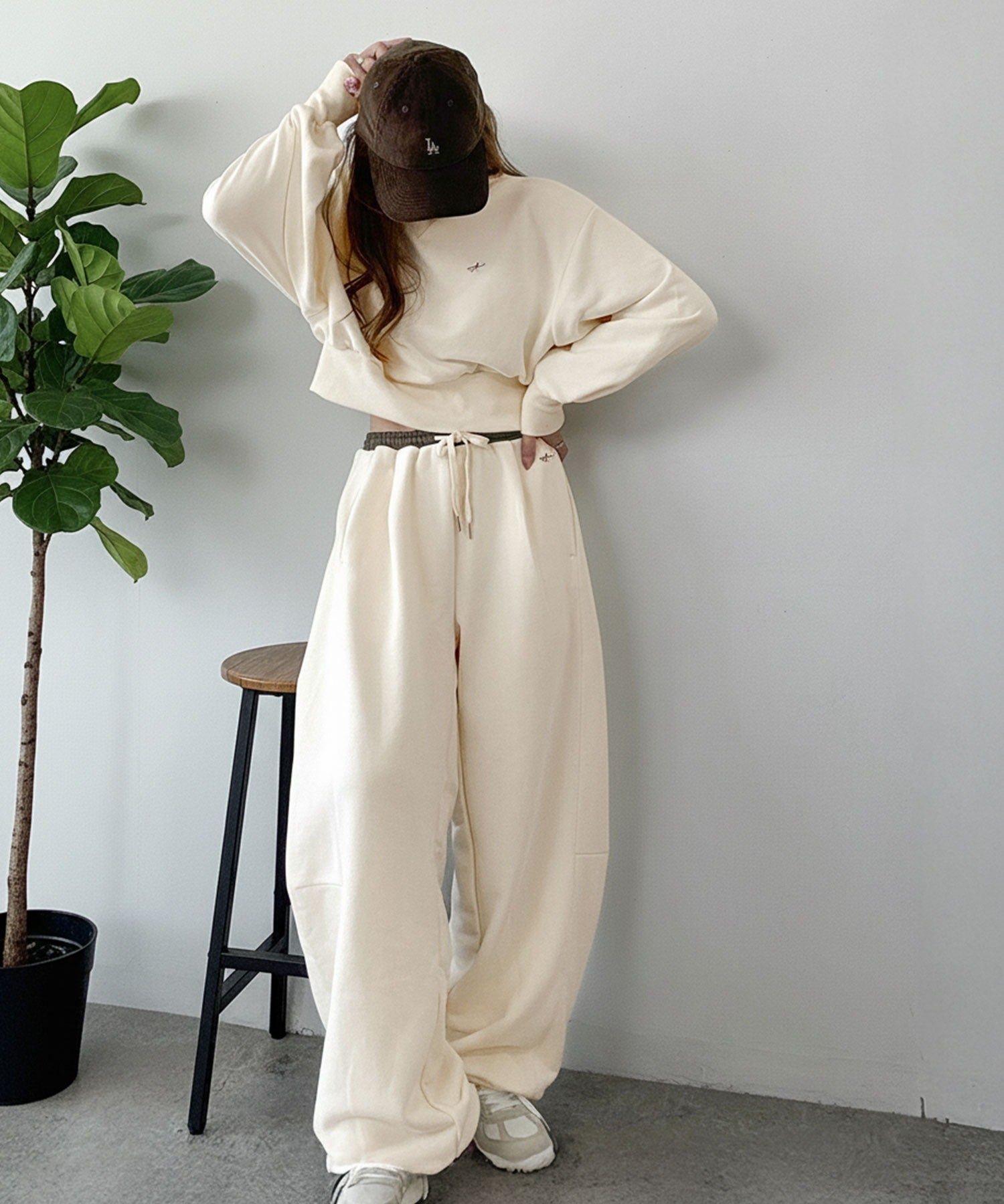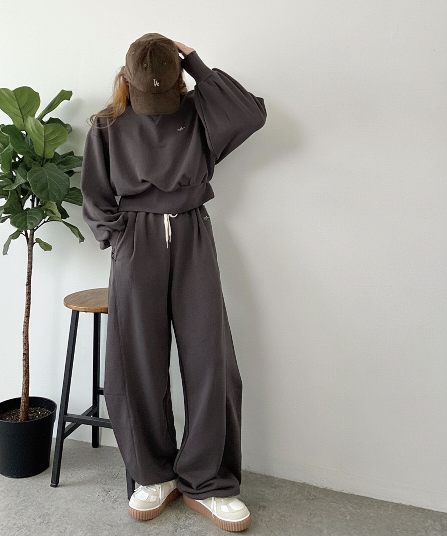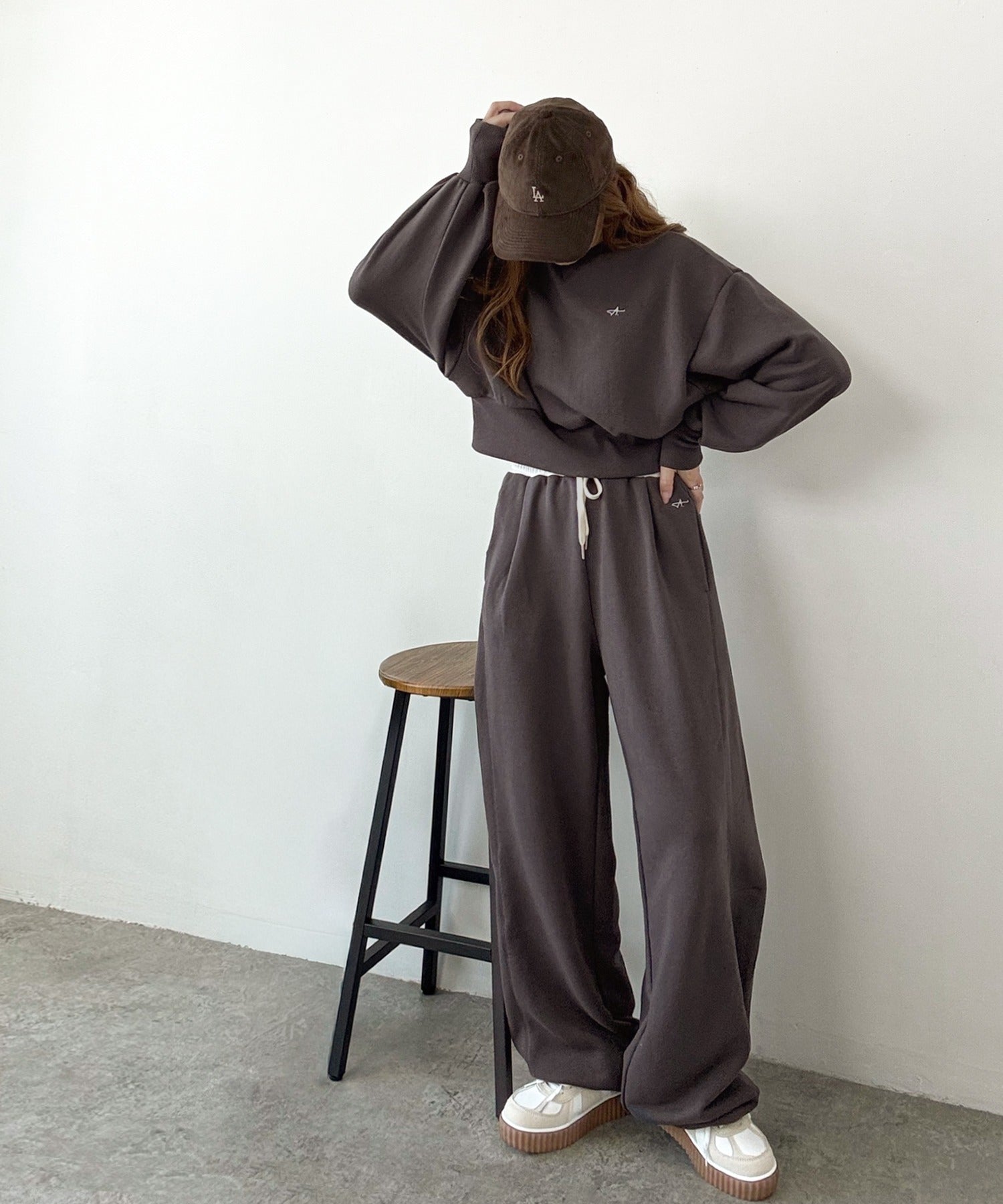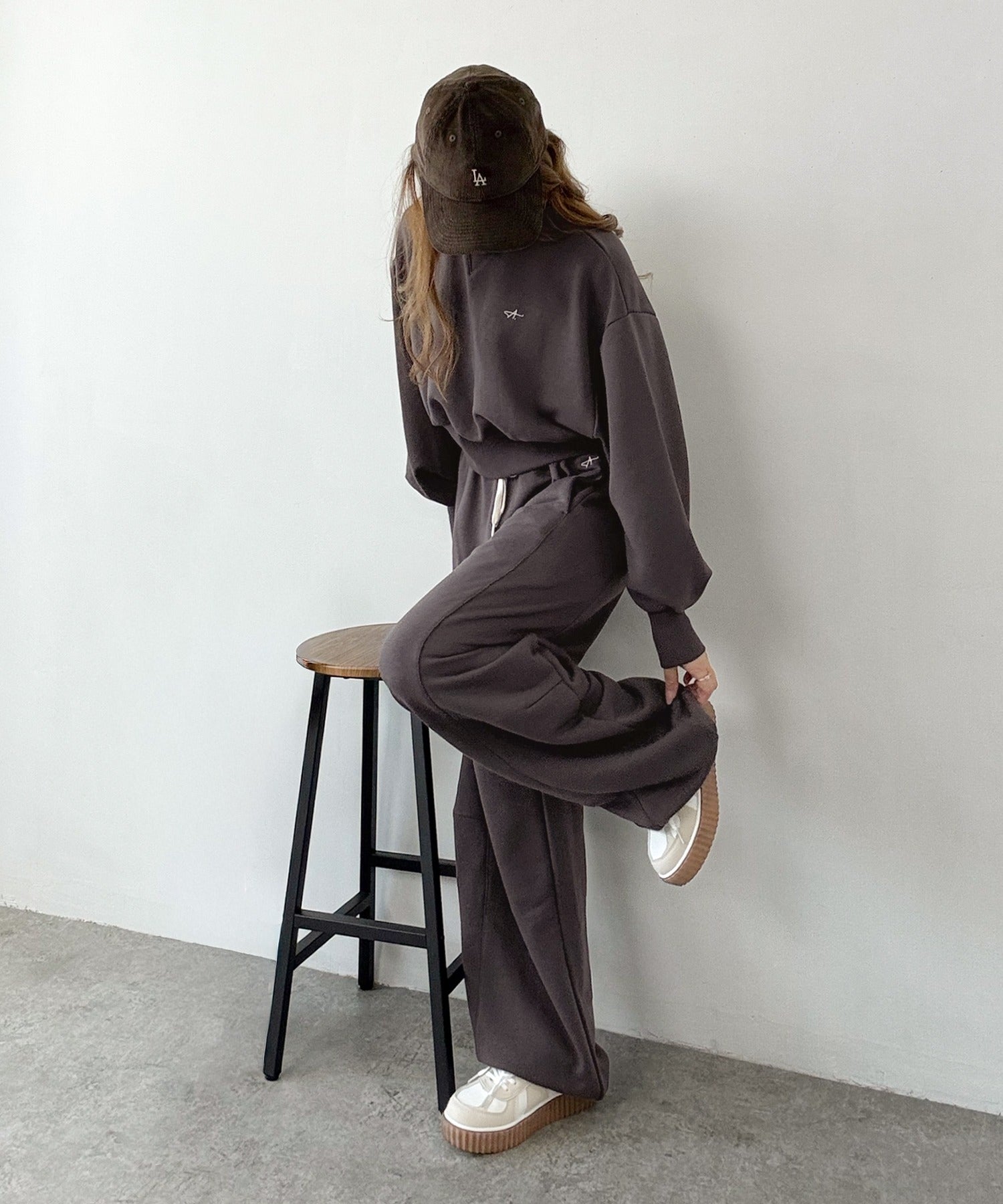 同色のスウェットと合わせてセットアップコーデも可能で、