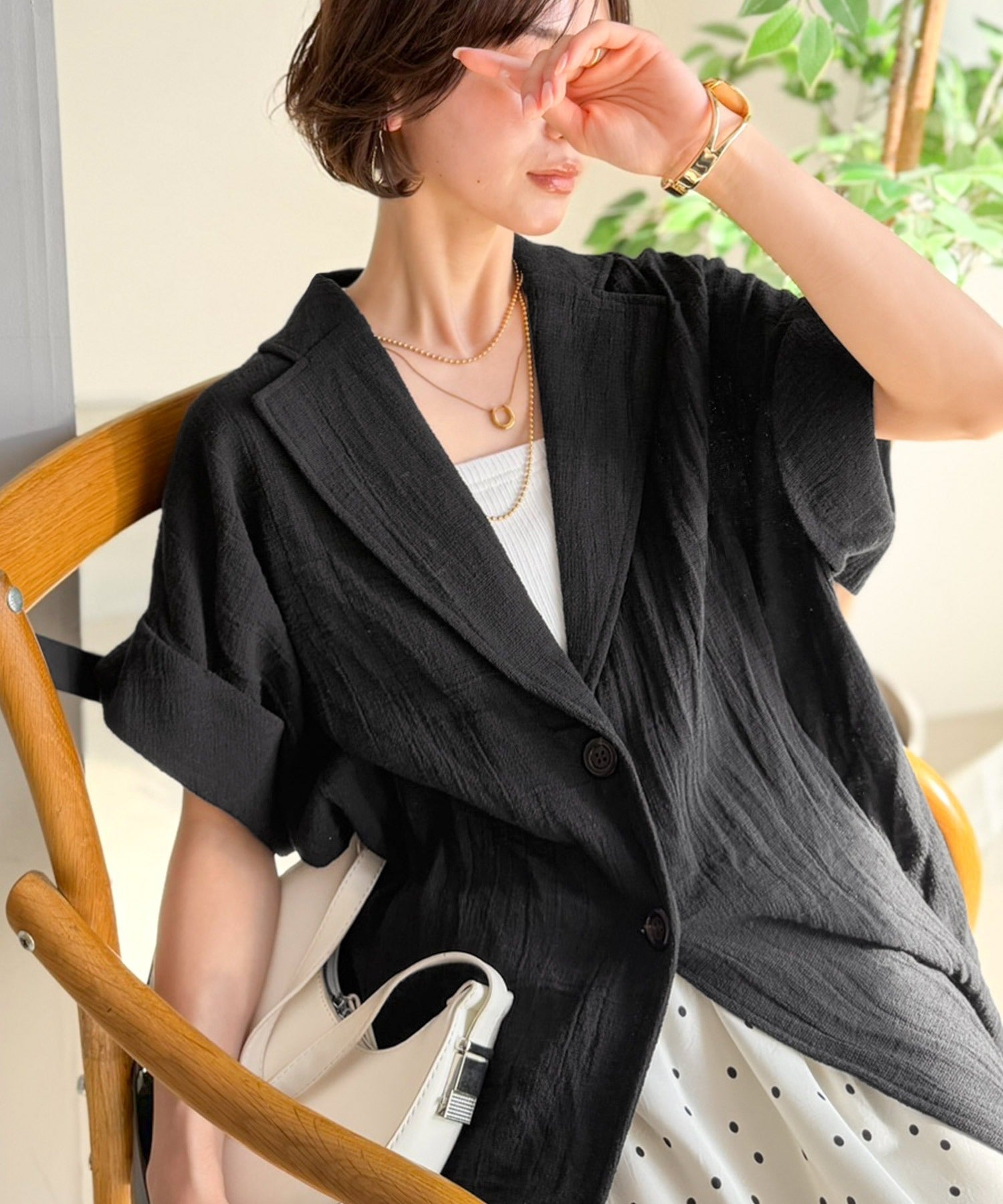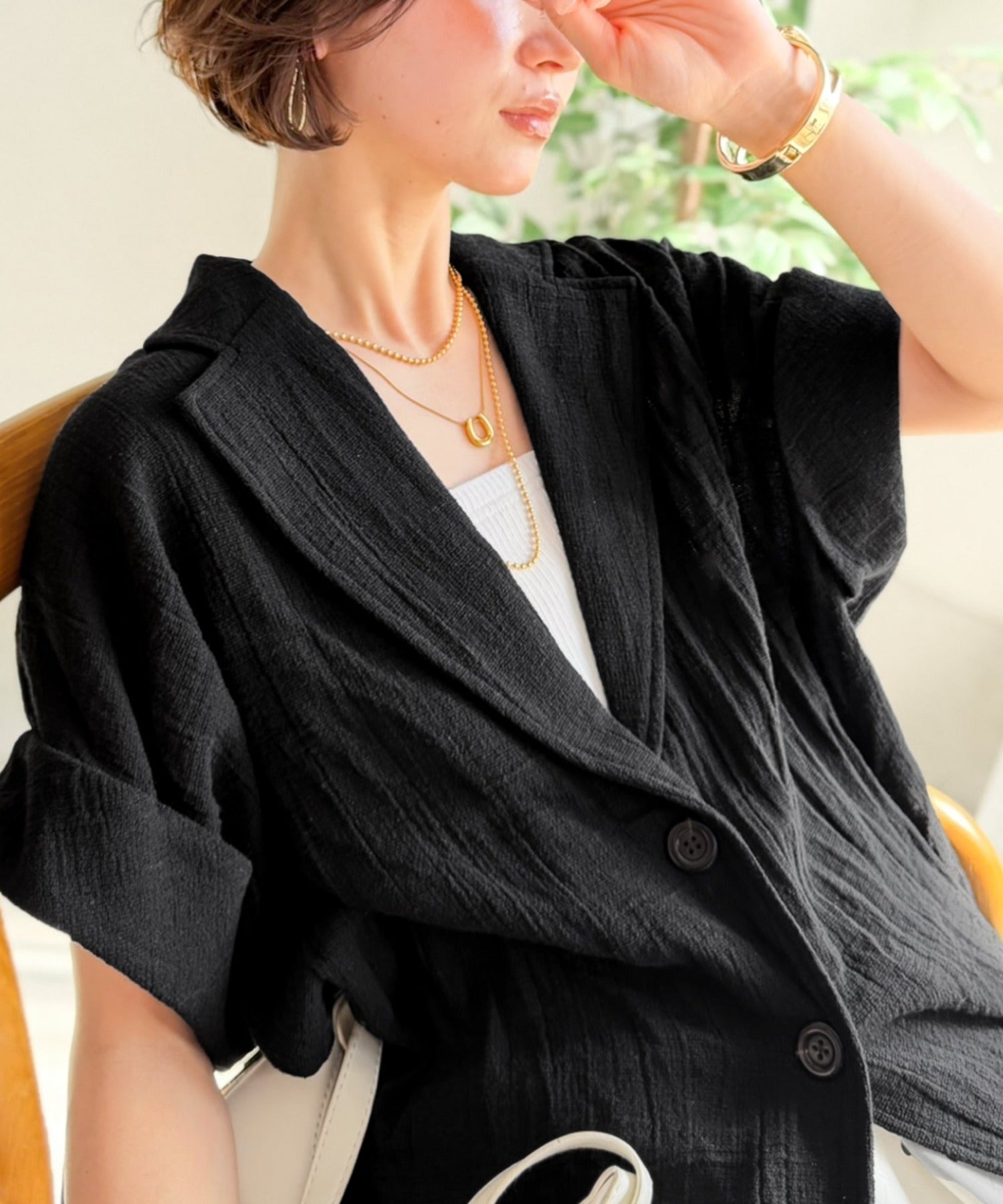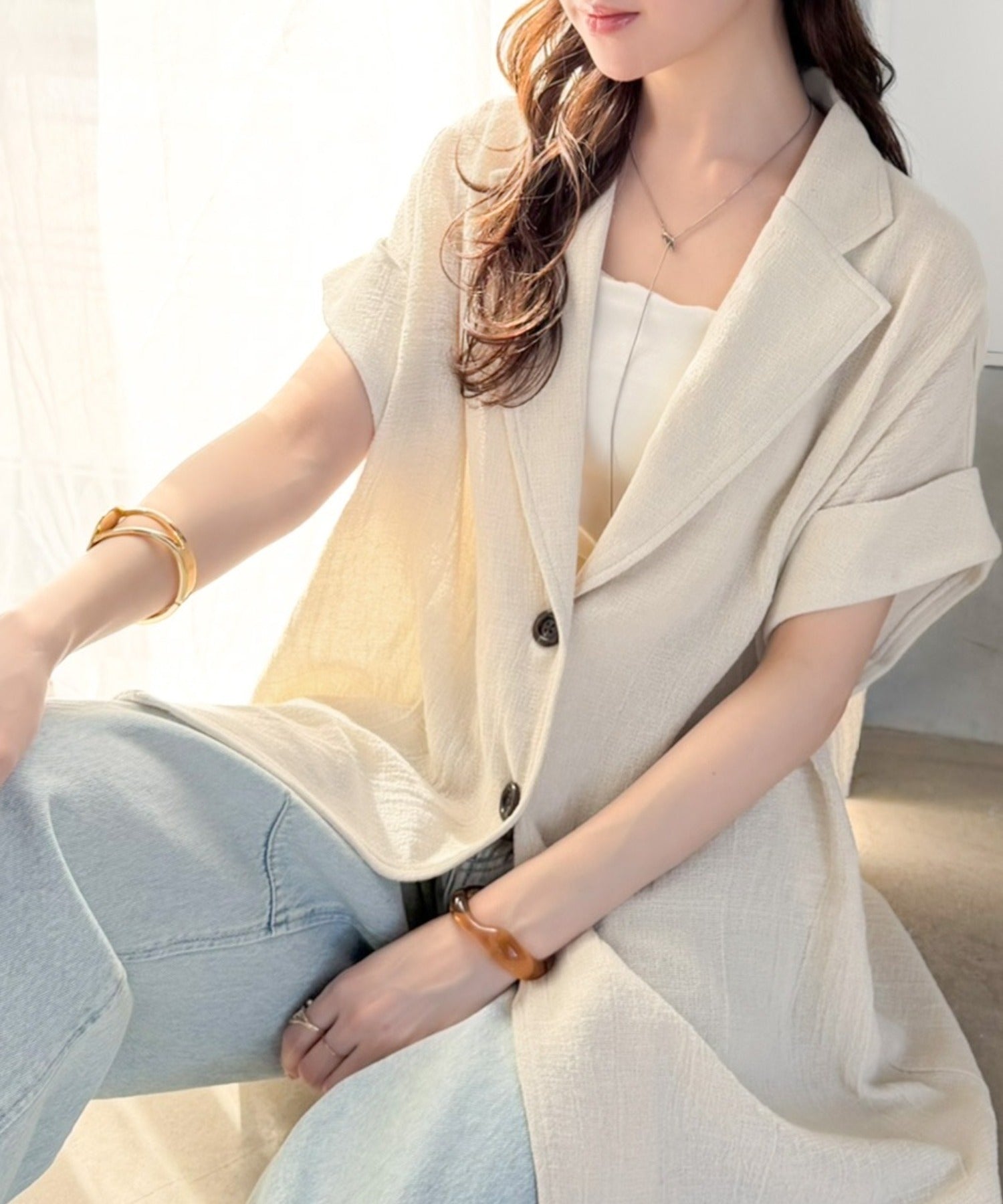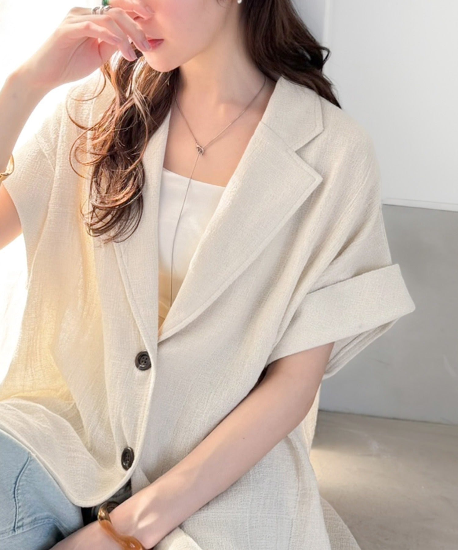 大人の品格を纏う、軽やかパナマ風テーラード。