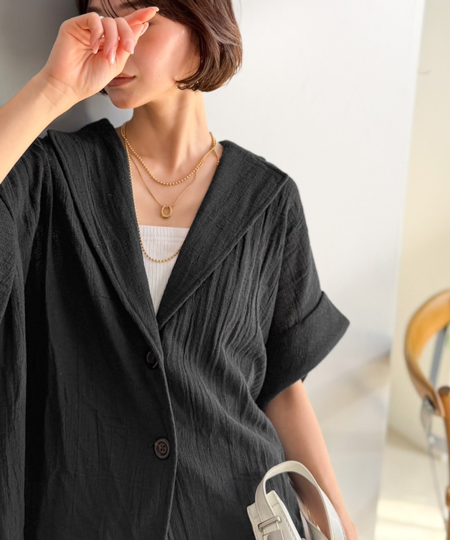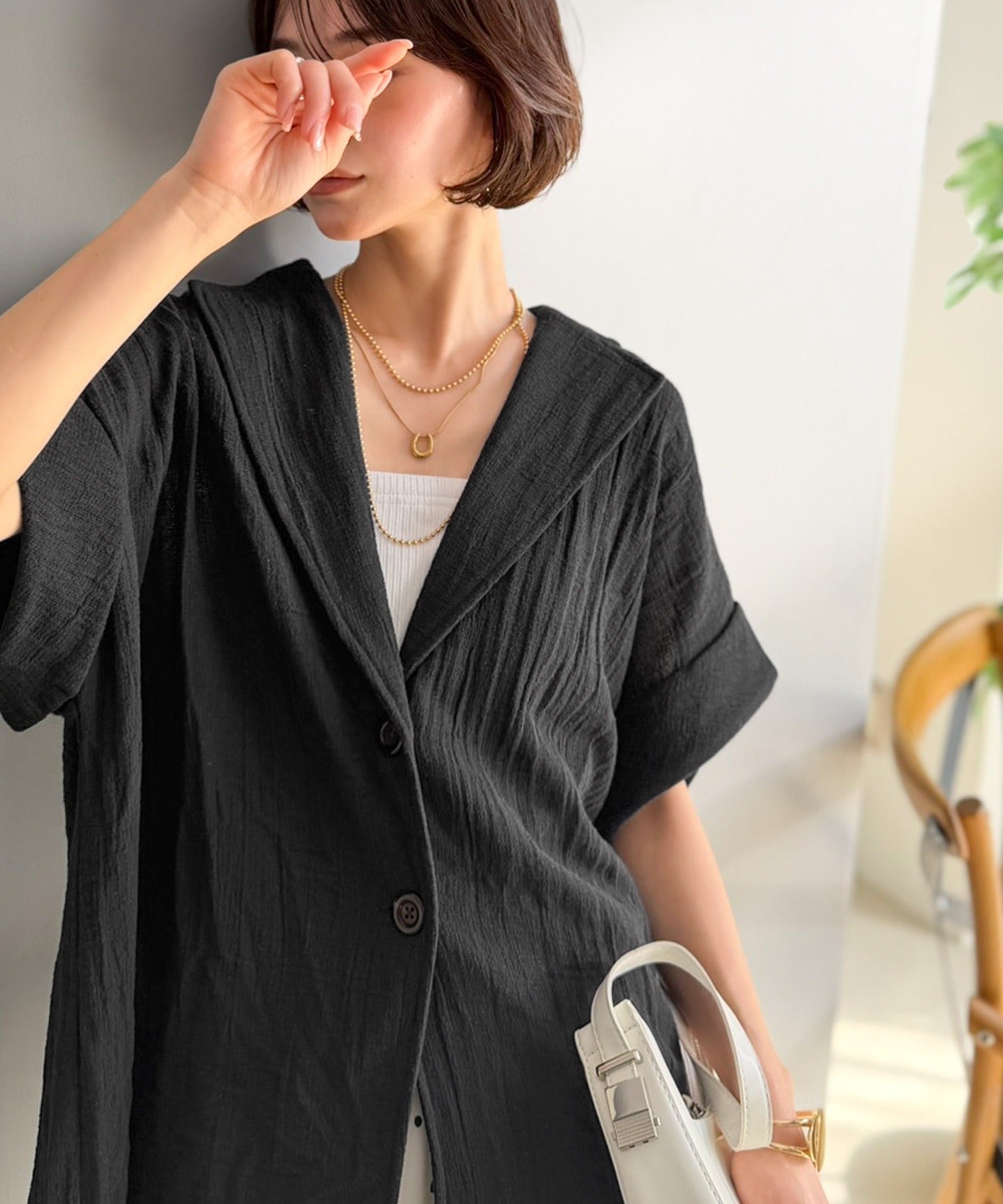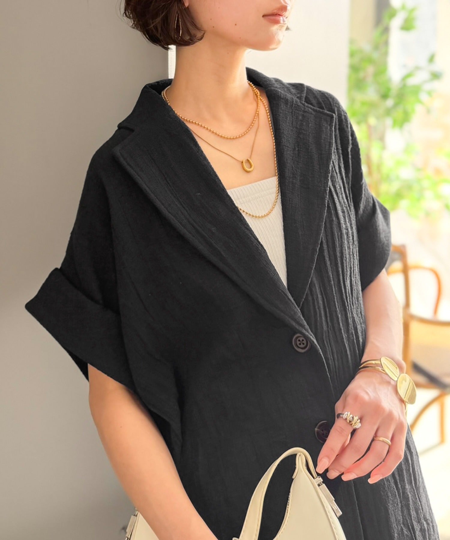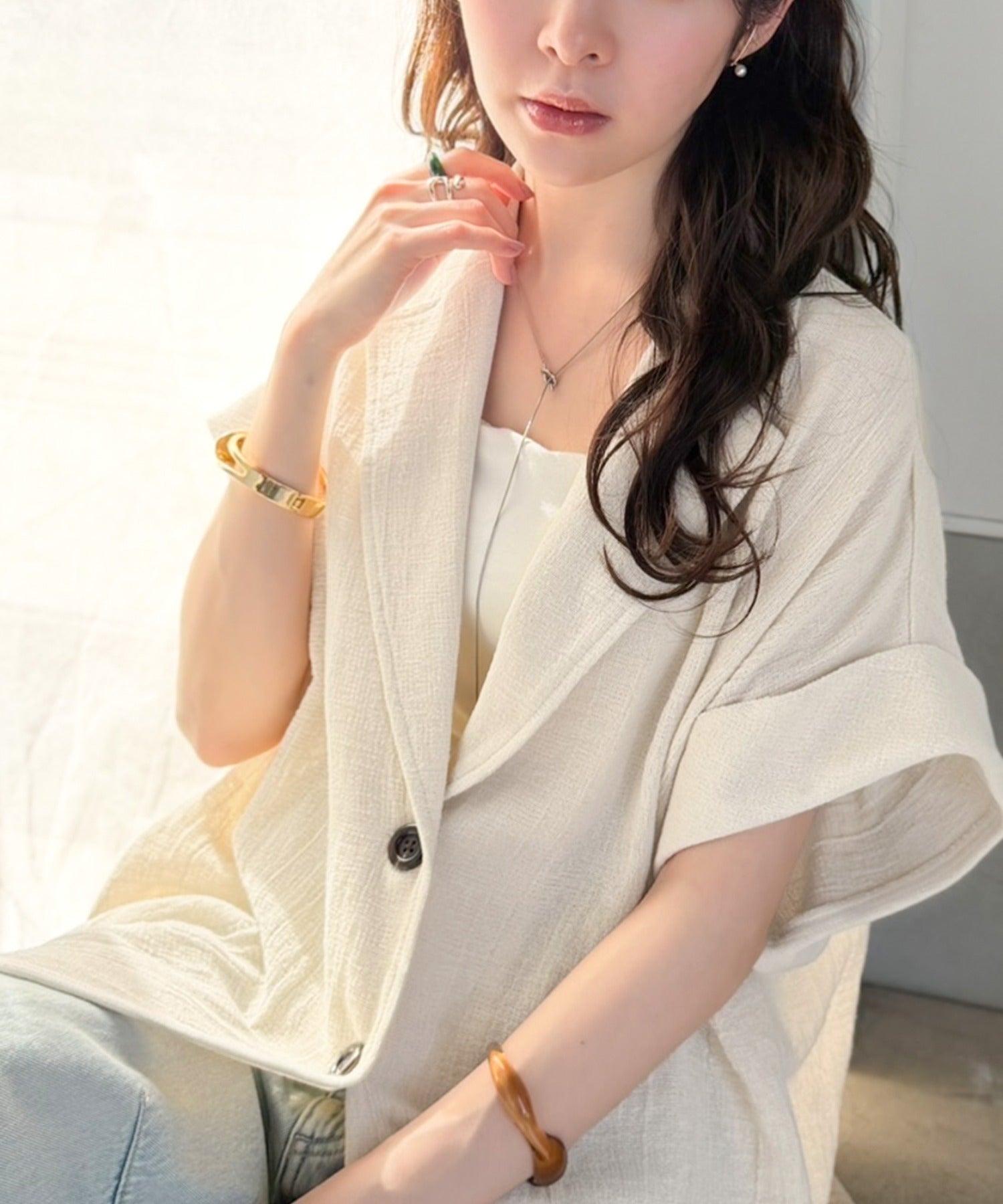 大人の品格を纏う、軽やかパナマ風テーラード。