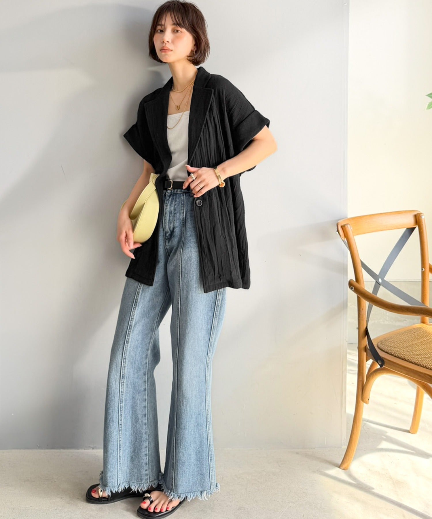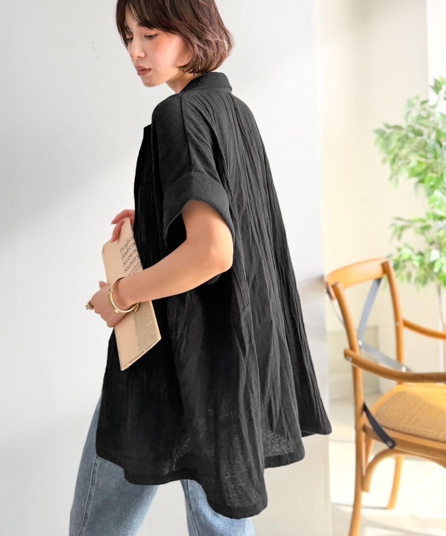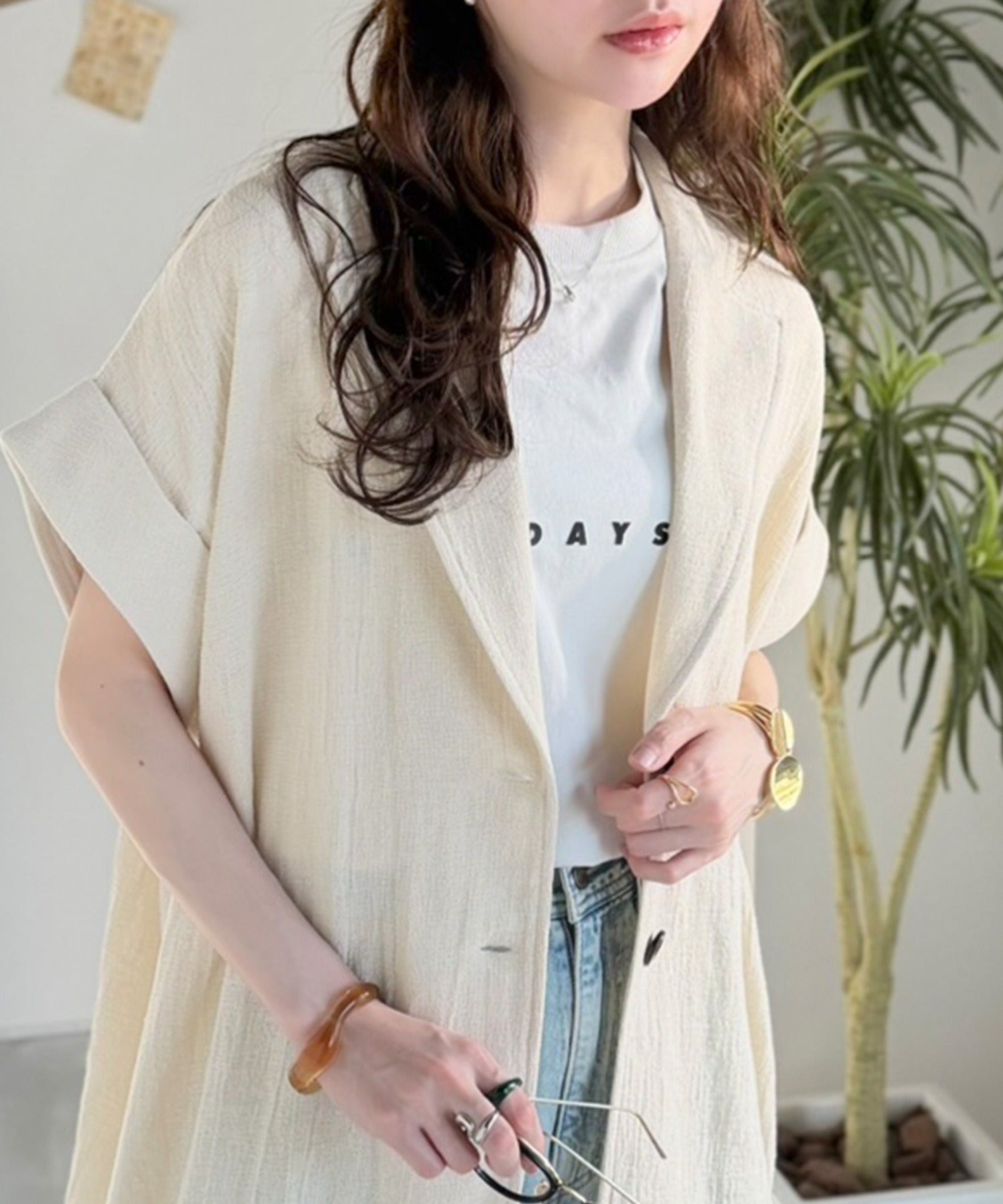 サッと羽織るだけで、Tシャツスタイルも一気に洗練された旬の表情に♪