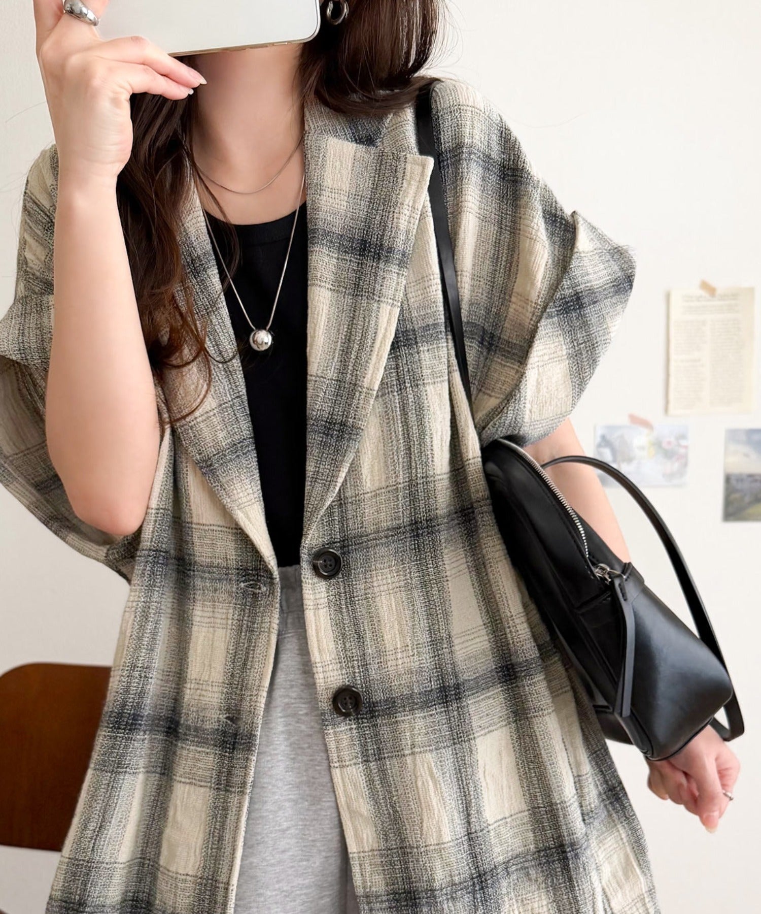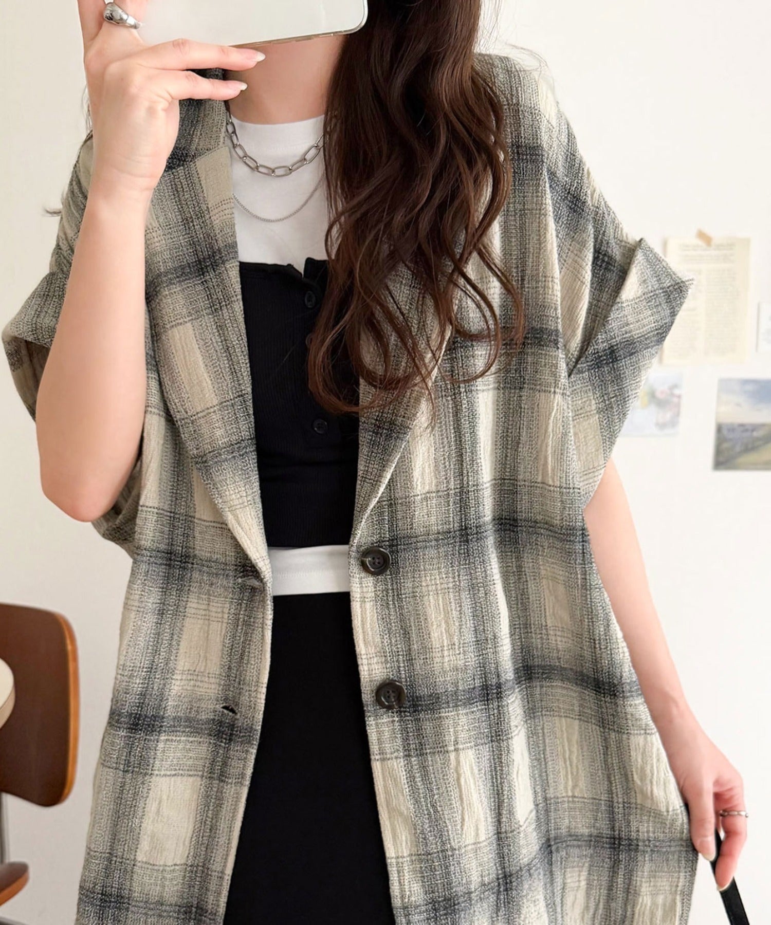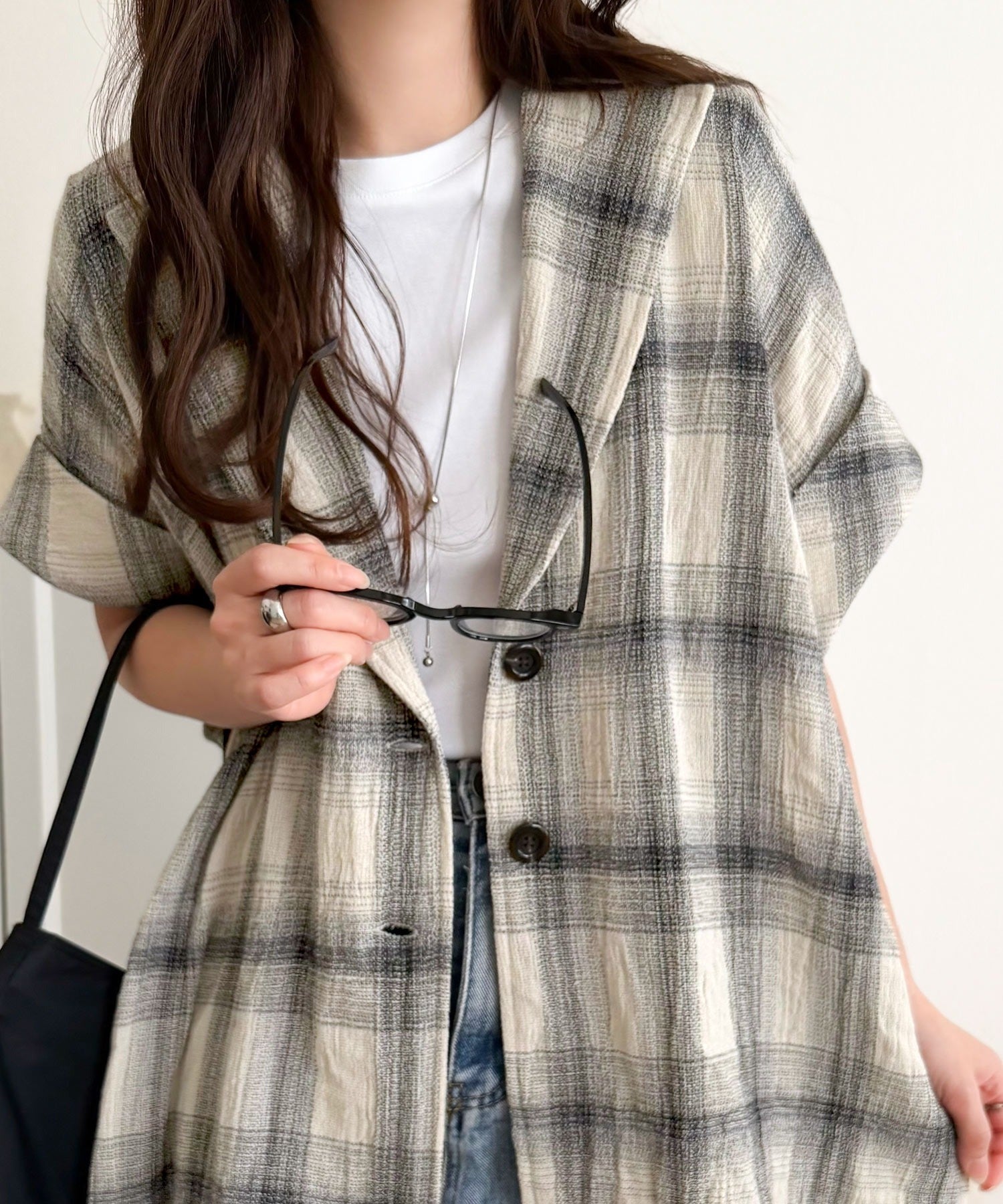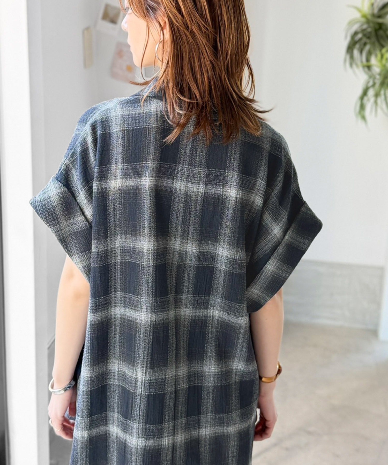 軽やかに羽織れて大人カジュアル映え。パナマ風チェック半袖ジャケット ce1010592