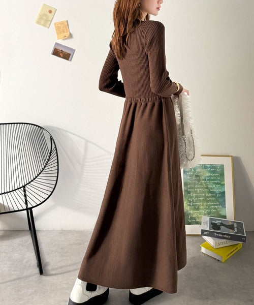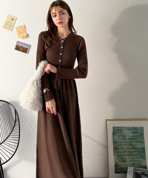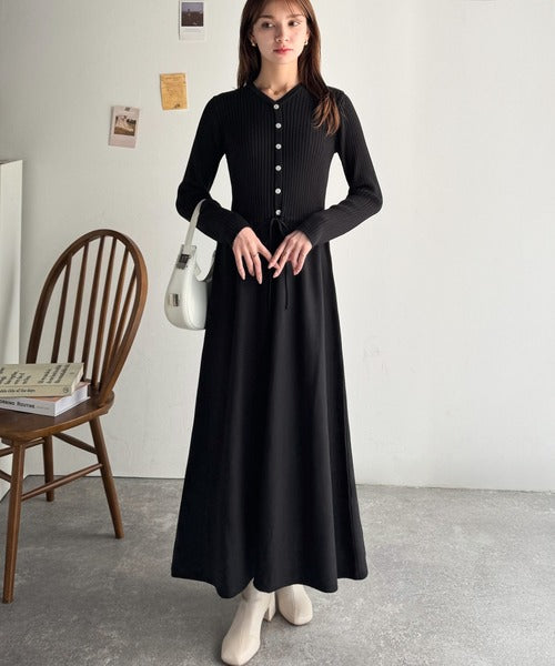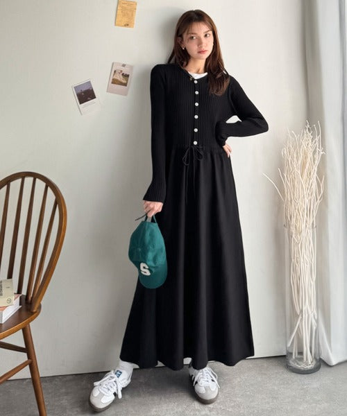 一枚で上品なラク可愛いが完成!ウエストリボンニットワンピース(ロング丈) ce1020288