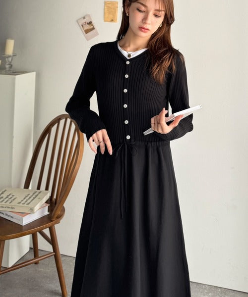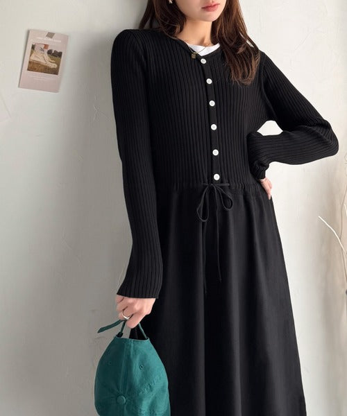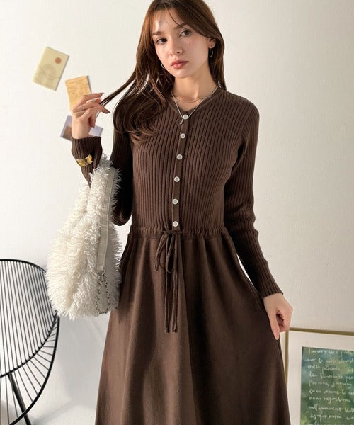 大人可愛いを叶える、ウエストリボンニットワンピース。