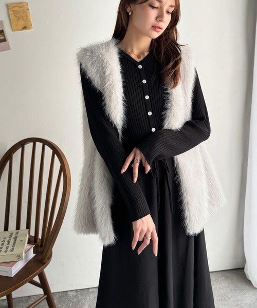 中にシアートップスを合わせたり、トレンドのファーベストを合わせたレイヤードスタイルもこなれた印象に♪
