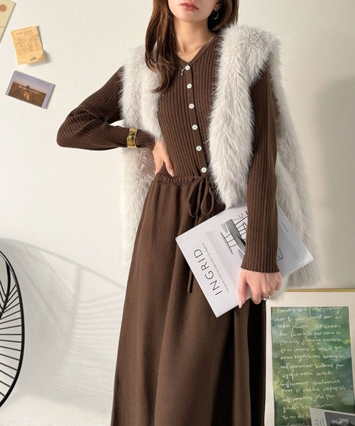 リブ編みの上半身が美しいシルエットを作り出し、さまざまなシーンで活躍します♪