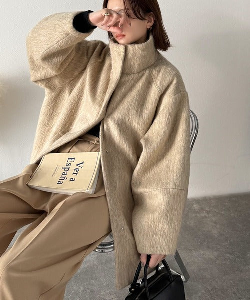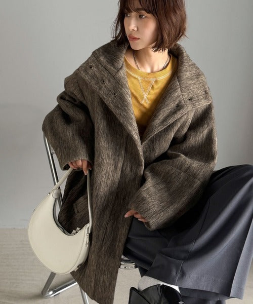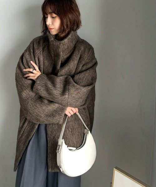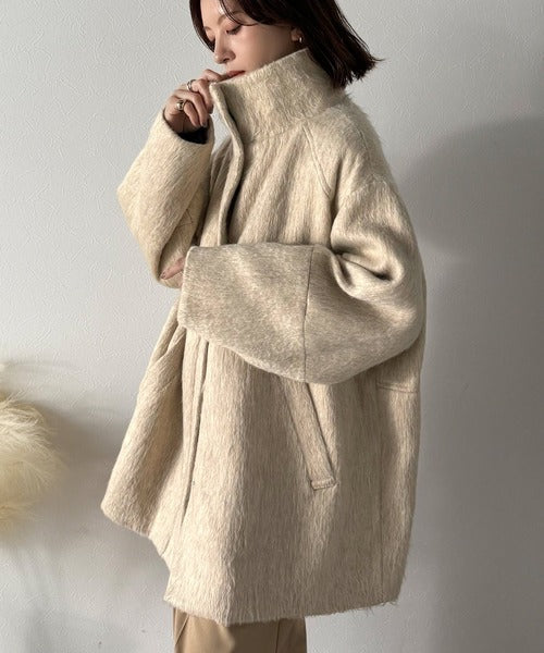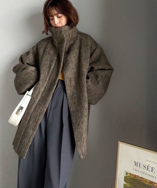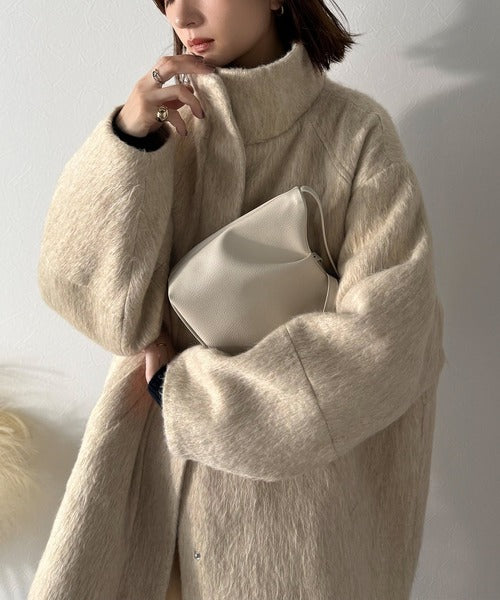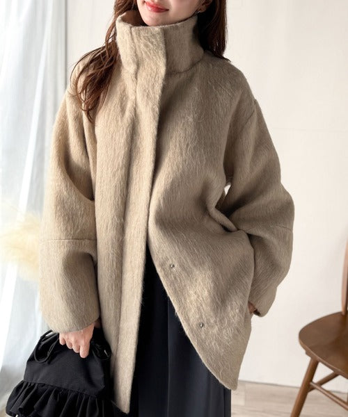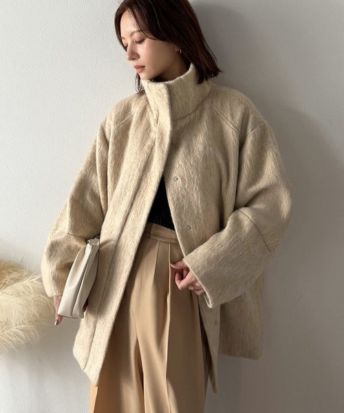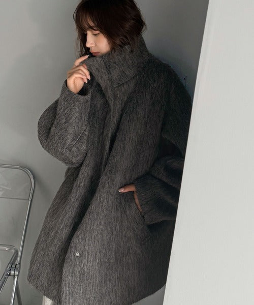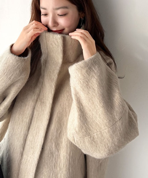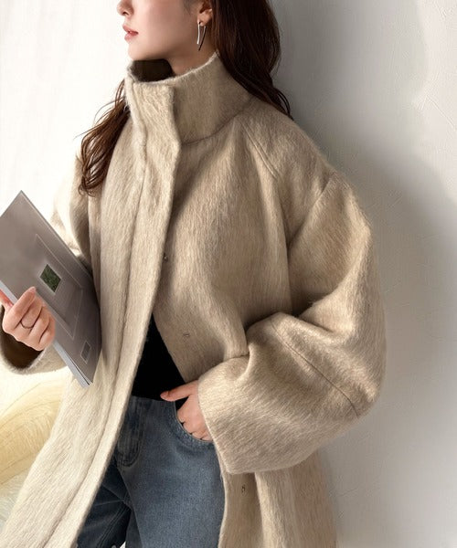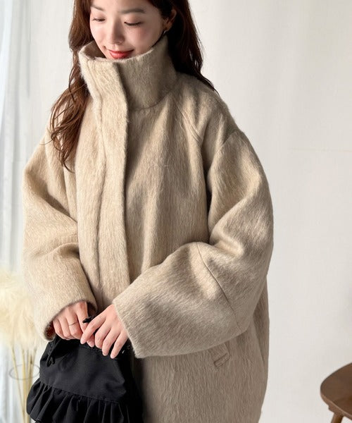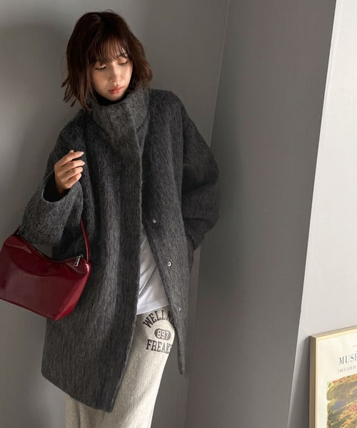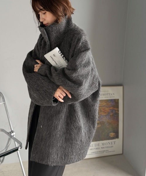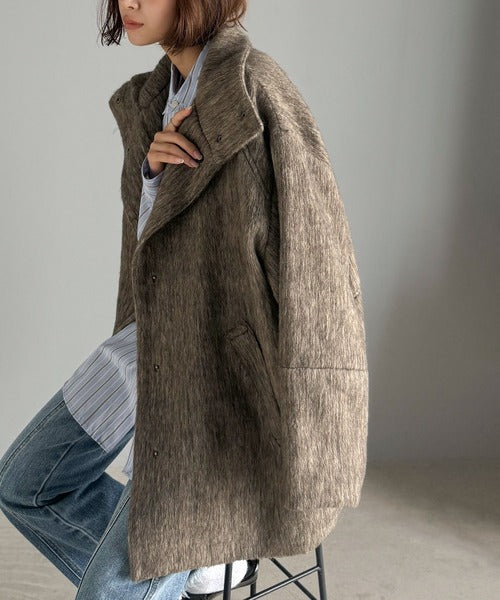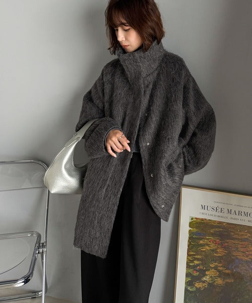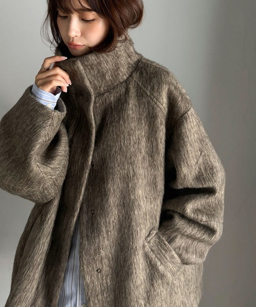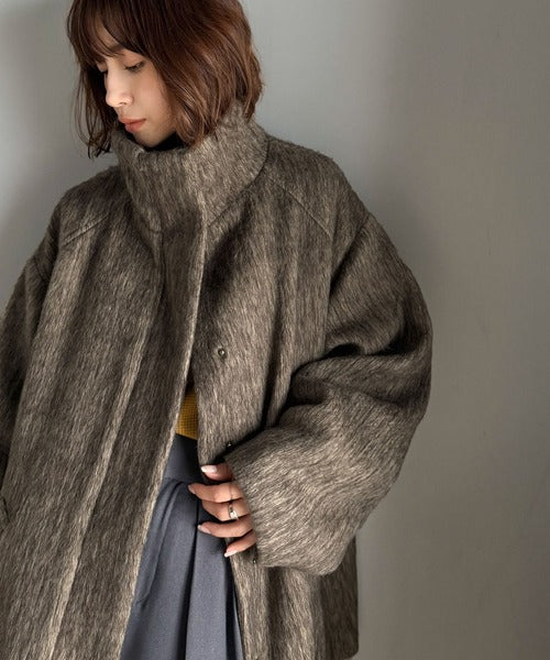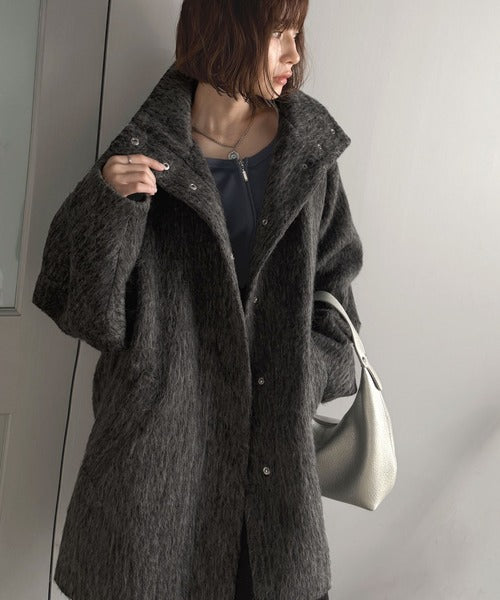 ベーシックとトレンドを両立。MIXシャギー比翼スタンドネックミドル丈コクーンスリーブコート ce1070166