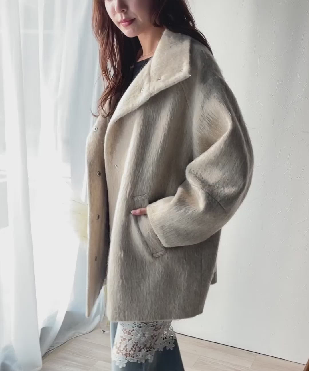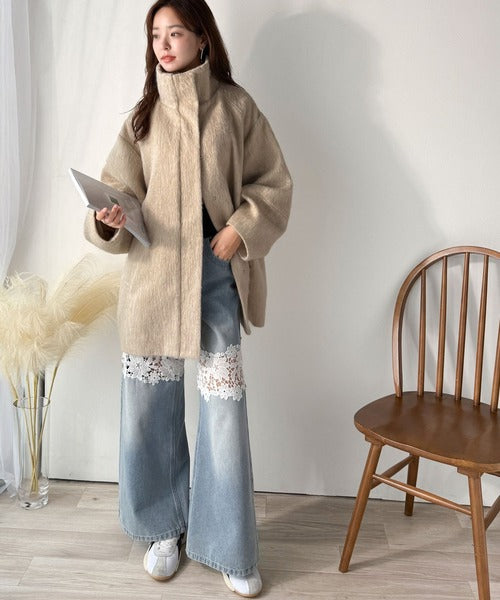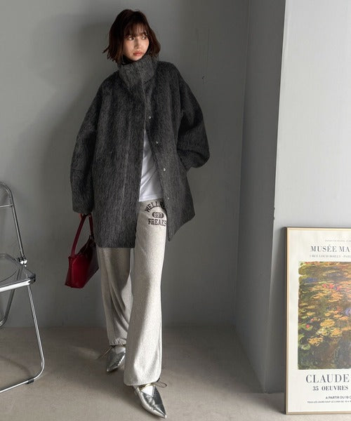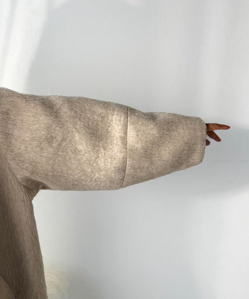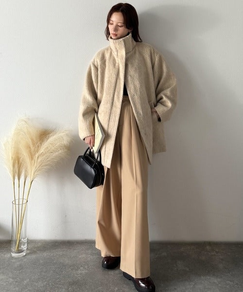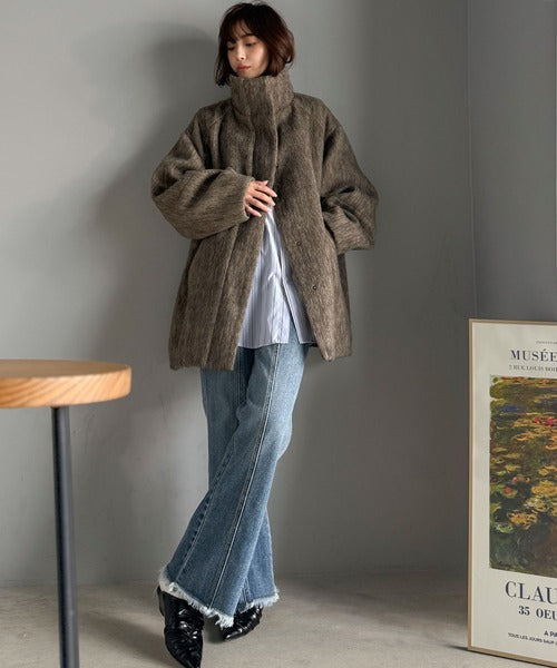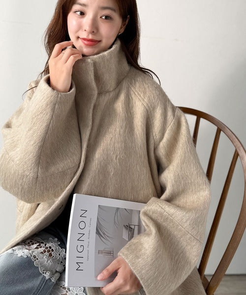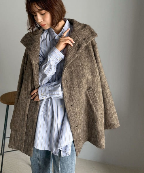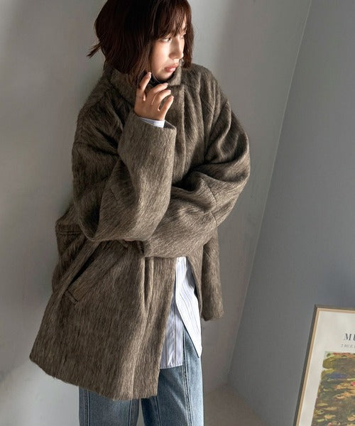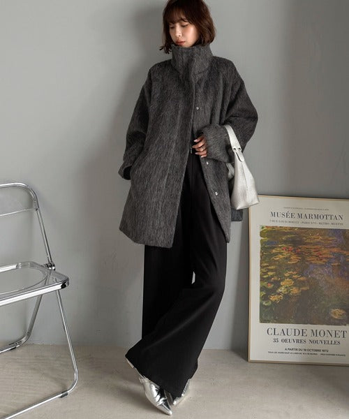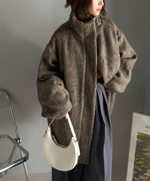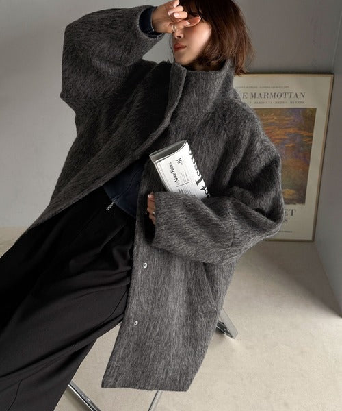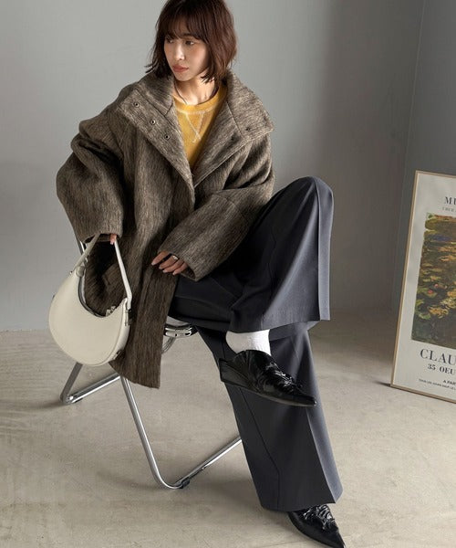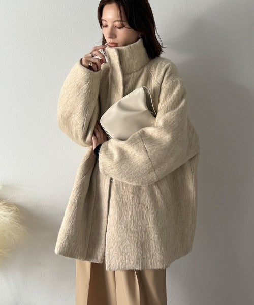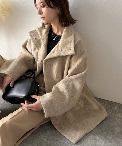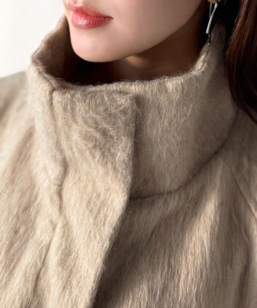 ベーシックとトレンドを両立。MIXシャギー比翼スタンドネックミドル丈コクーンスリーブコート ce1070166