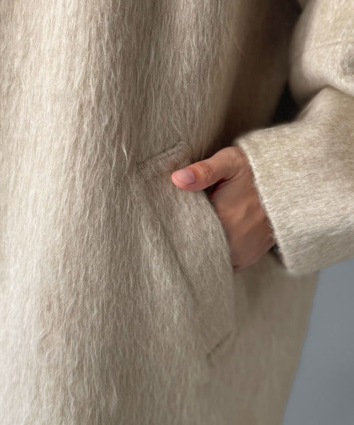 洗練されたムードと女性らしさを兼ね備えた、毛足の長いMIXシャギー素材が冬らしい主役級コート。