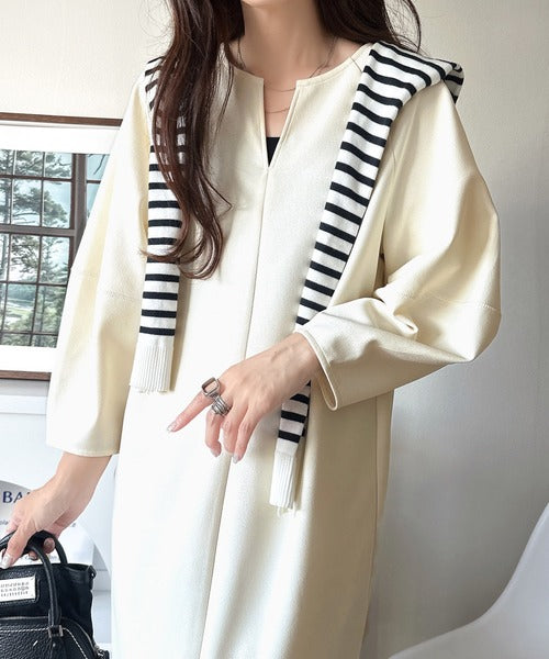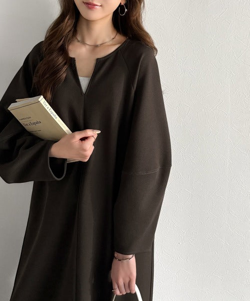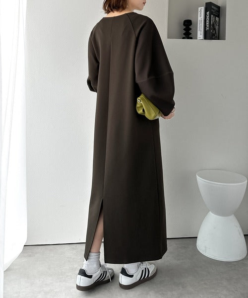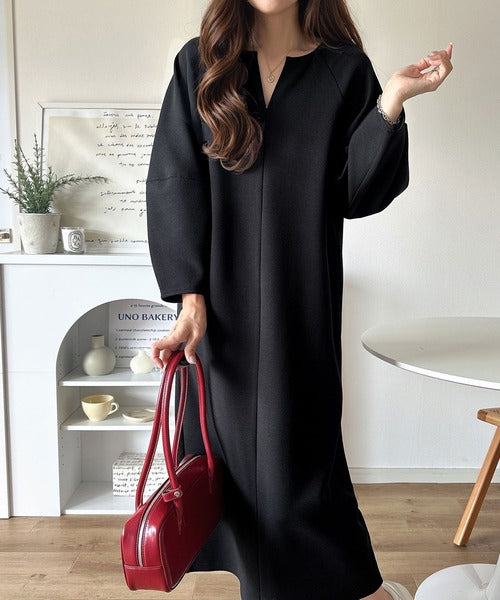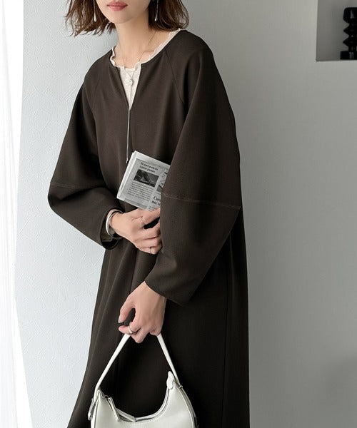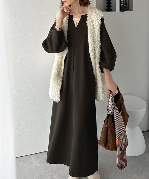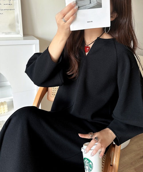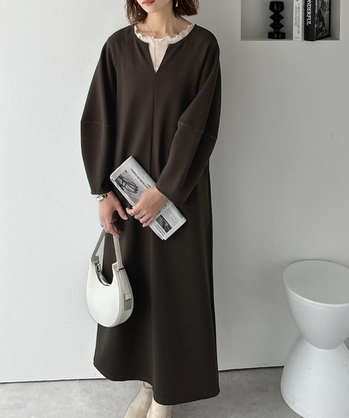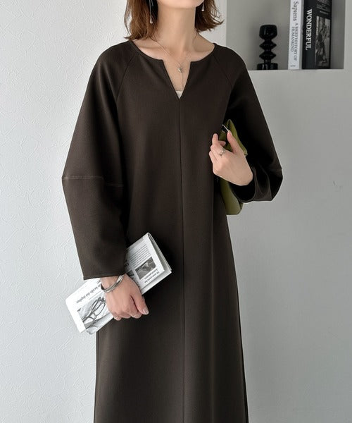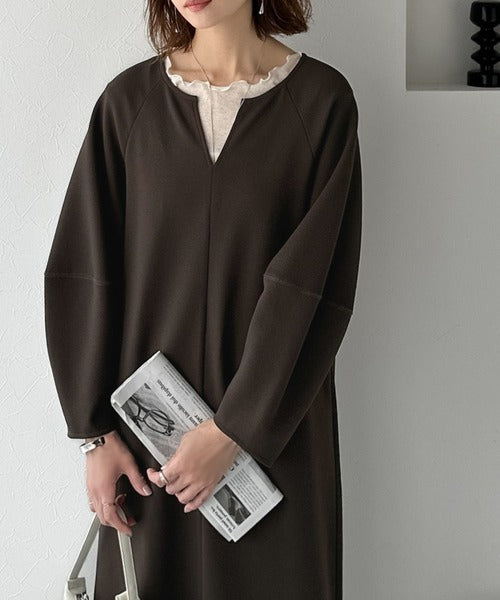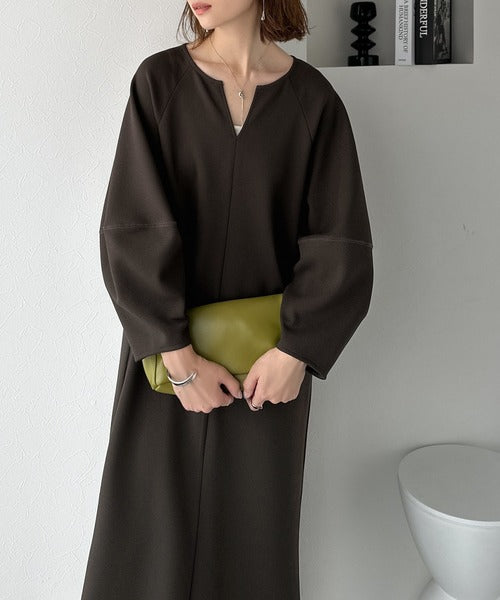 清楚にフェミニン、品よく抜け感。ランタンスリーブキーネックワンピース(ロング丈) ce1110149