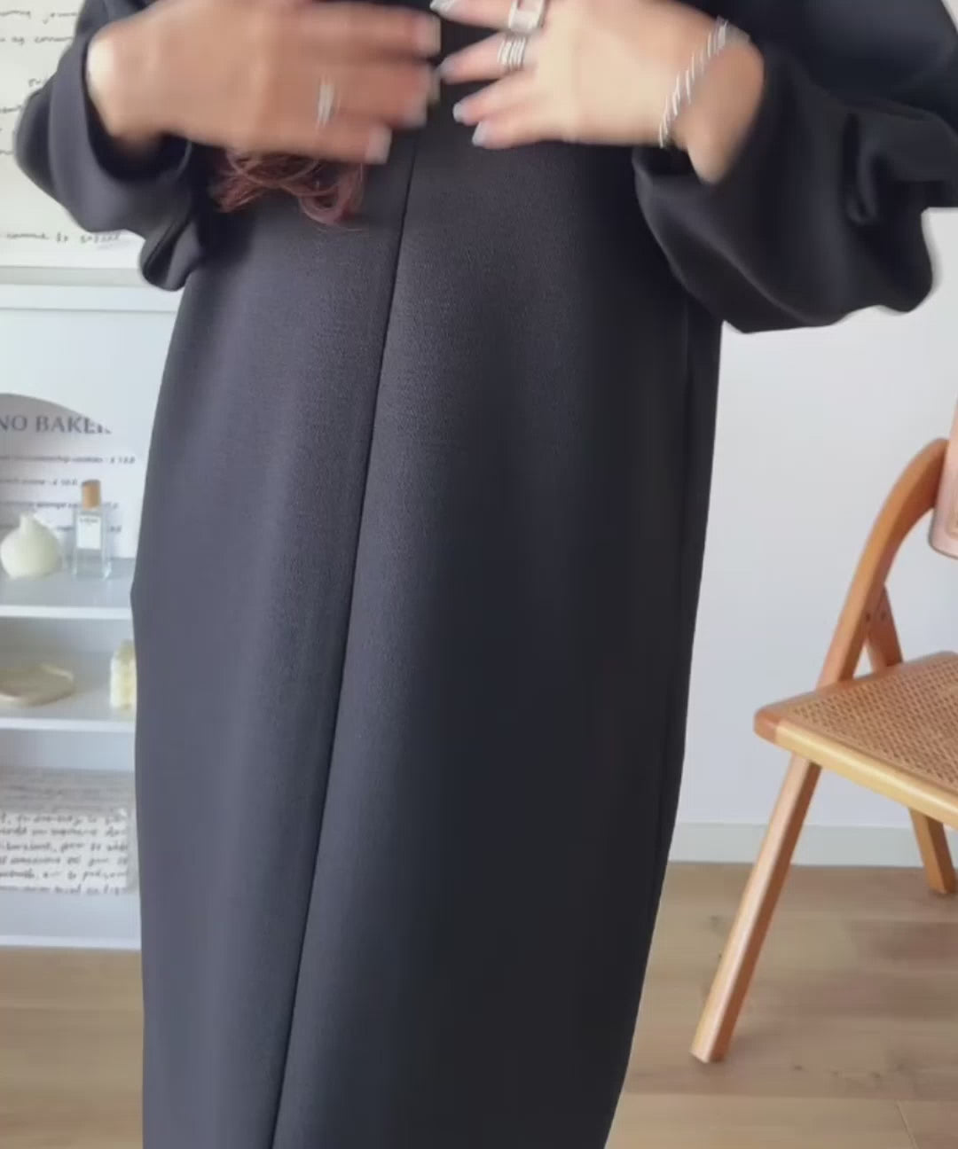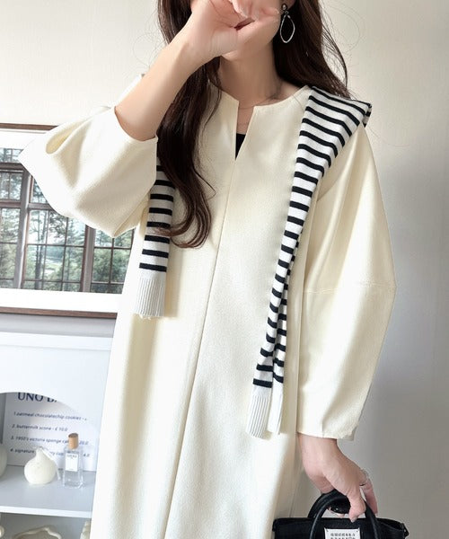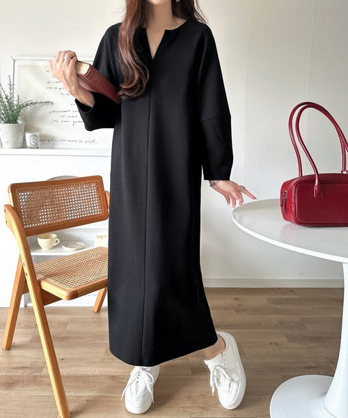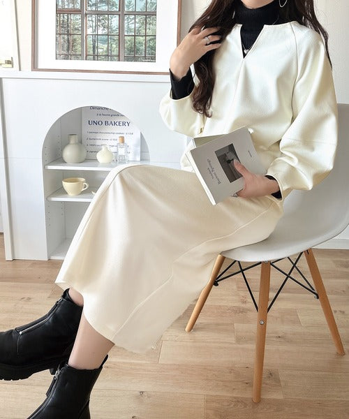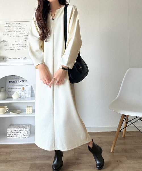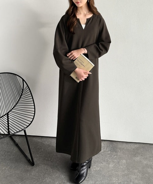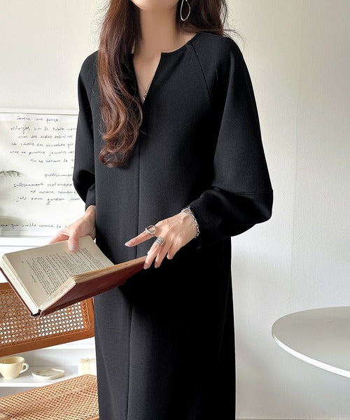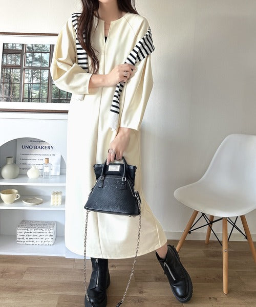 清楚にフェミニン、品よく抜け感。ランタンスリーブキーネックワンピース(ロング丈) ce1110149