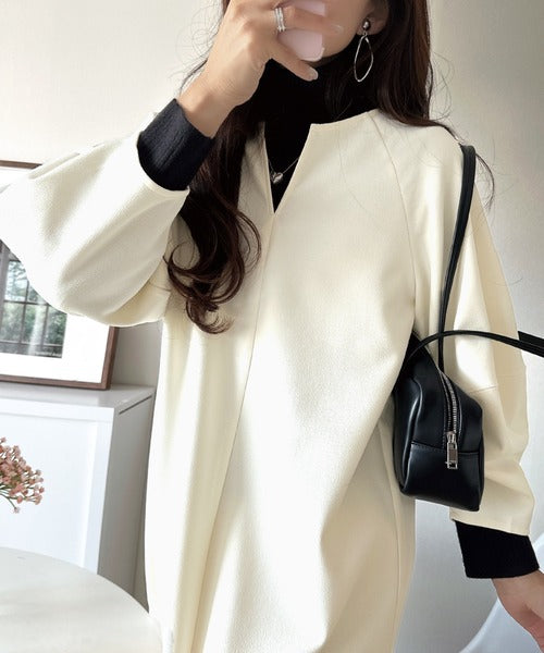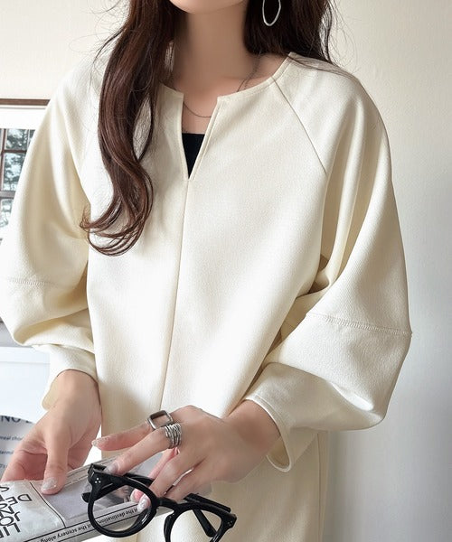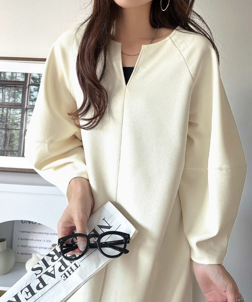 デコルテがきれいに惹き立つキーネックと、