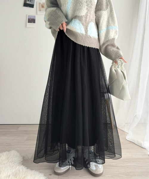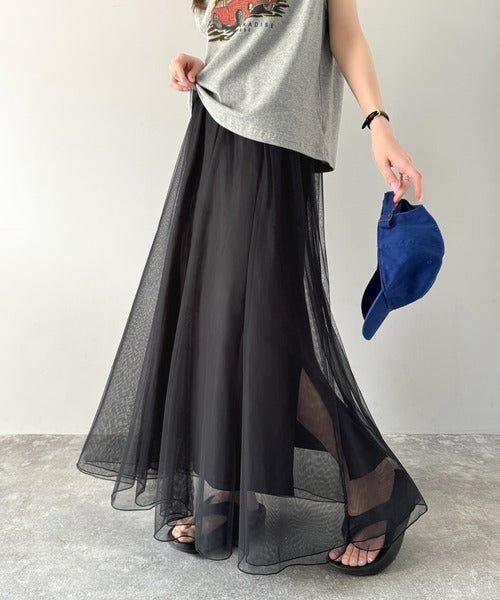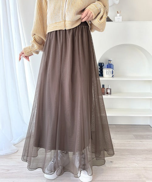 ダブルチュールでボリュームたっぷりの表情豊かなチュールスカート。