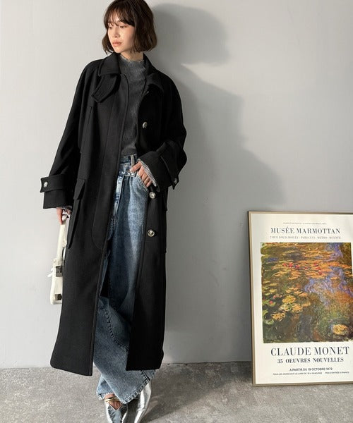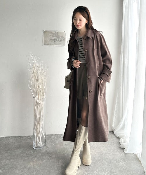 上品を纏う、主役級アウター。ロング丈比翼ステンカラーコート ce1265006