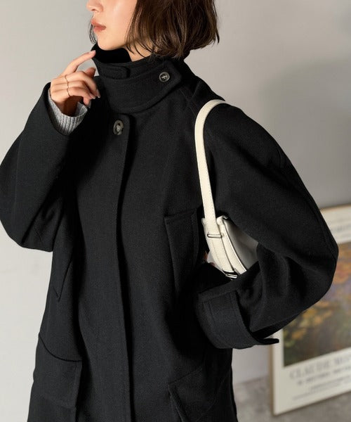 高級感漂うメルトンジャージ素材を使用したロング丈コート。