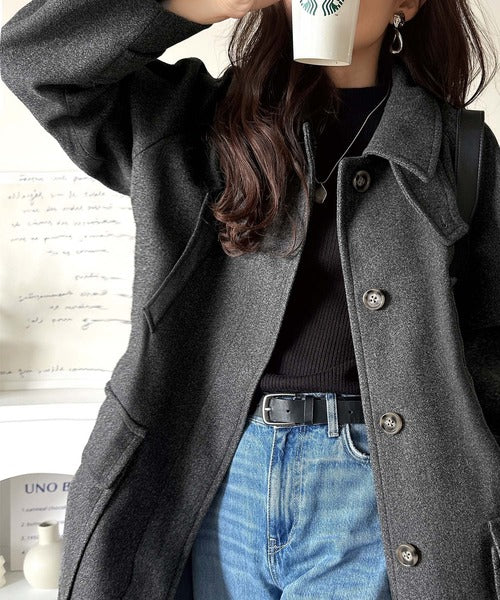 ベーシックなデザインながらも1枚で女性らしさを引き立てるこのコートは
