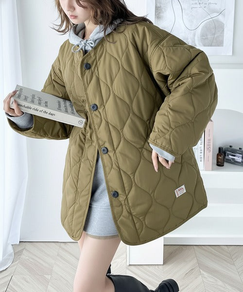 普段小さいサイズを着ている方にも大きいサイズでキルティングコートとしても着て頂きやすいアイテムです。