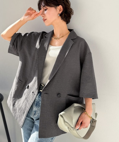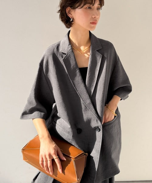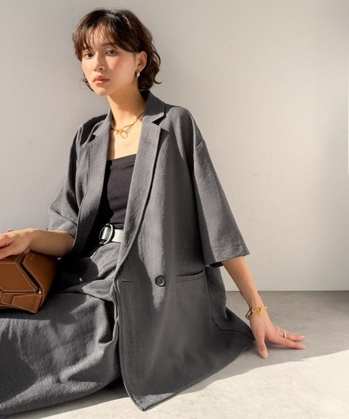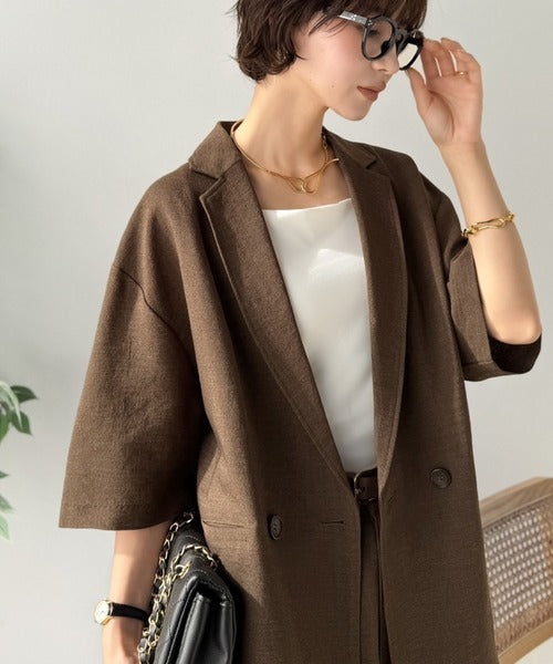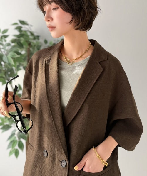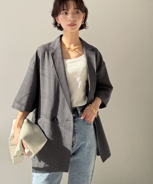 程よくゆとりを持たせた、シャツ感覚で羽織れるリネンタッチジャケット。