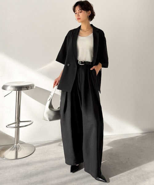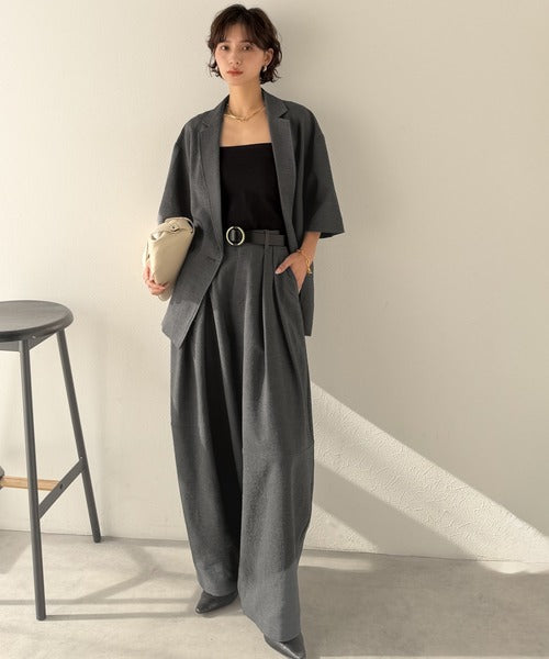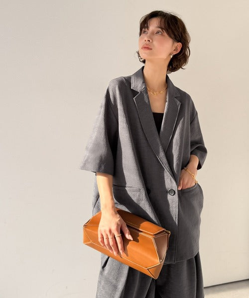 通気性に優れたリネンタッチ素材を使用し、軽く涼やかで上品な表情が魅力