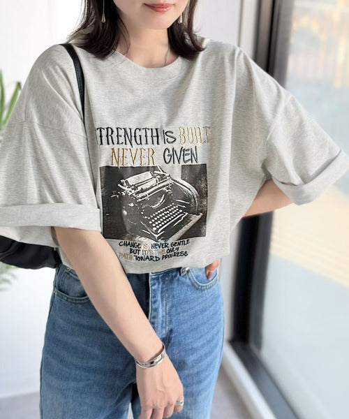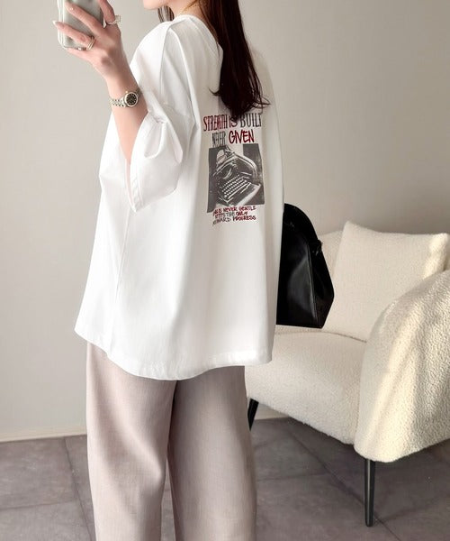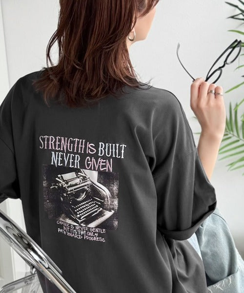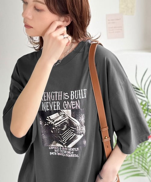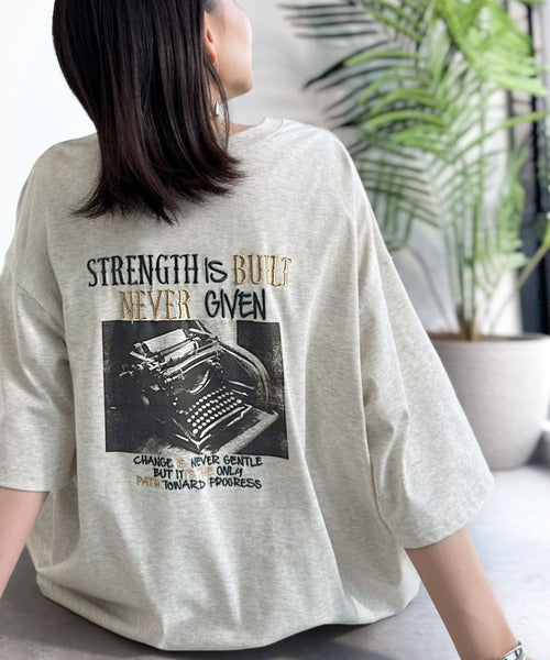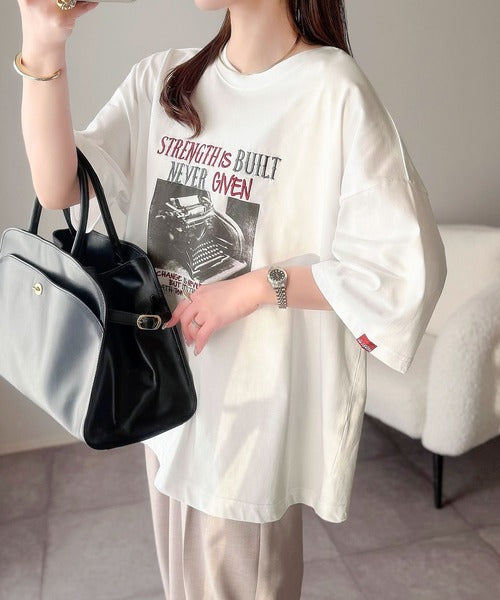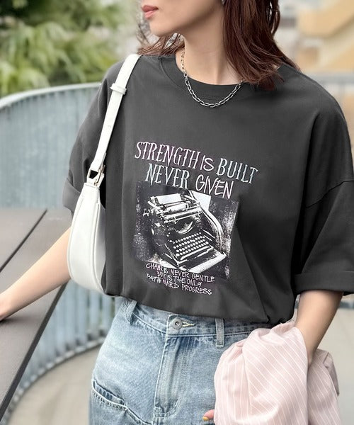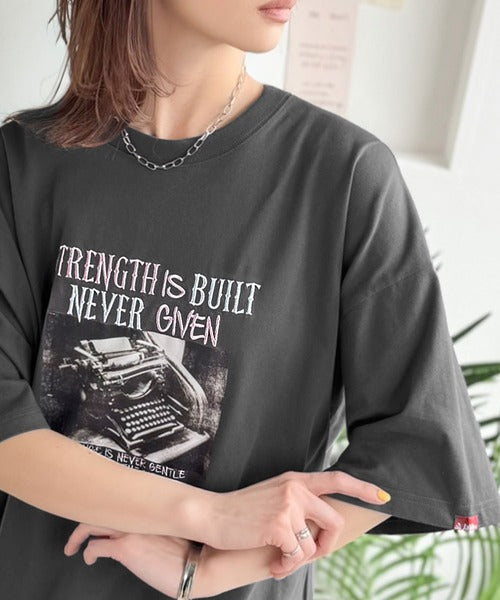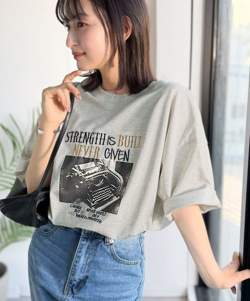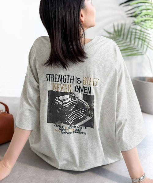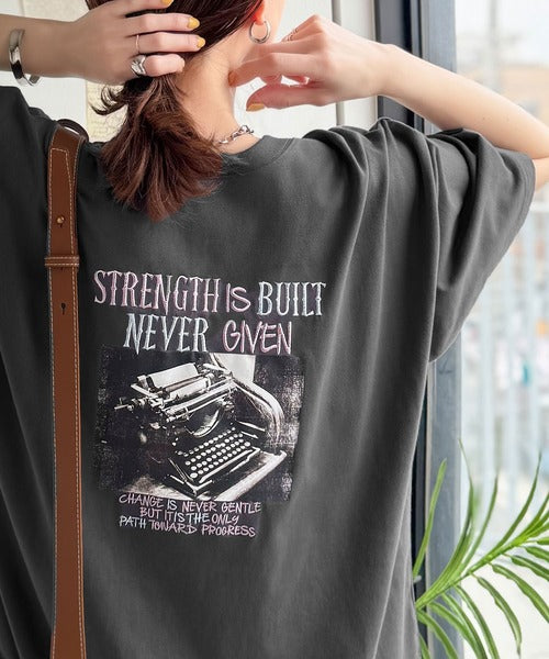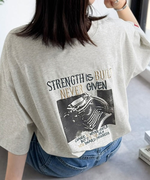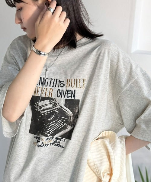《JaVaジャバコラボ》【接触冷感機能付き】レトロムードに、少しのスパイスを。前後2wayタイプライタープリント刺繍ビッグTシャツ(半袖) jv1260555