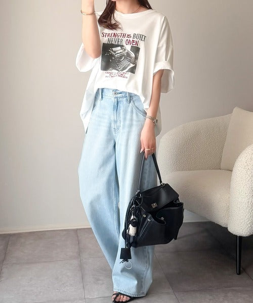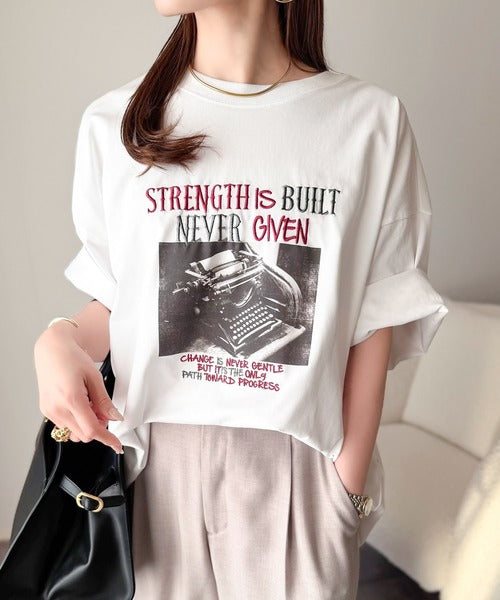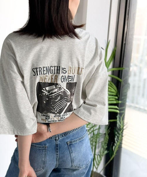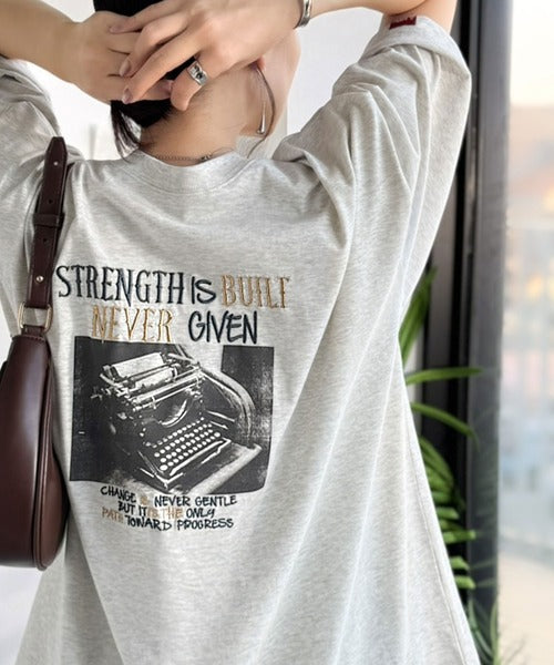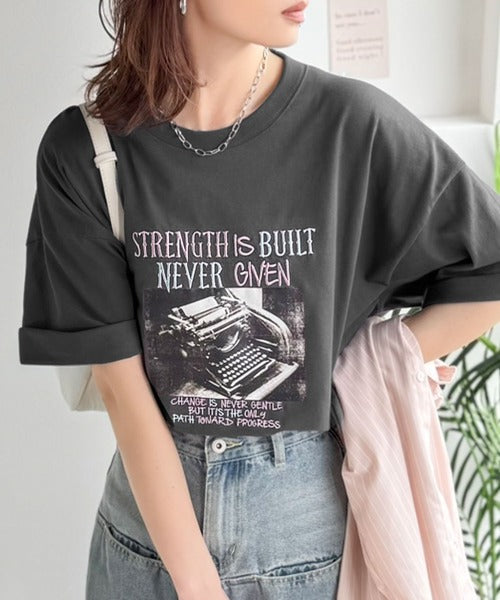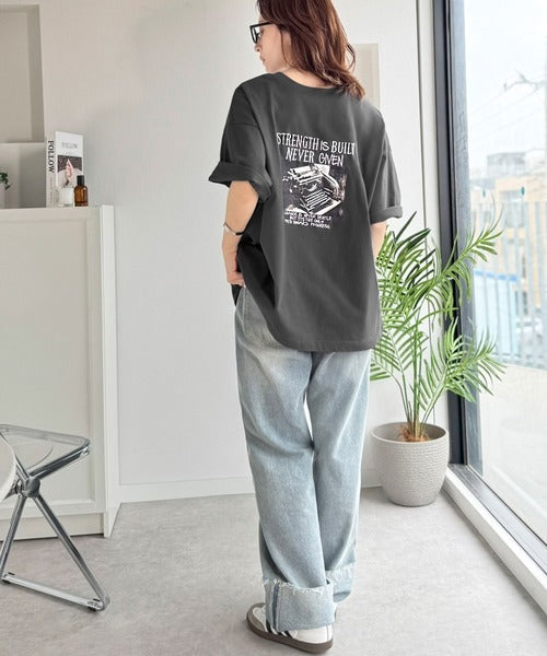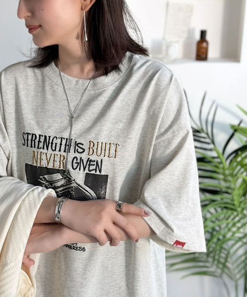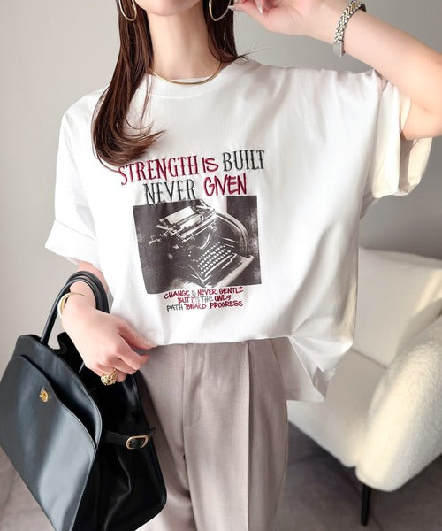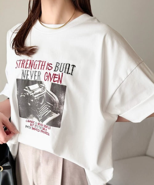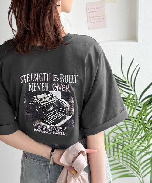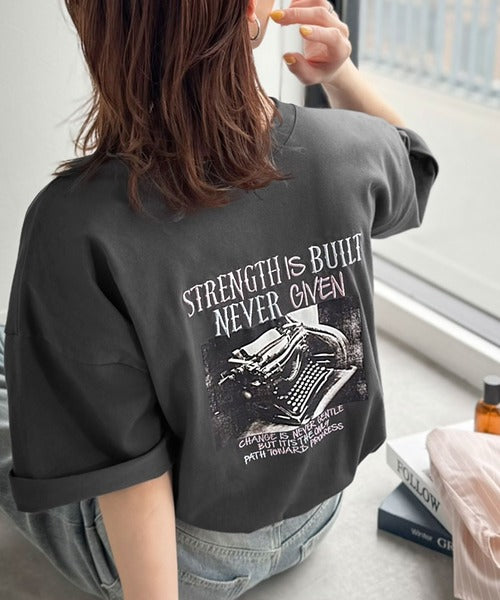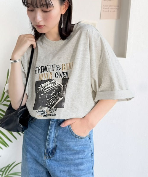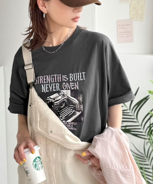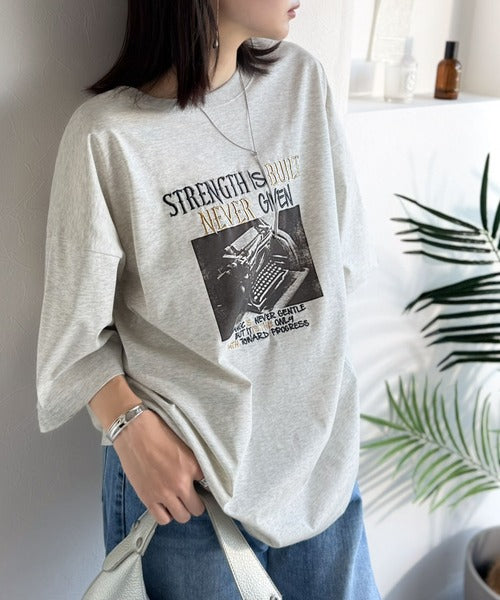 《JaVaジャバコラボ》【接触冷感機能付き】レトロムードに、少しのスパイスを。前後2wayタイプライタープリント刺繍ビッグTシャツ(半袖) jv1260555