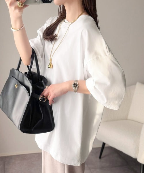 ゆったりとしたシルエットでこなれ感を演出し、接触冷感素材で春夏も