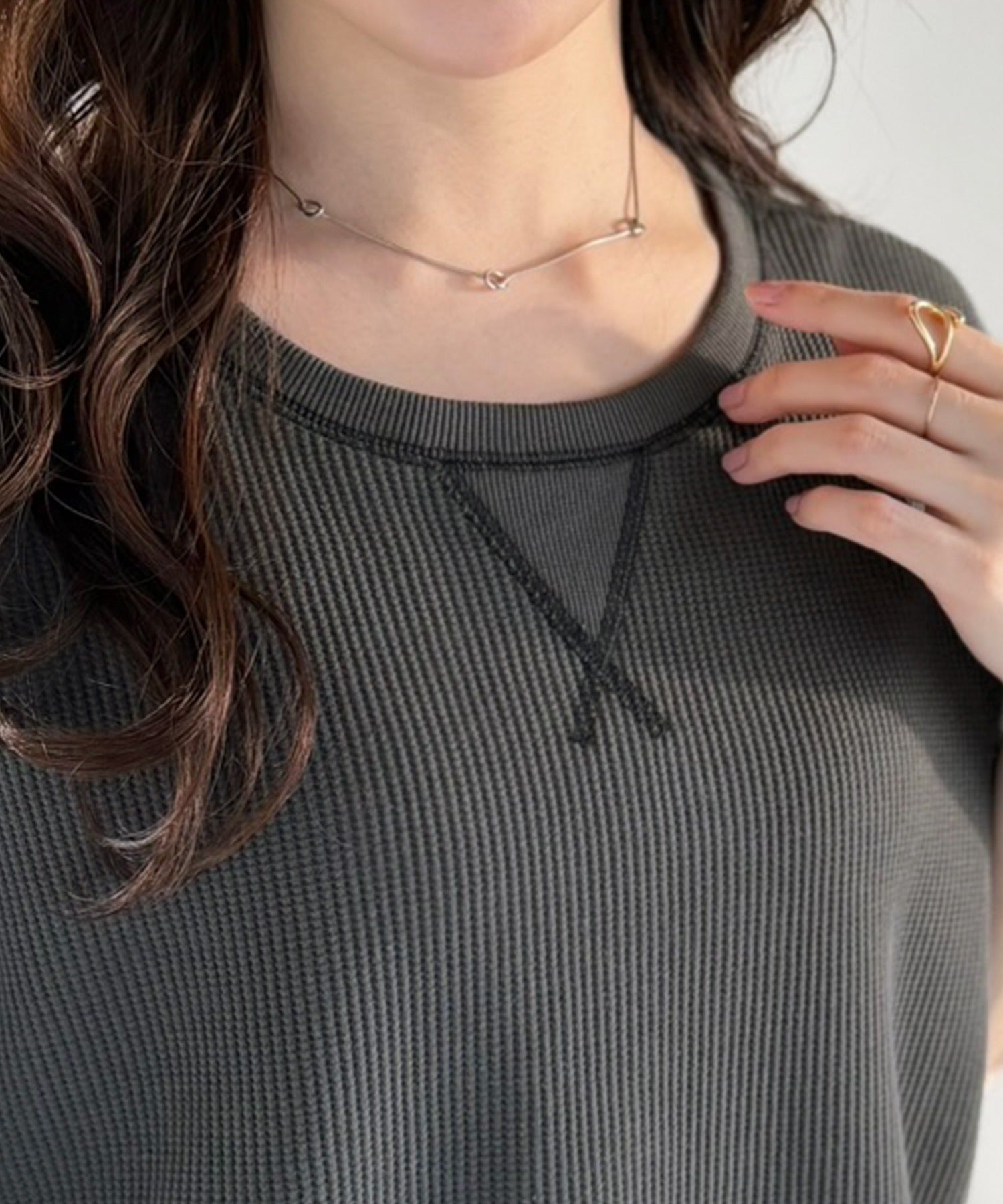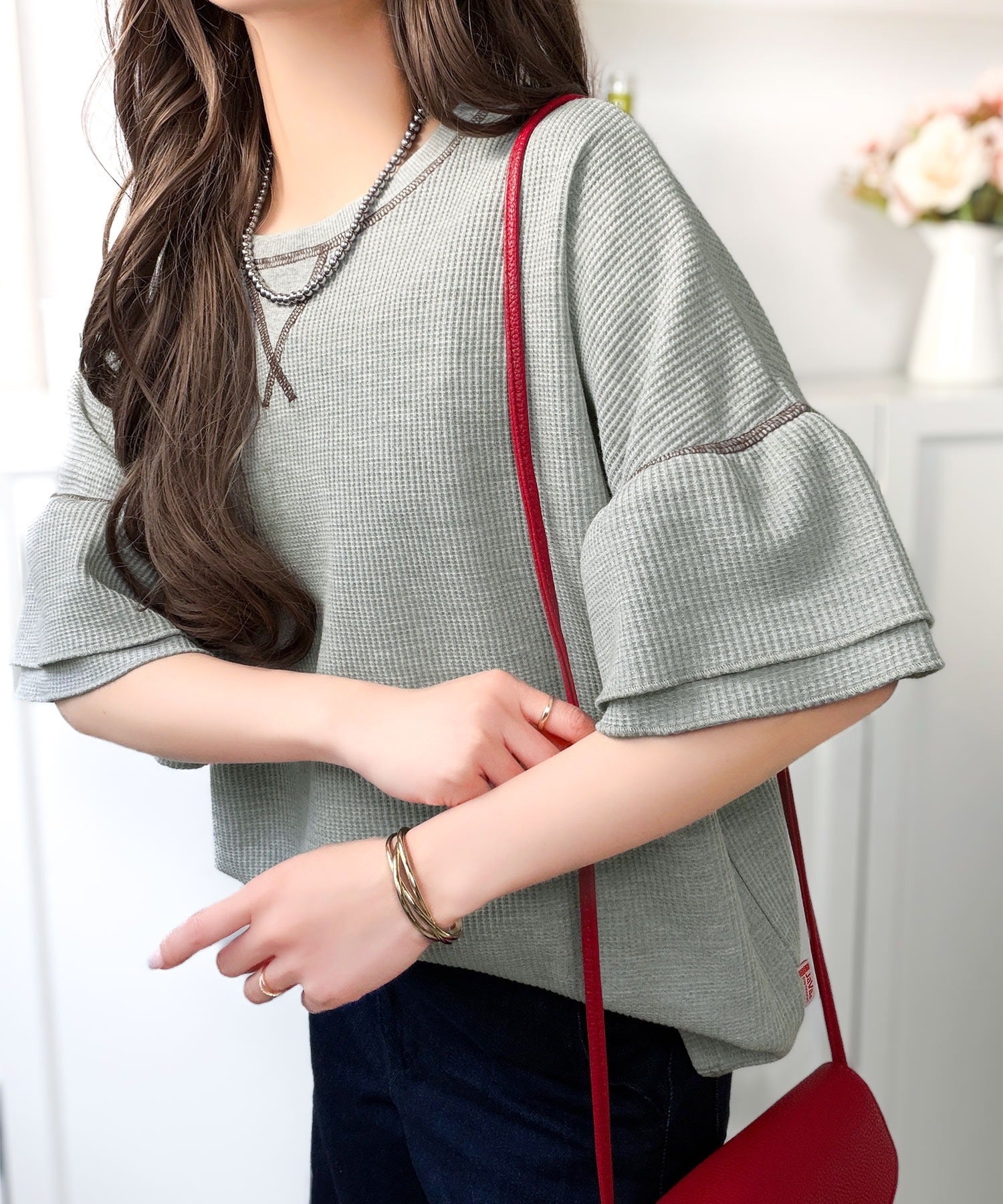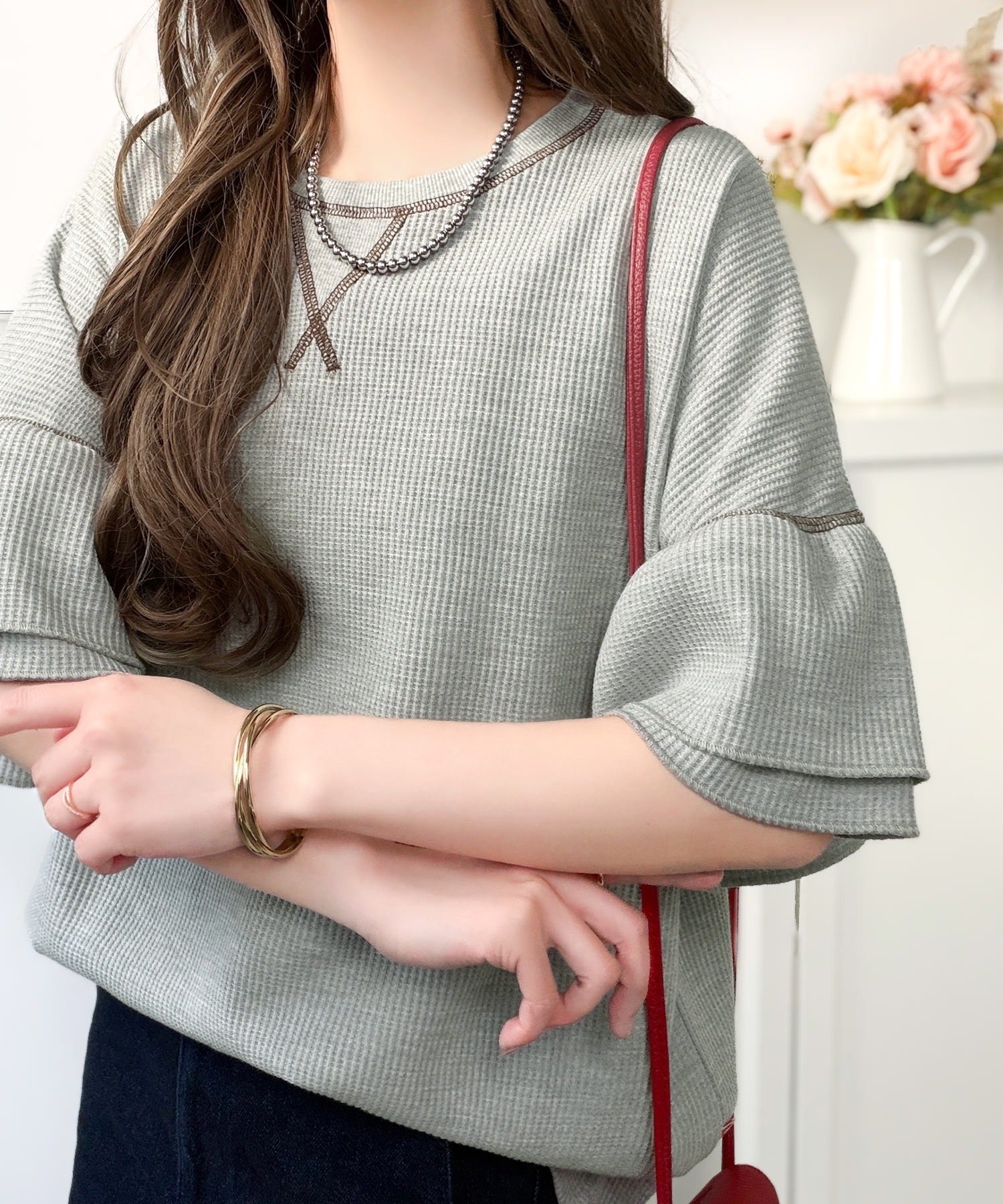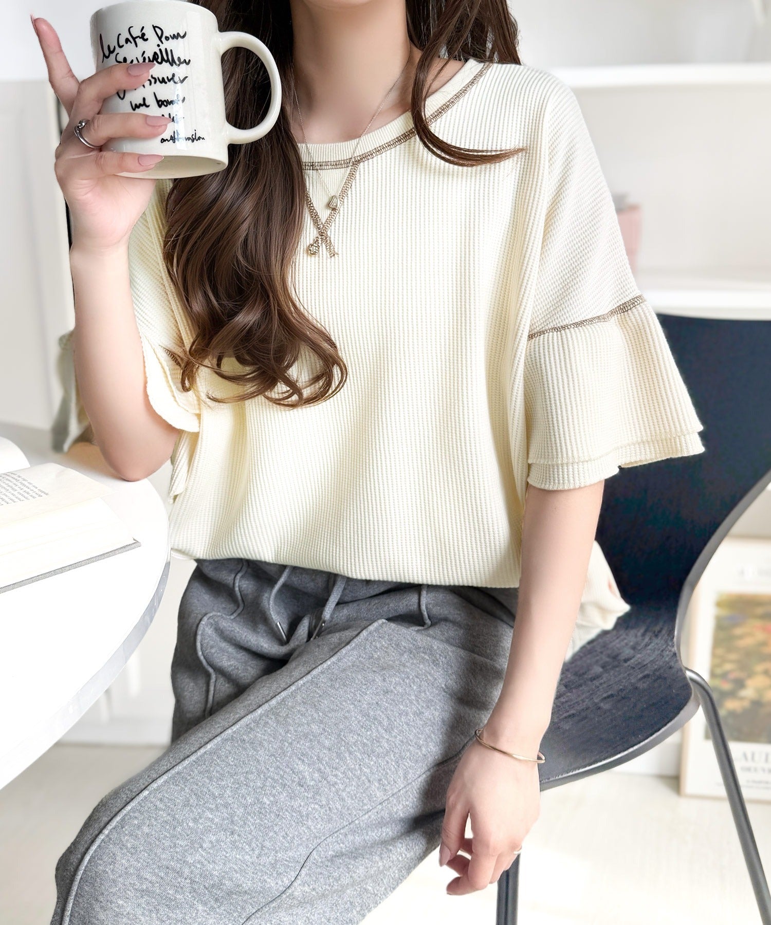 ワッフル素材のリラクシーな着心地と、大人の抜け感を演出♪