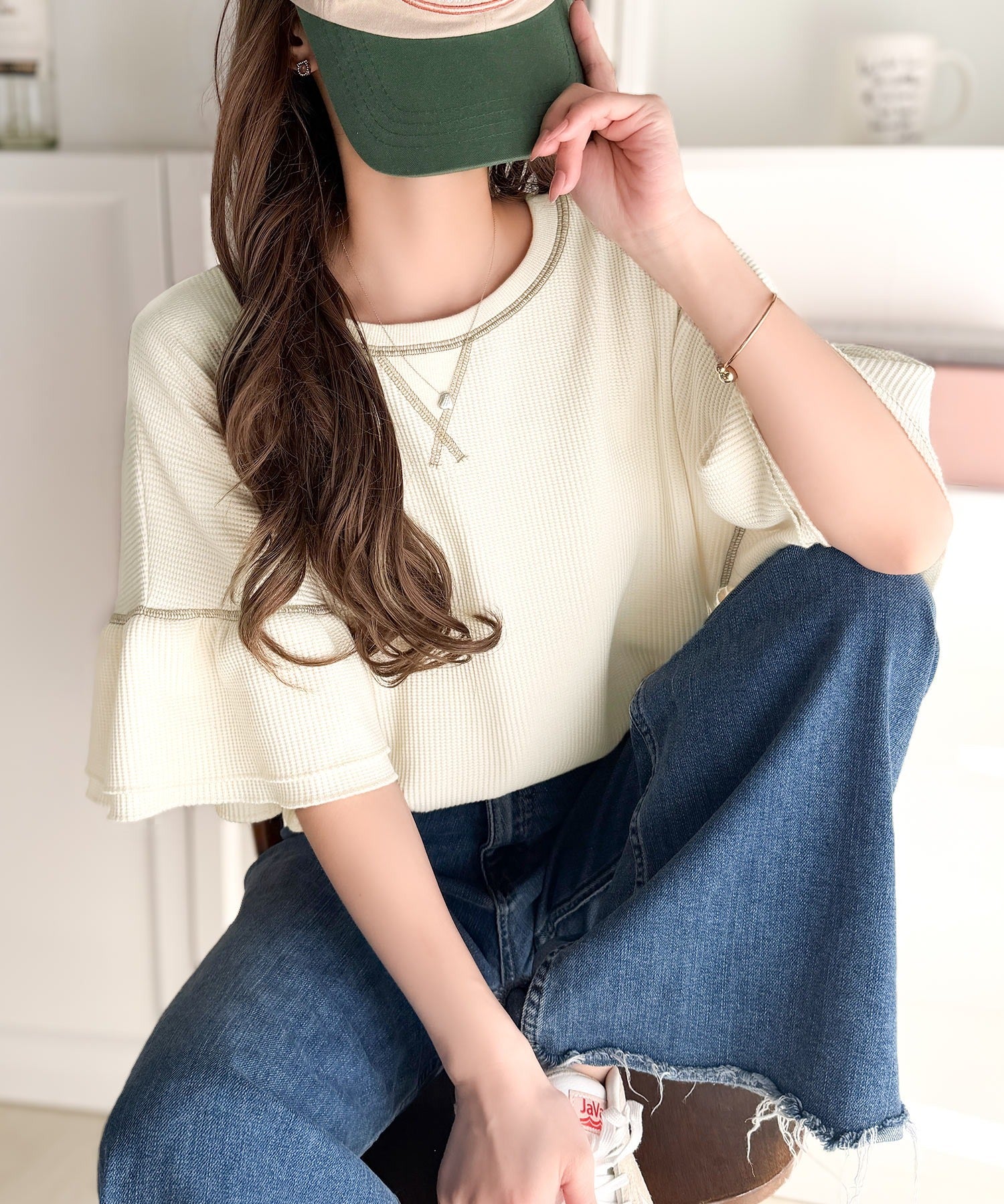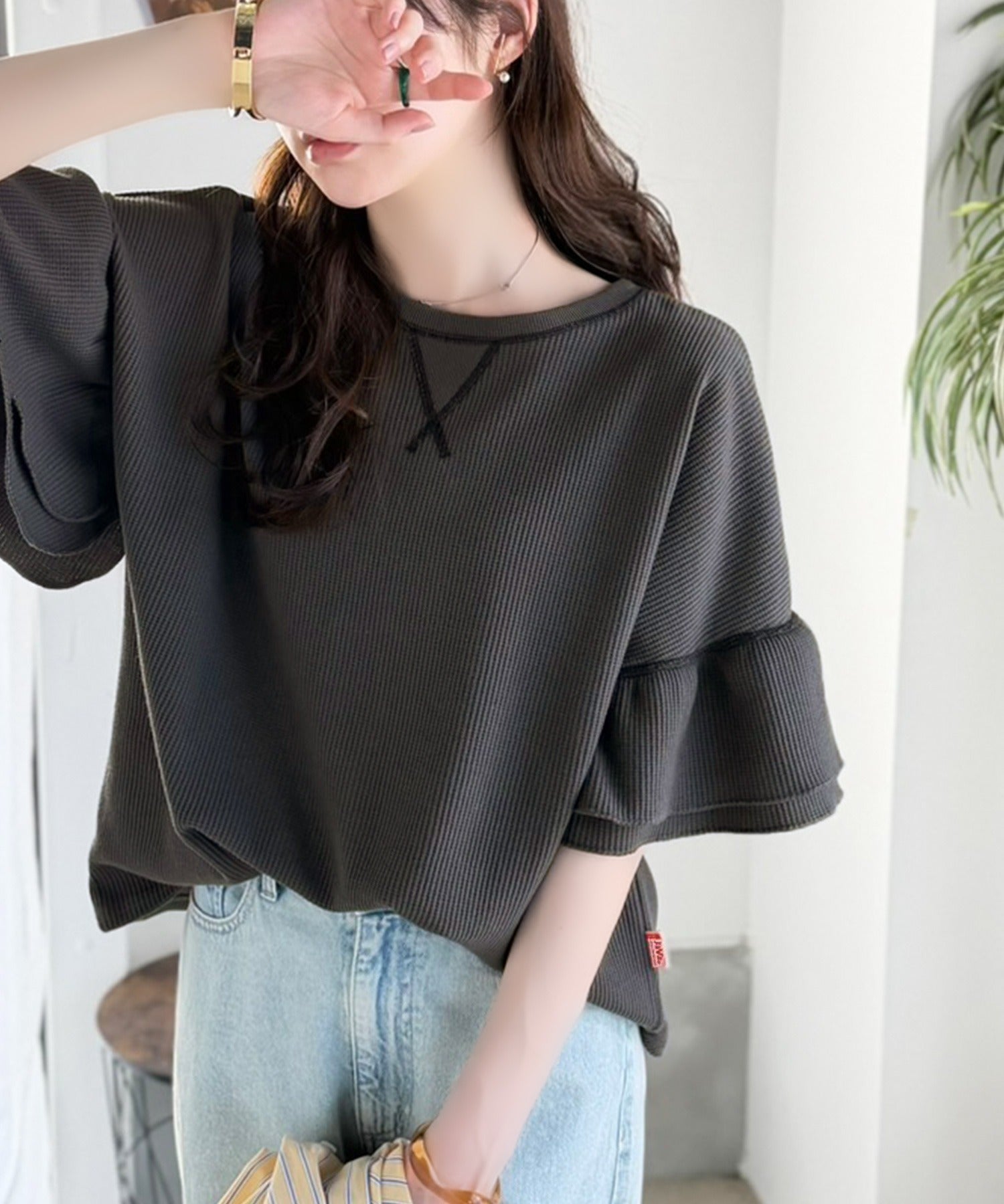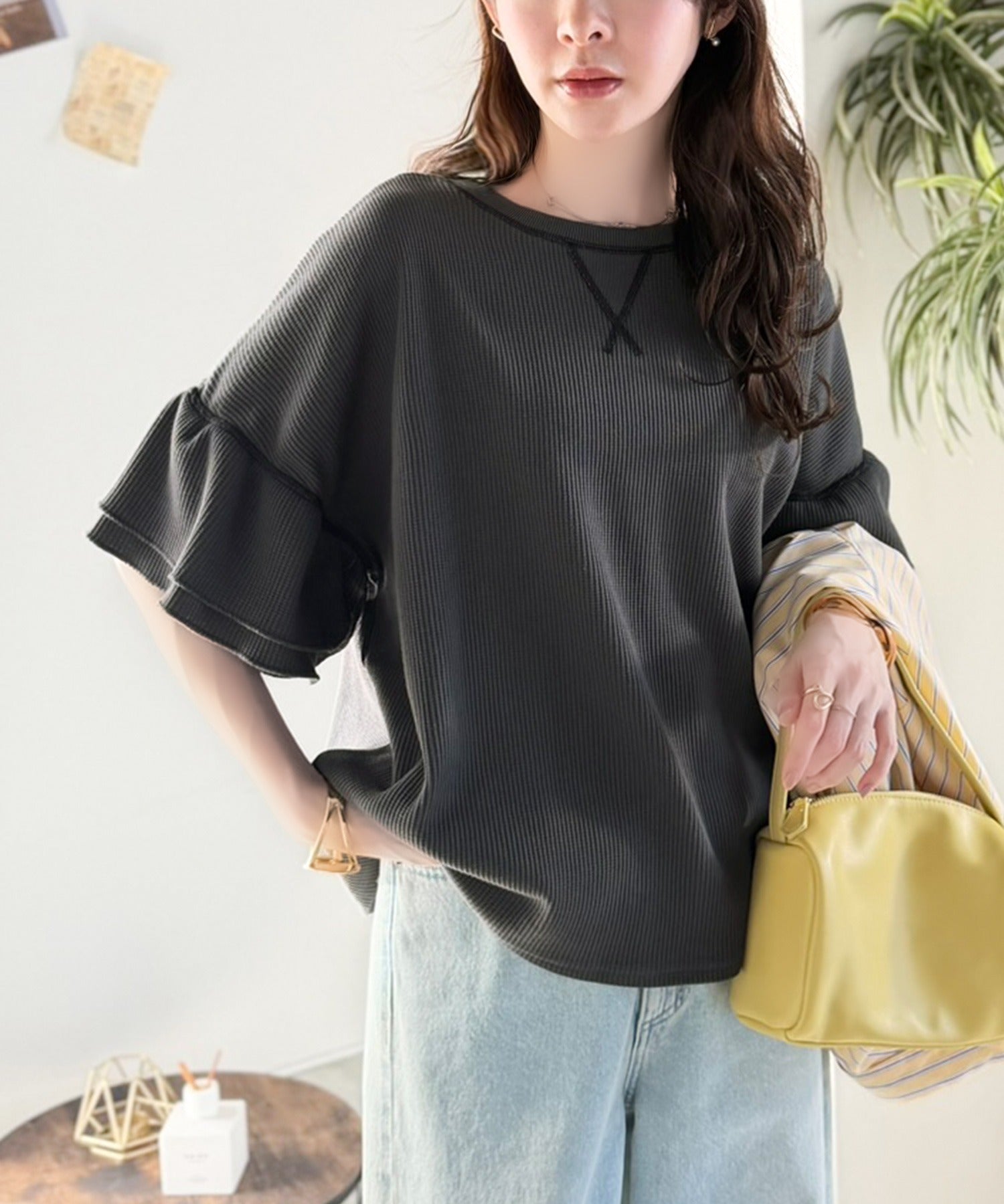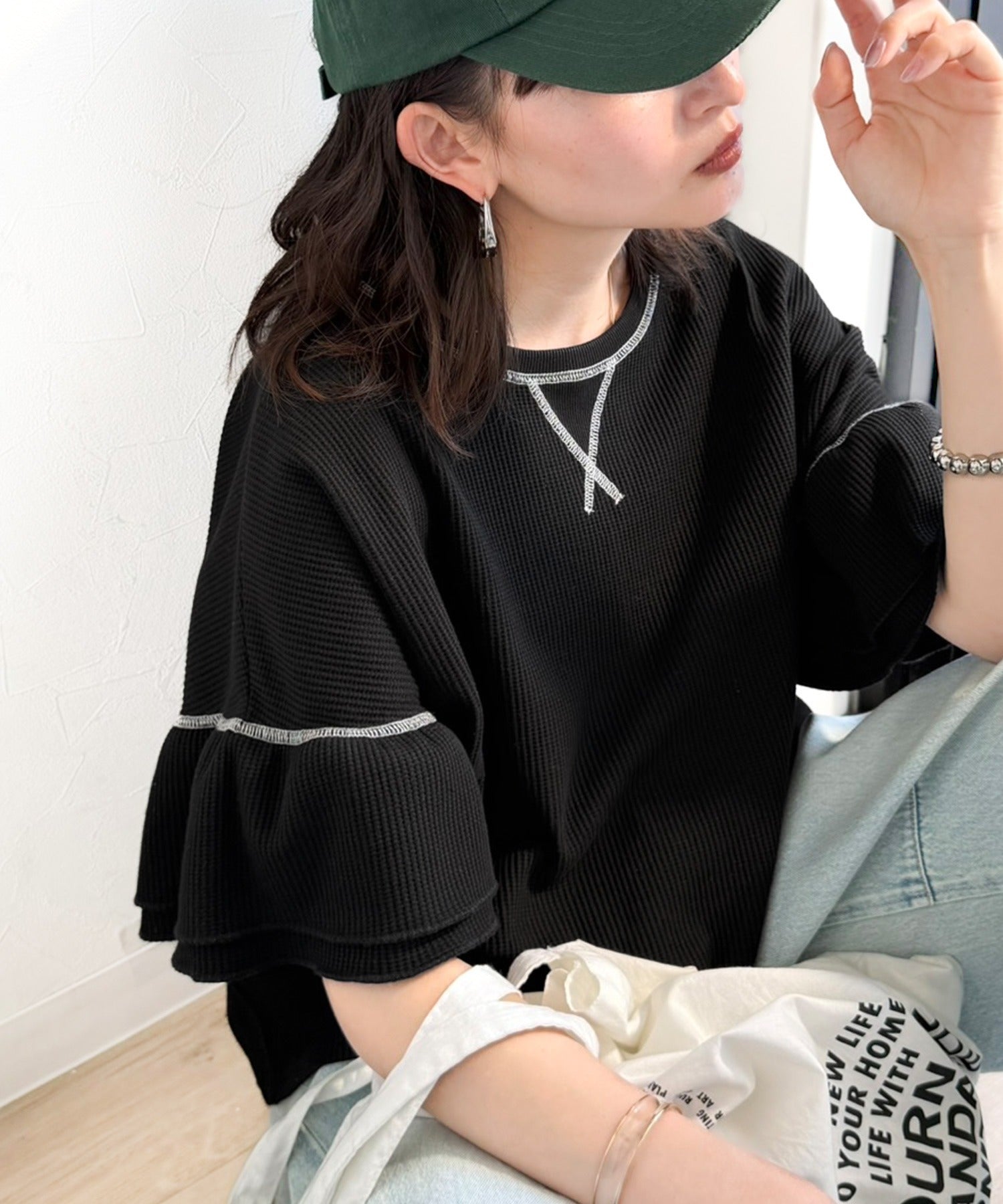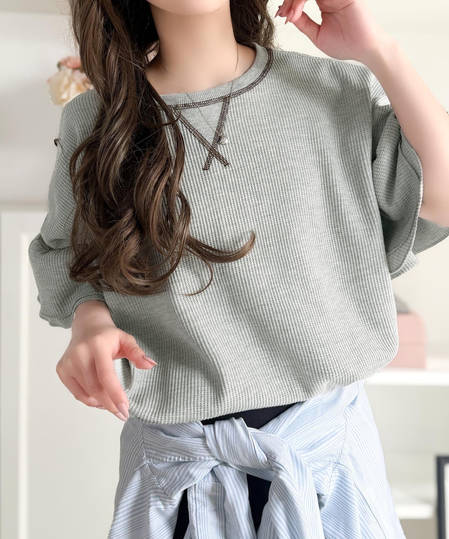 ワッフル素材のリラクシーな着心地と、大人の抜け感を演出♪