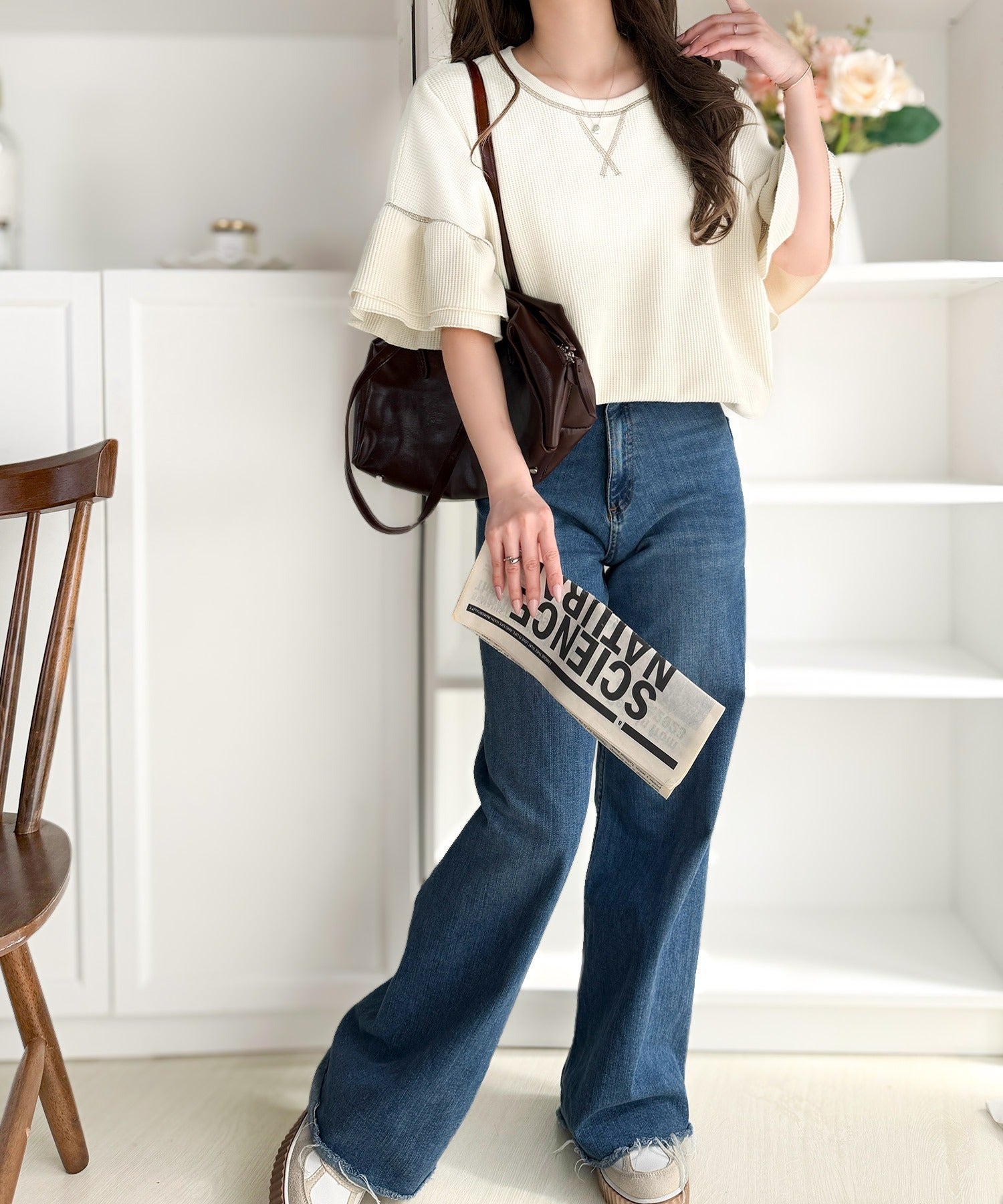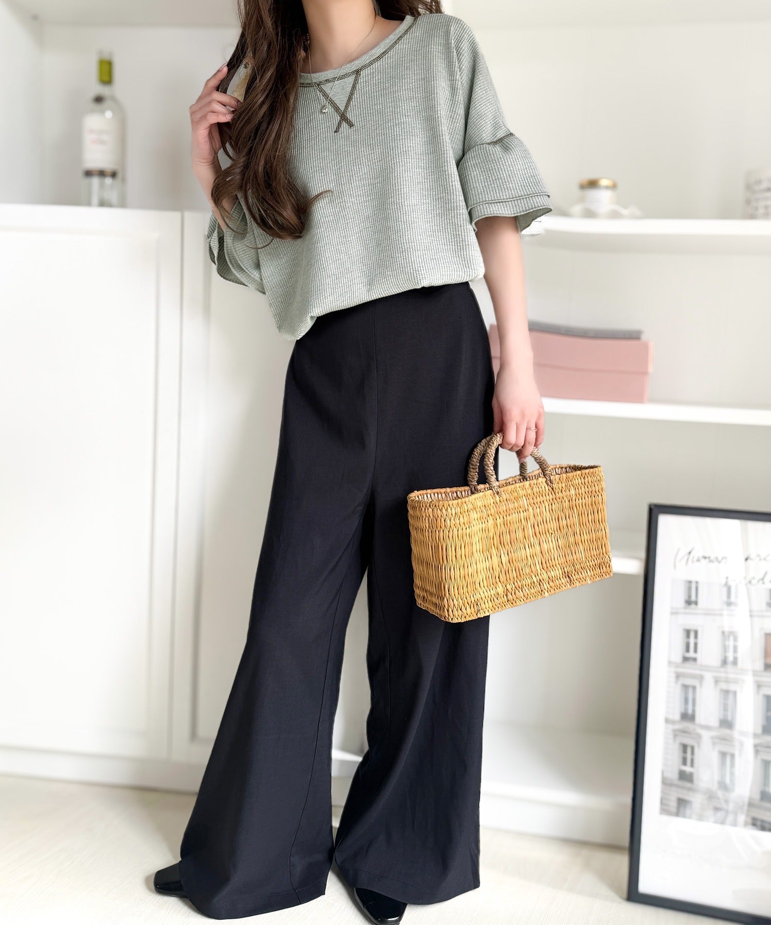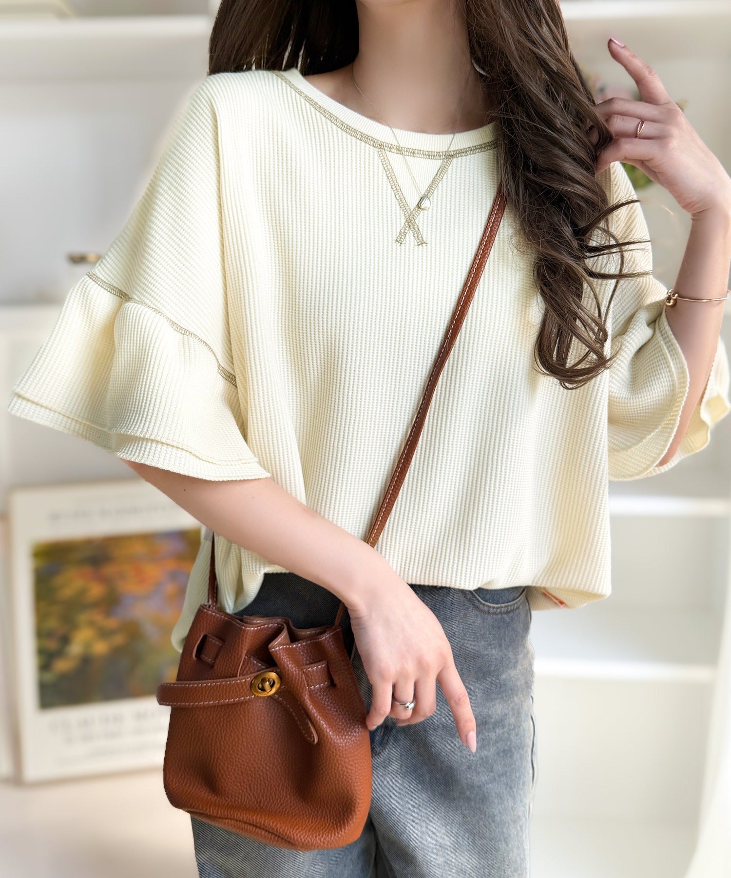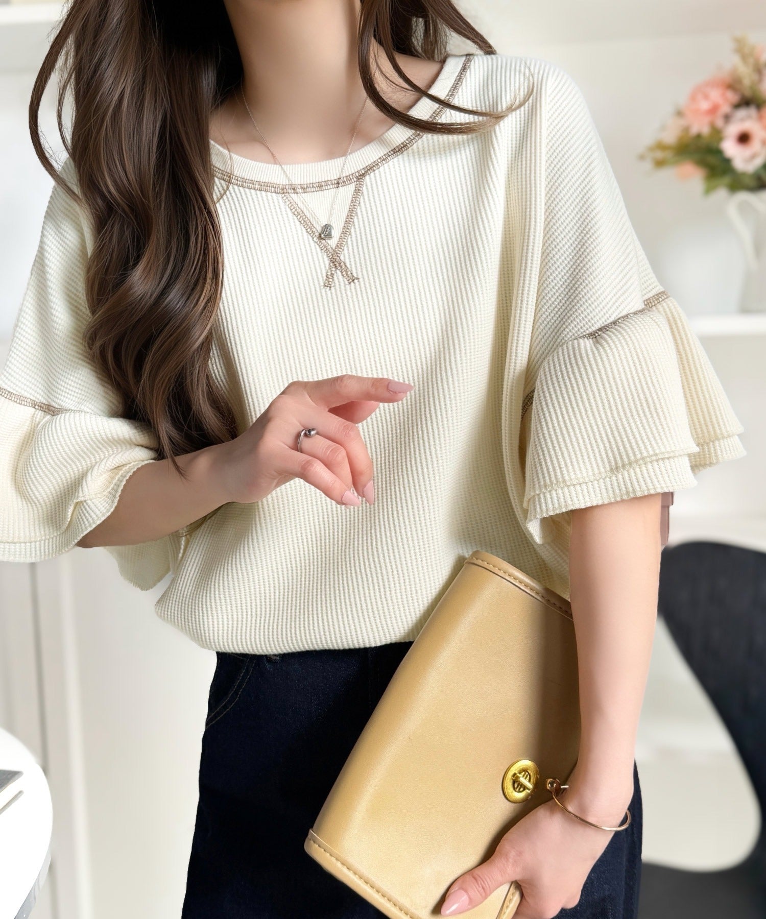 ワッフル素材のリラクシーな着心地と、大人の抜け感を演出♪