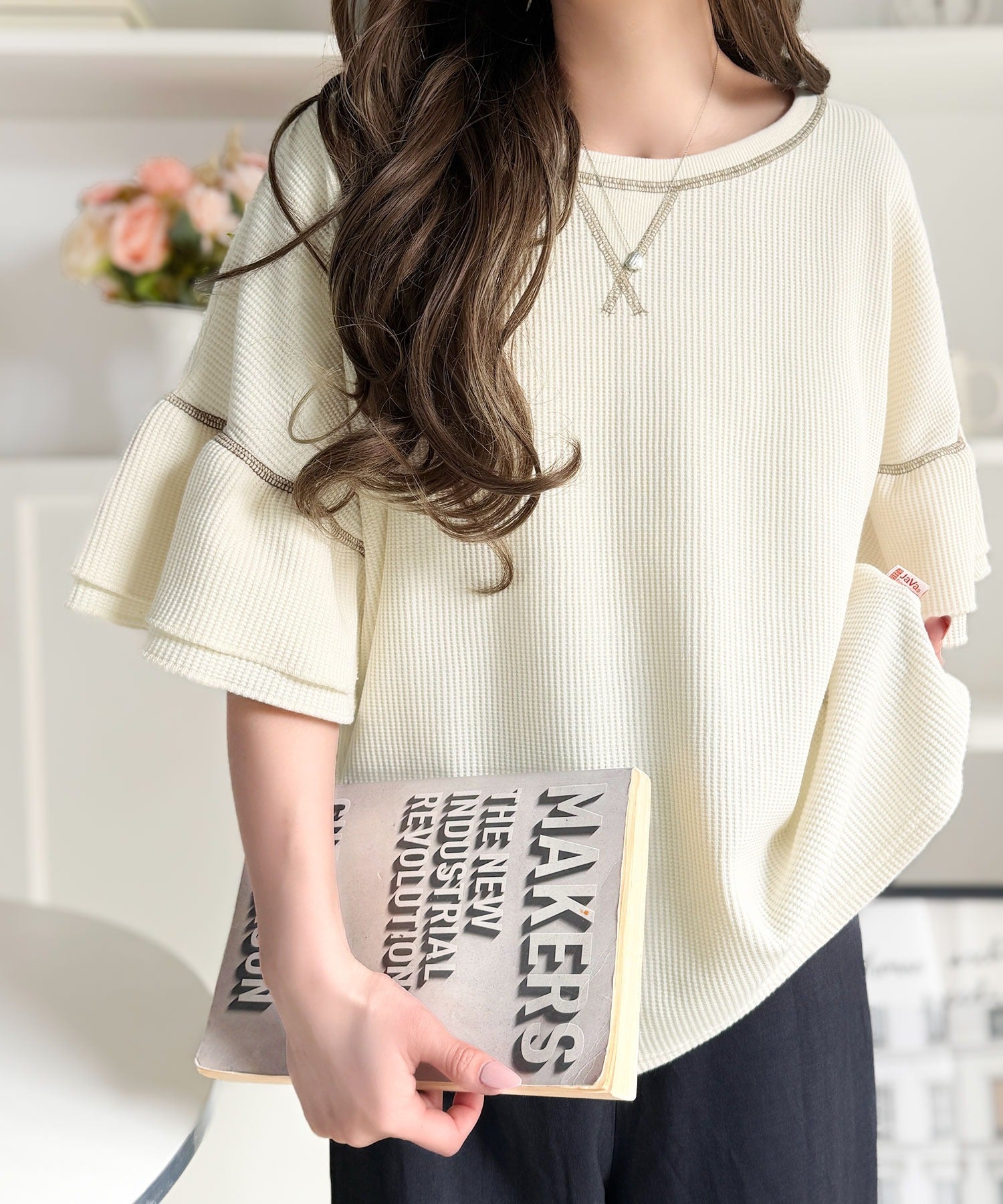 《JaVaジャバコラボ》甘さと着やすさの絶妙バランス。ワッフルダブルフリルトップス (半袖) jv1260561