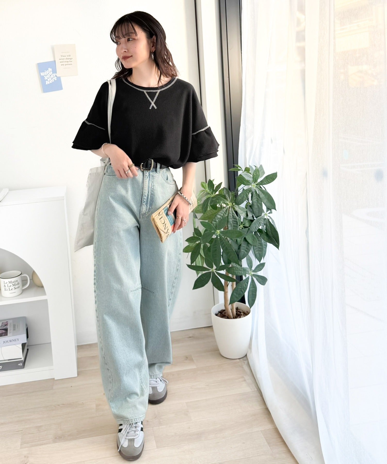 アクセントをプラスしています。着るだけでリラクシーな