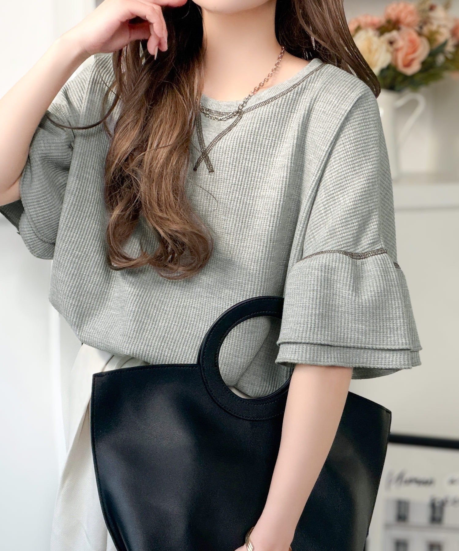 カジュアルながらも女性らしさを引き立てるこのカットソーは春夏コーデに1着は欲しいアイテム!