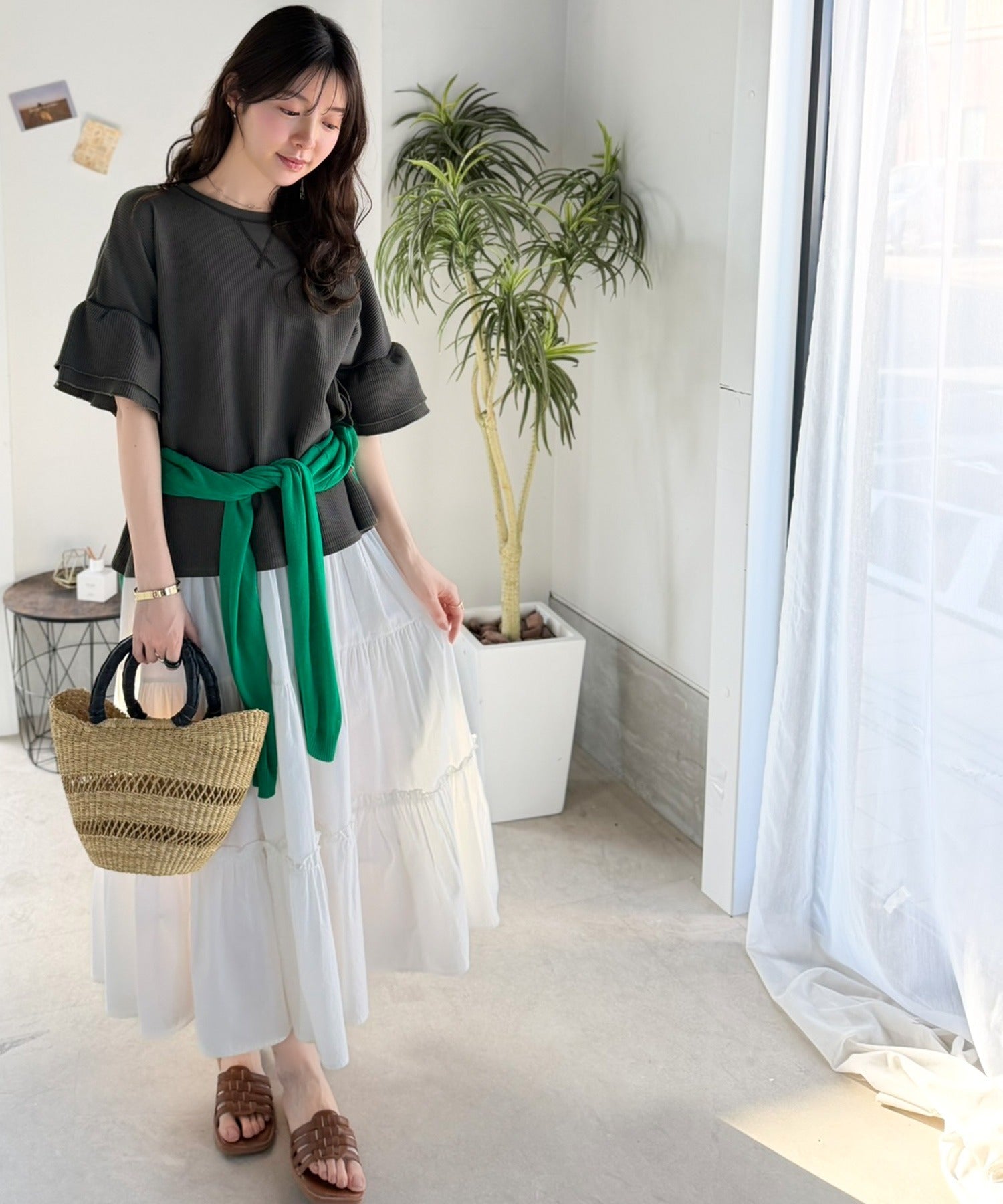チュールスカートやキャミワンピースを合わせた甘めスタイルまで