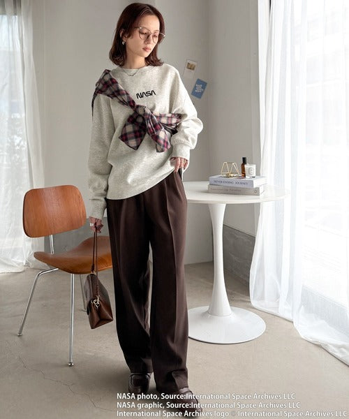 《JaVaジャバコラボ》数量限定!シンプル刺繍で着回し力抜群♪【NASAテーマ】フロントミニロゴ裏起毛スウェットトップス jv1330057