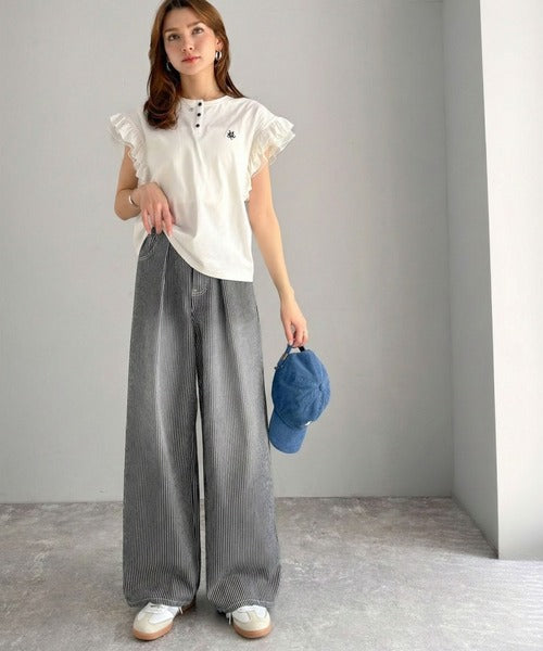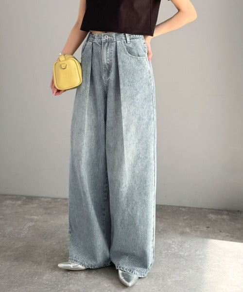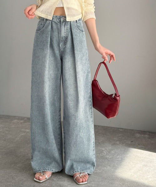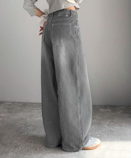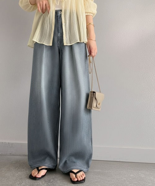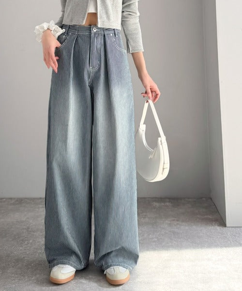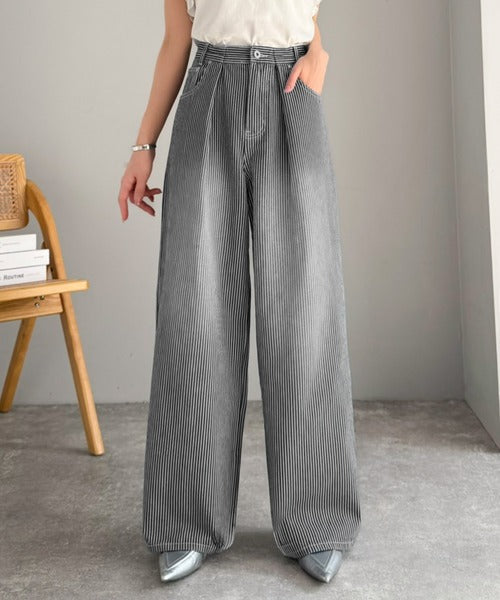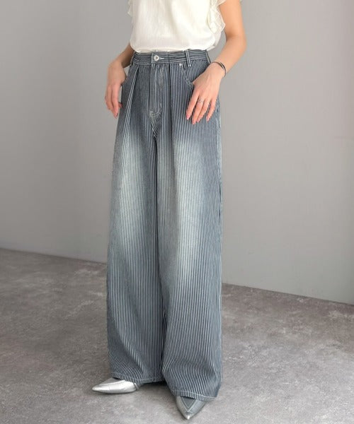 【mily bilet】こなれ感漂うヴィンテージ風デニム。タック入りヒッコリーパンツ mi0909024