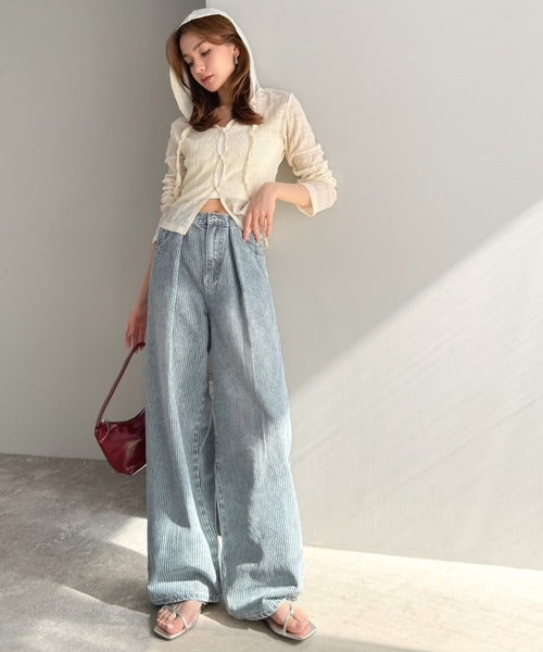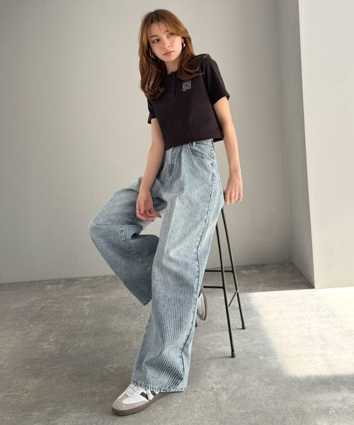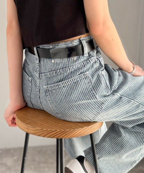 脚長効果抜群のヒッコリーデニム。