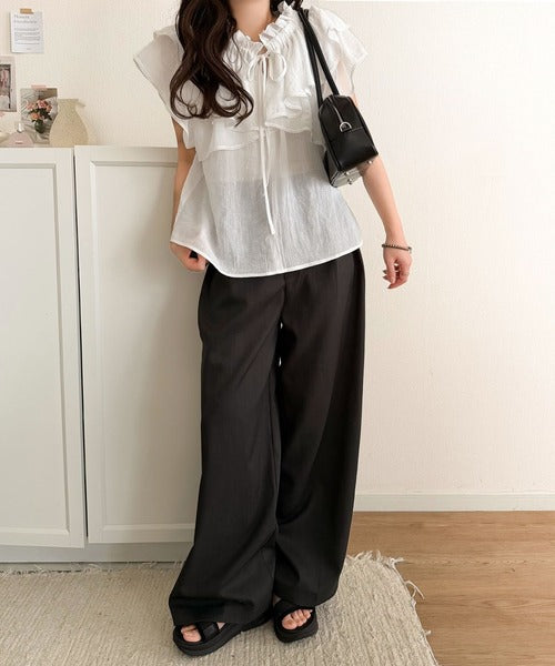 甘すぎない大人のラッフルフリルで360度どこから見ても可愛いブラウス。