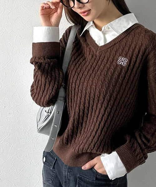 トレンドのレイヤード風デザインが魅力のケーブルニットプルオーバー。