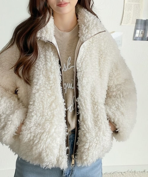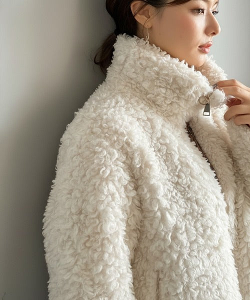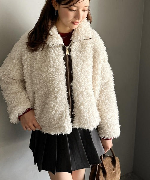 柔らかなプードル調のフェイクファーを使用したショートブルゾン。
