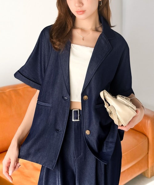 ・同素材のデニムジャケットとのセットアップ風コーデも可能(品番:mi1329068)